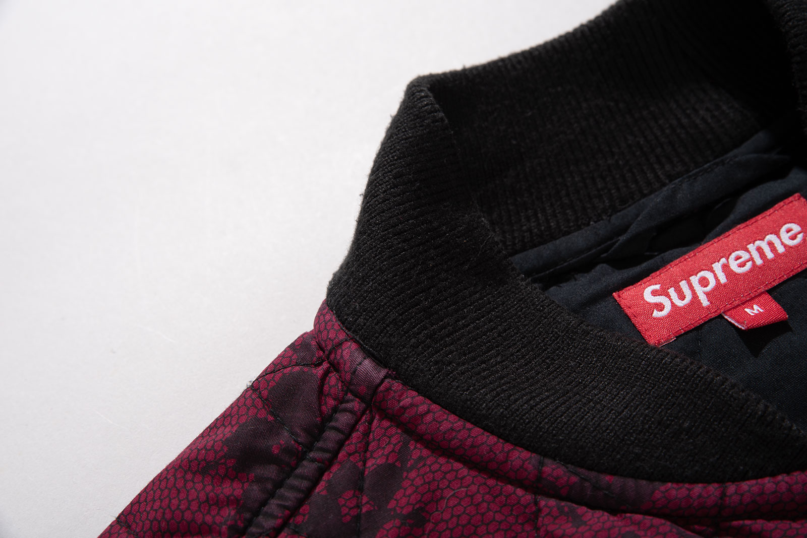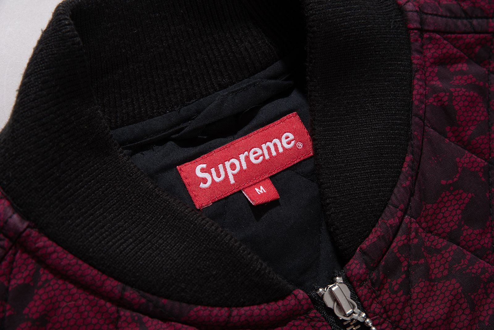 - 2017 년 발매 된 슈프림 퀄팅 봄버입니다. 간절기에 걸치기 좋은 디자인이며 약간은 슬림한 스타일입니다.