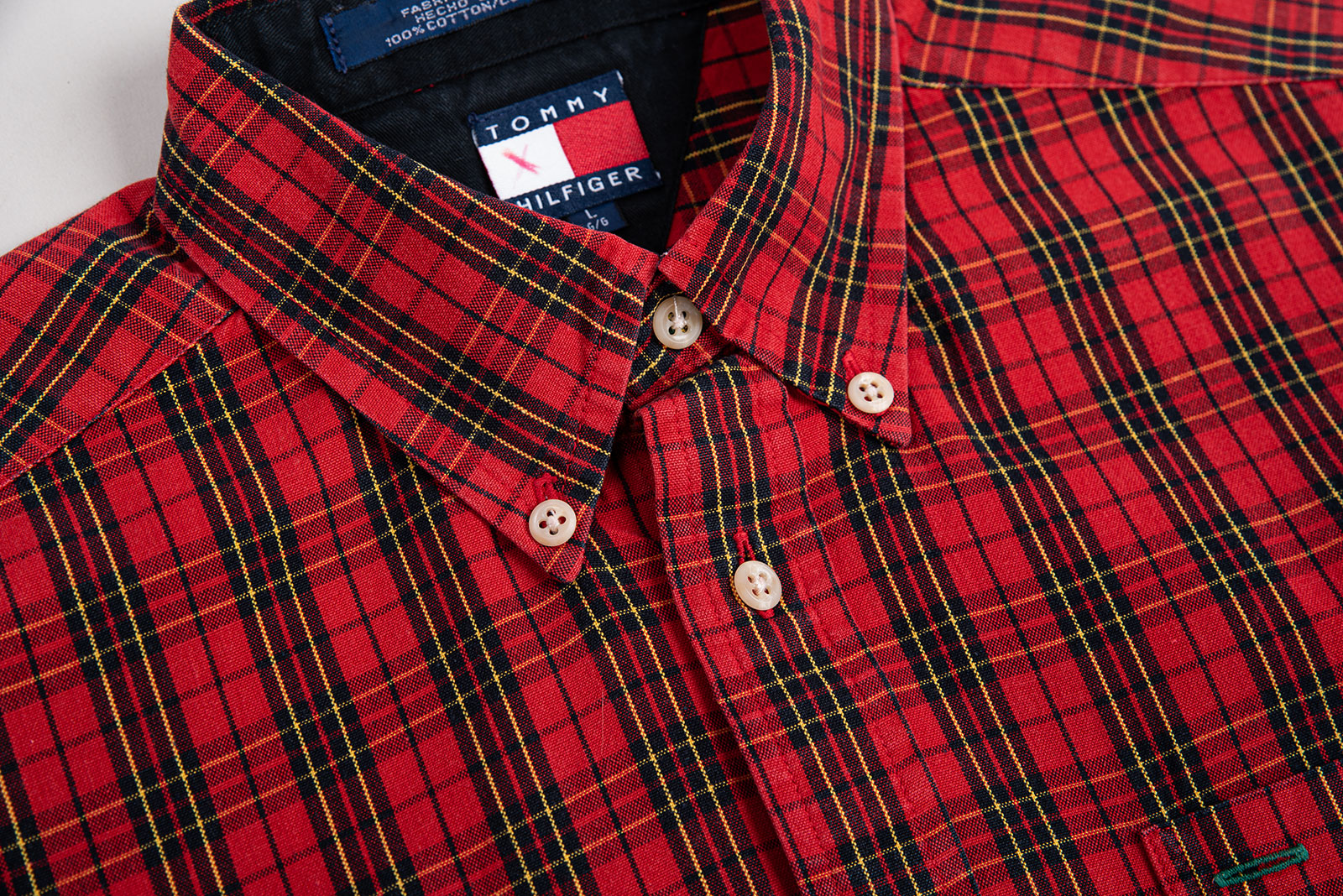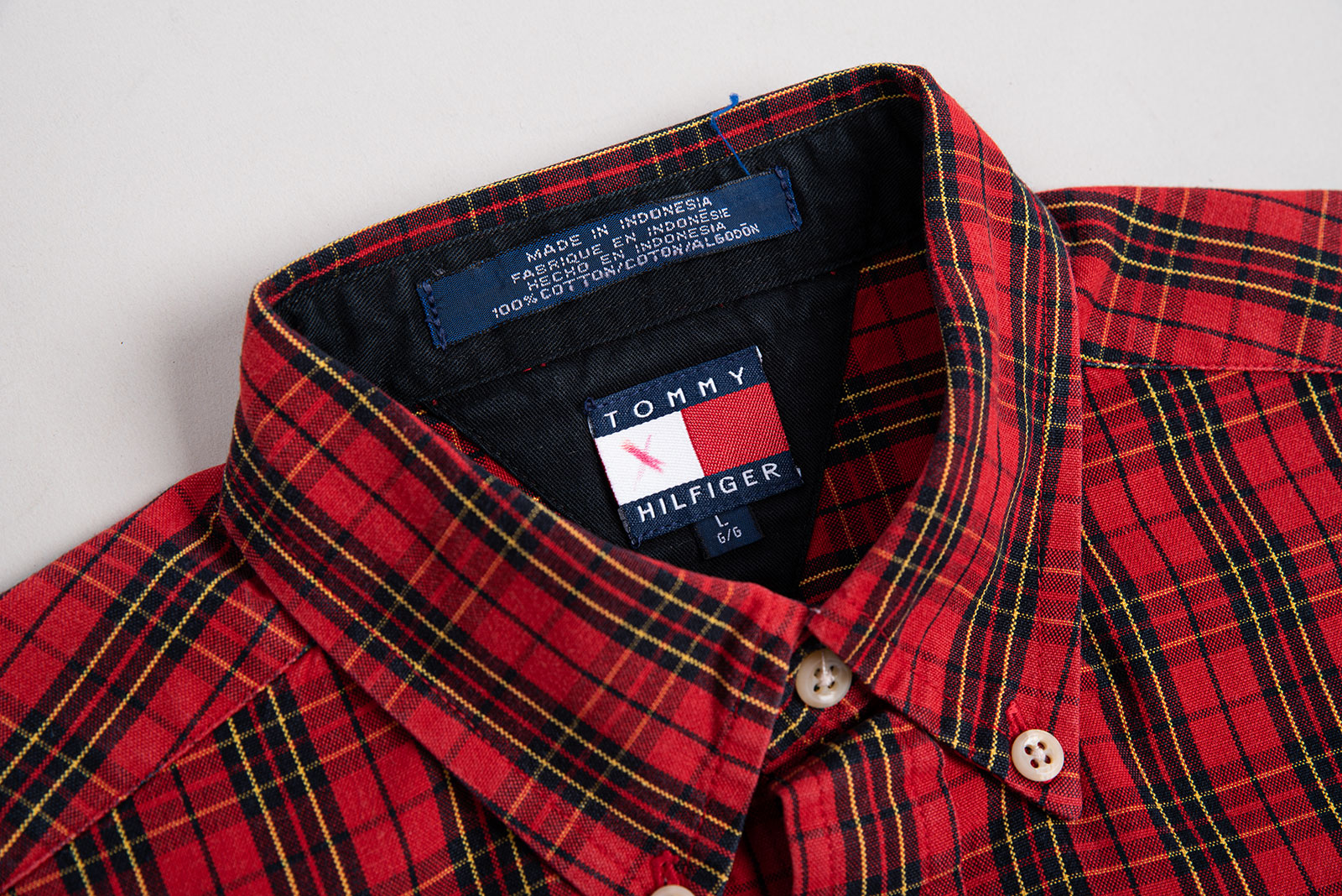 - 올드스쿨 90 s 타미 힐피거 체크 셔츠입니다. 색감, 핏, 월계수 자수 로고까지..완벽하지 않나요.