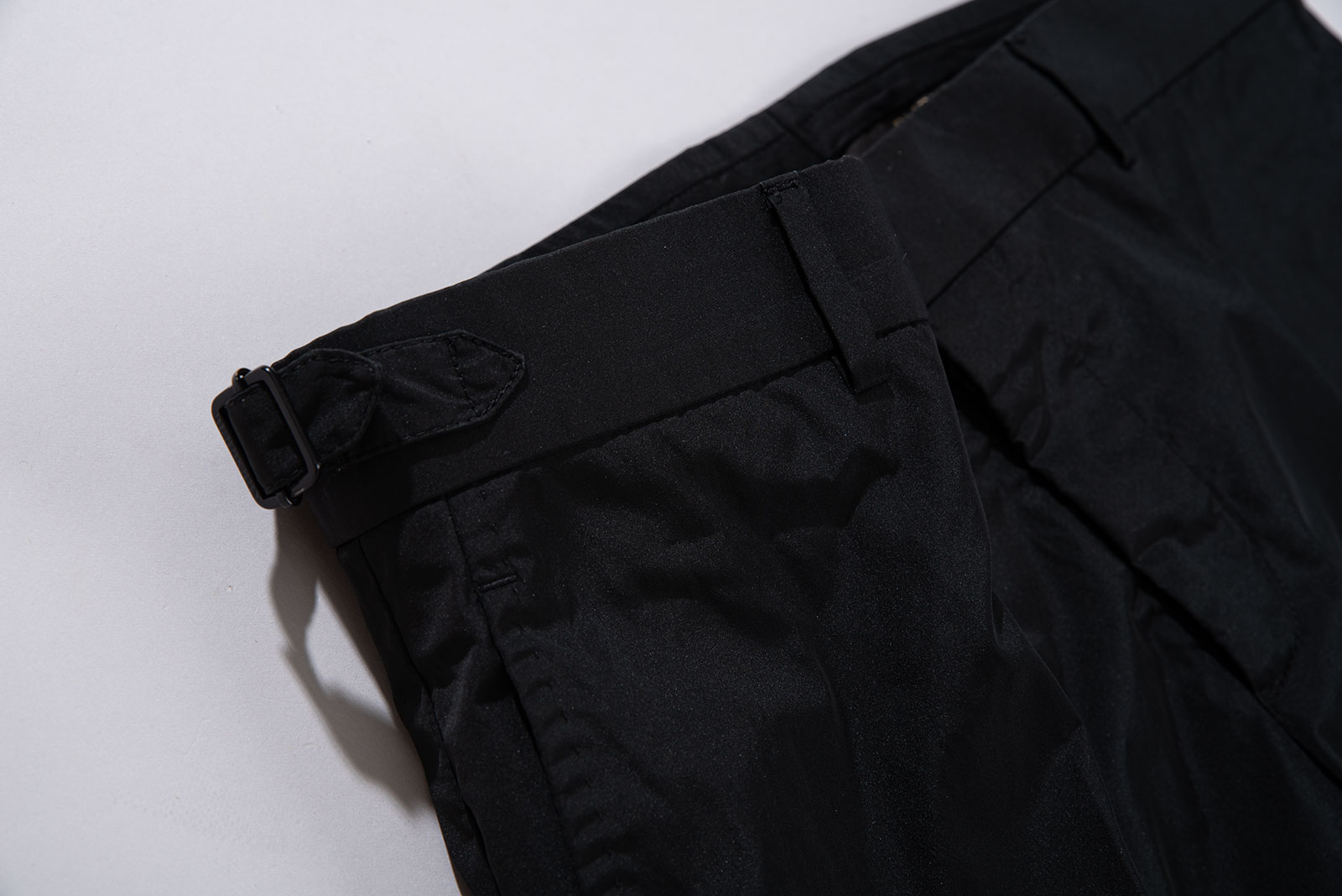 - 버버리 프로섬의 폴리 슬랙스 팬츠입니다. 매트릭스 주인공들이 입을법한 겉감 느낌이 고급스럽기도 하고 퓨처리즘하기도 하고 독특하기도 합니다.