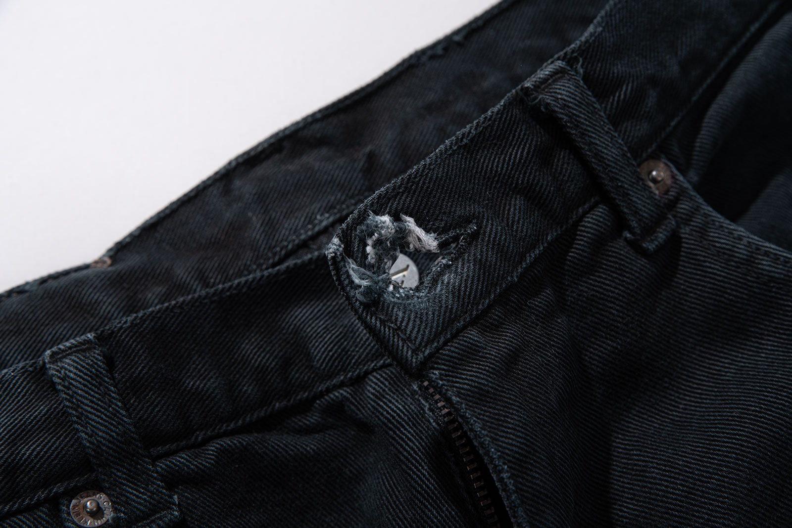 - 색이 정말 곱게 잘 빠졌습니다. 페인팅 스팟도 너무 적당하고 적절합니다. 그리고 두께감이 역대급입니다. 텐션이랄까요. 코튼 원단이지만 약간의 신축성이 느껴질 정도로 두꺼운 원단을 손으로 잡았다가 때면 쫀득하게 되살아나는 회복력이 느껴지는, 그런 고급스러운 손 맛이 있는 팬츠입니다. 절대 네이버 네버 이런 손맛의 팬츠는 빈티지에서 밖에 느낄 수 없습니다. 시대성과 그 시대적 배경을 제품의 디테일로 살펴보는 재미도 있지만, 빈티지 팬츠의 화려하고 풍족한 원단감을 느끼는 것도 빈티지의 참 된 재미라 봅니다.