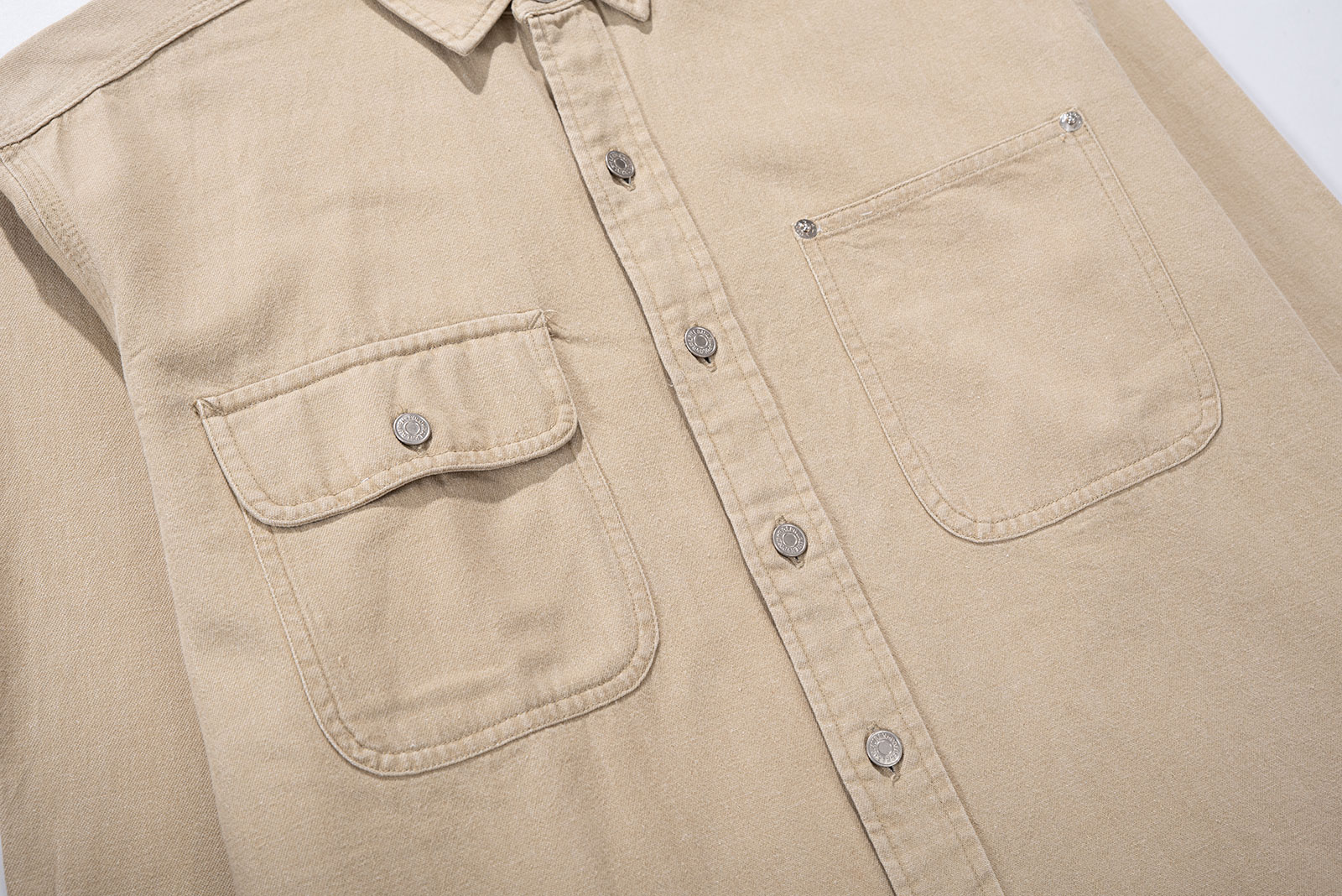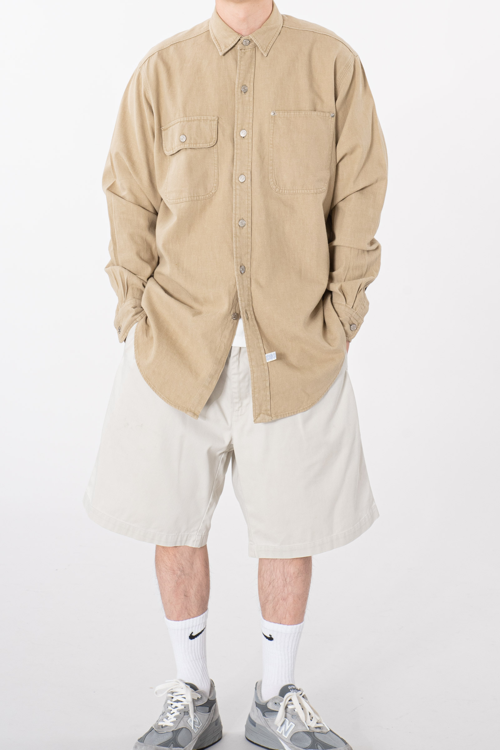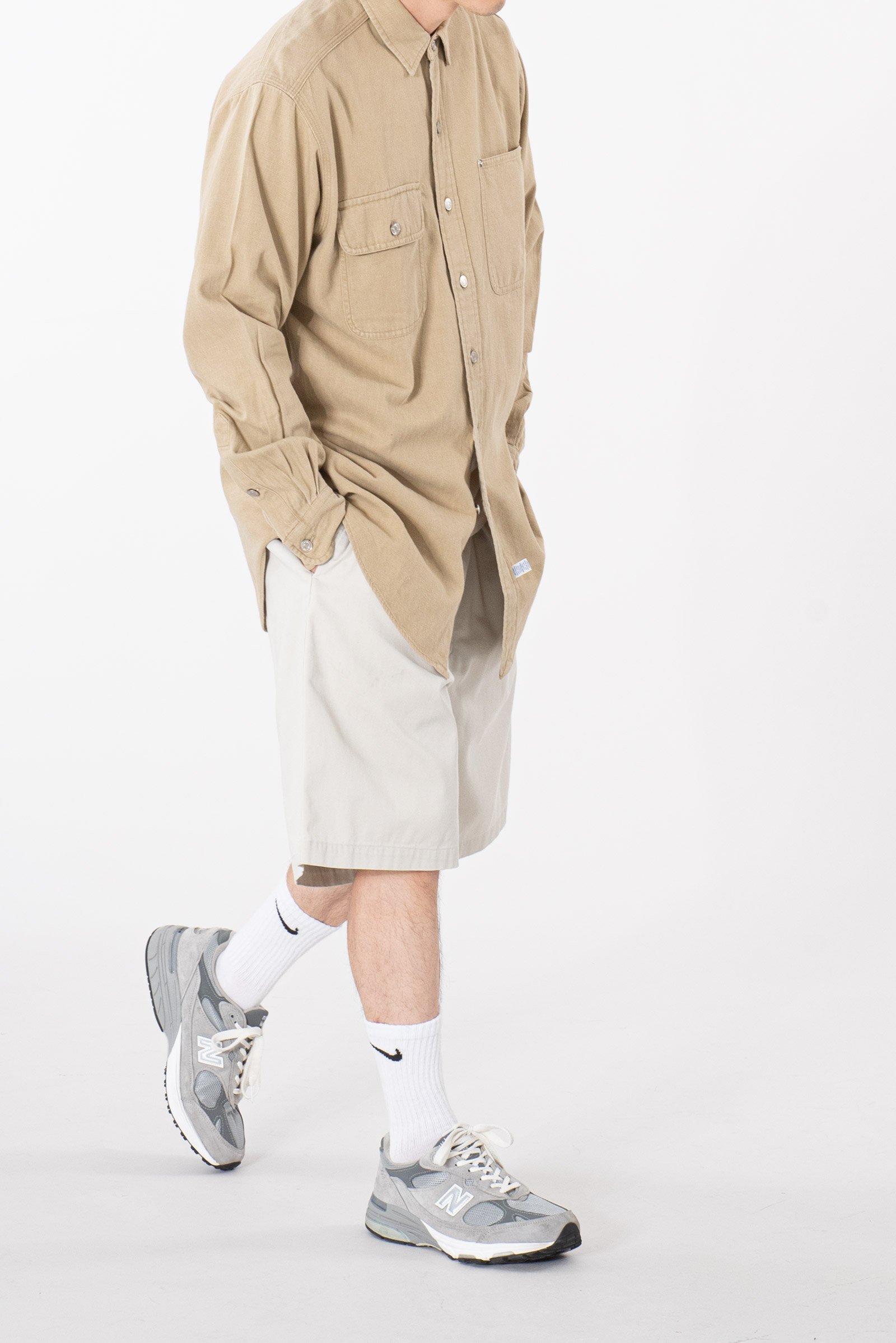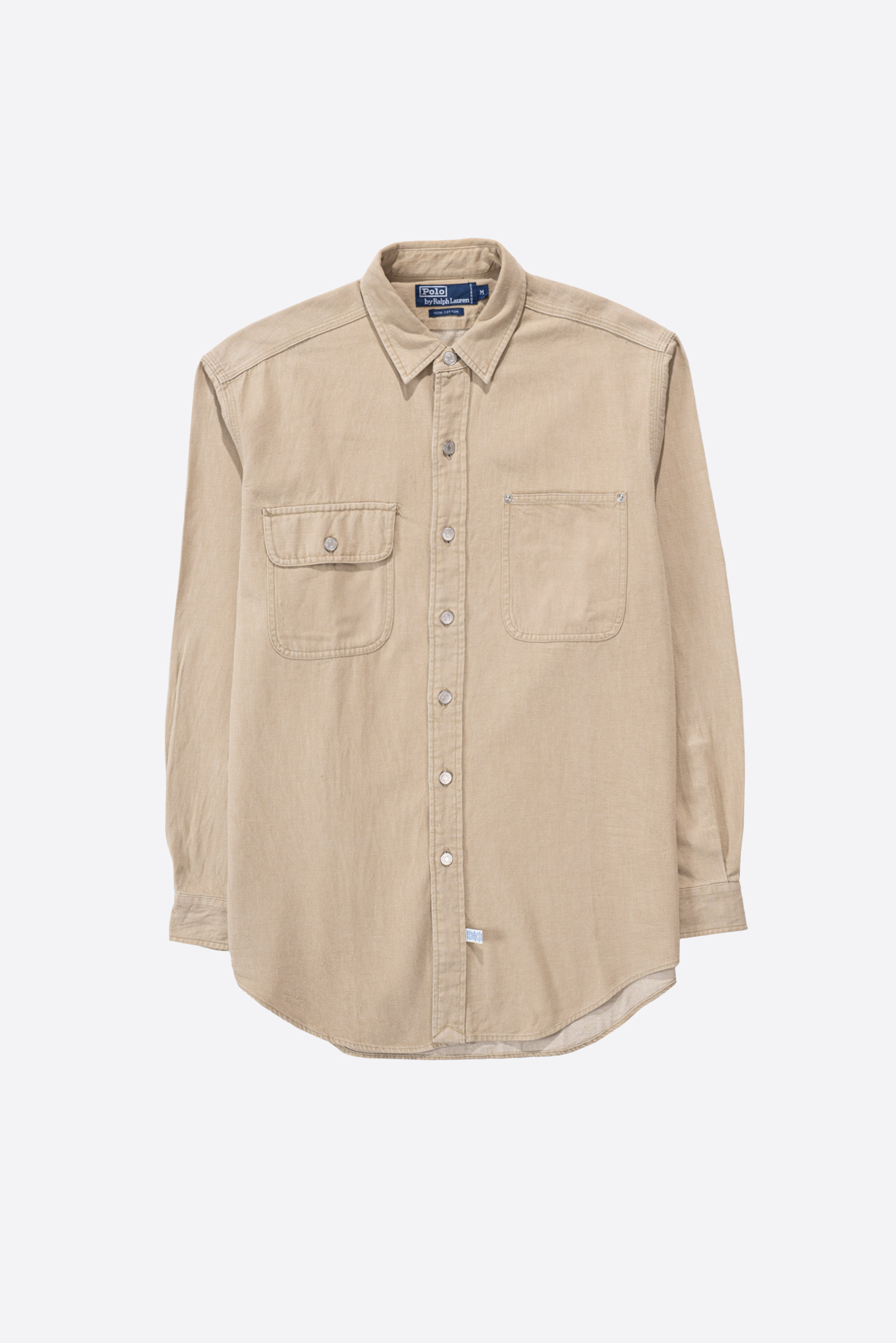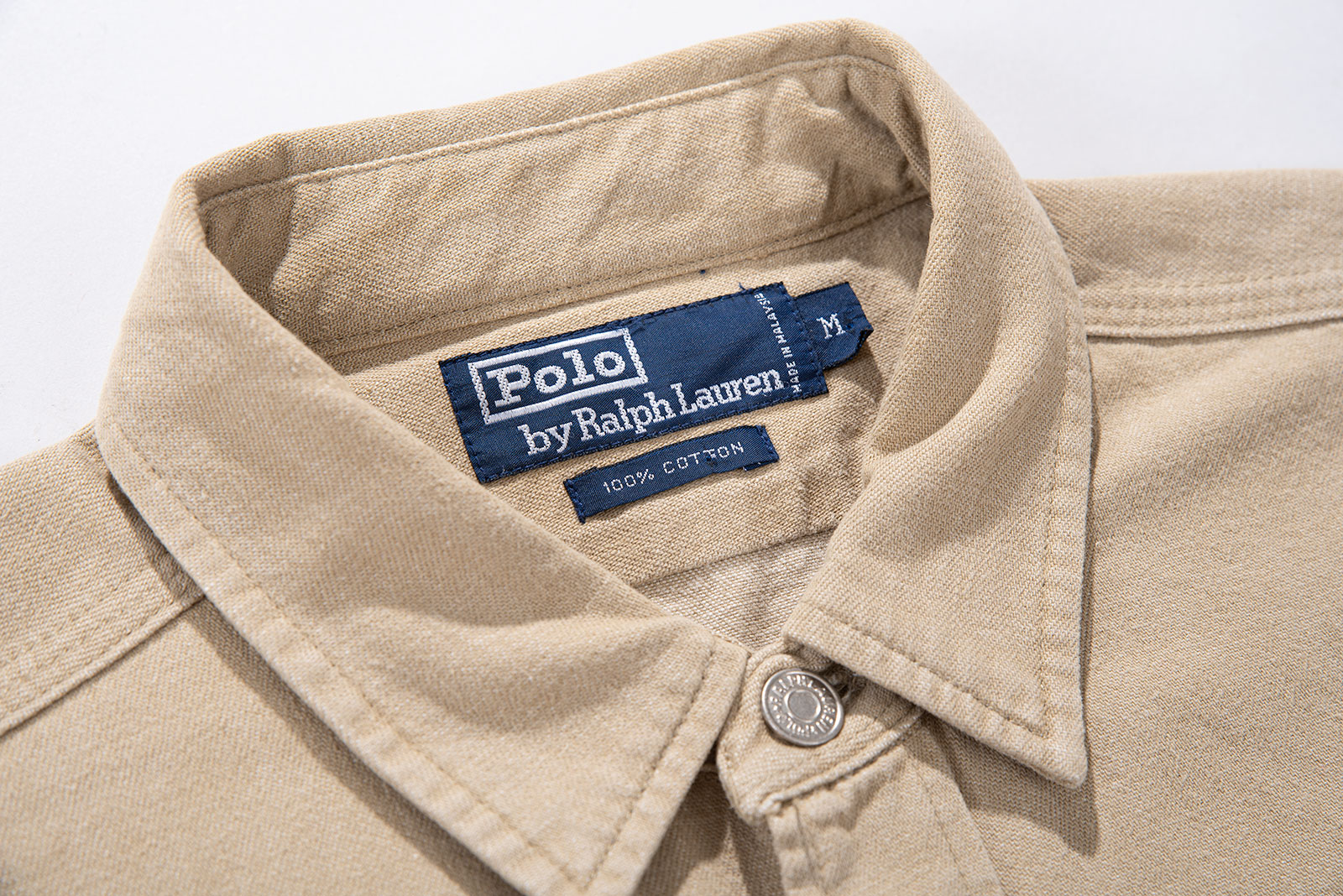 - 데님재킷같은 구성을 이루고 있는 폴로의 90 s 워크 셔츠입니다. 두툼한 코튼 원단이 바탕을 이루고 있으며 허리 라인이 90 s 베이직 제품들에 비하면 조금 슬림한 편입니다.
