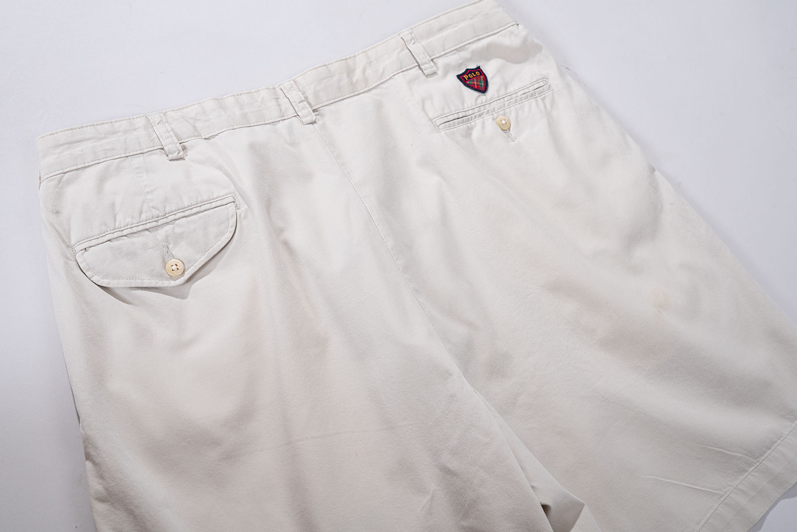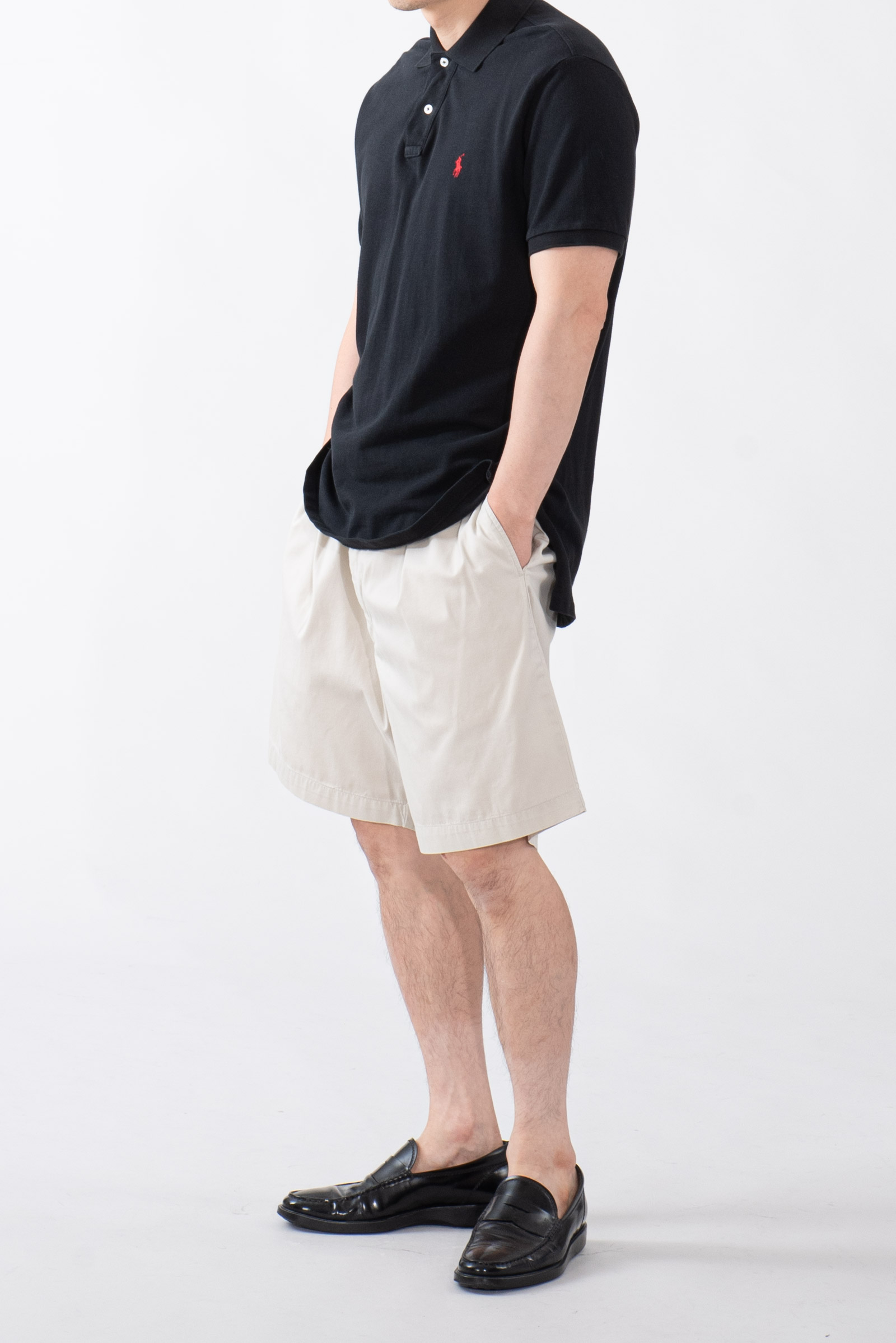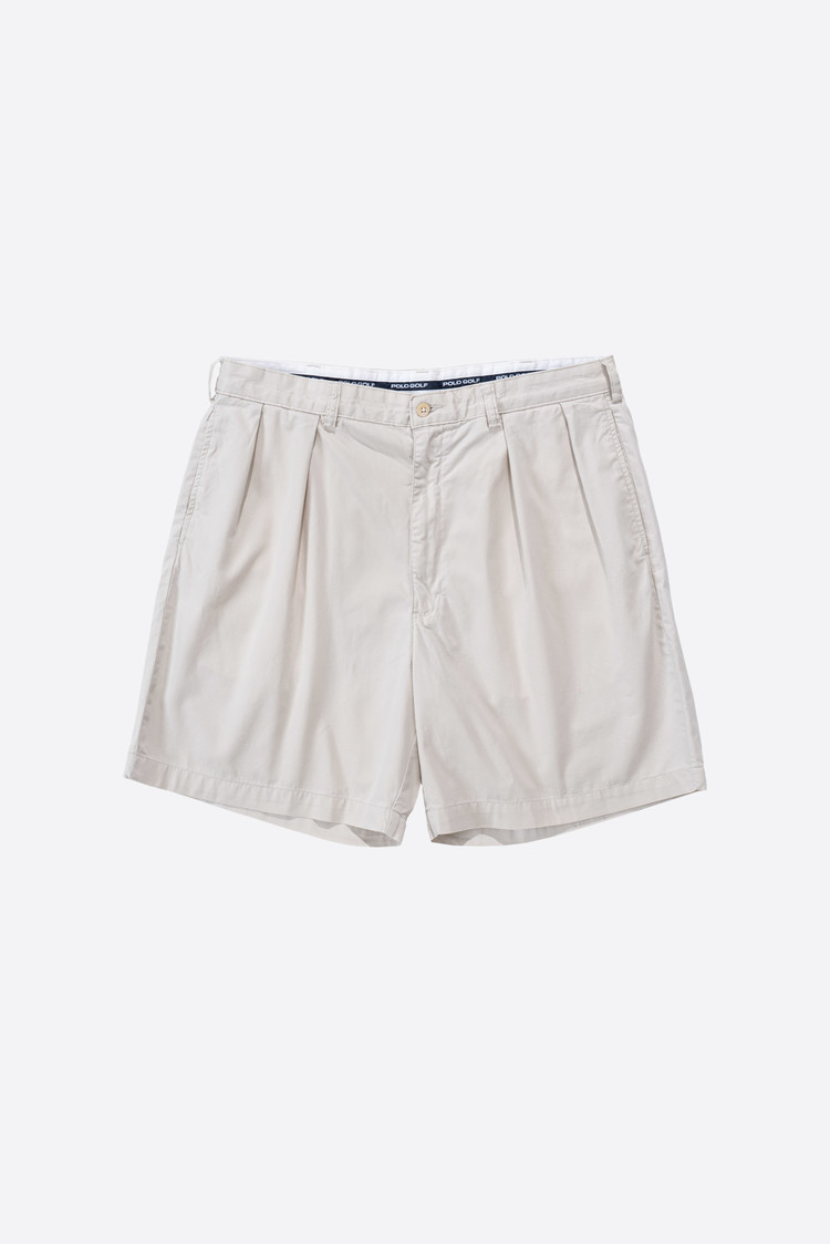 - 폴로 골프 90 s 투턱 치노 쇼츠입니다. 허벅에 비해 총장이 약간 짧은 타입으로 업 사이즈 연출 시 드레시하게 떨어지는게 특징입니다.