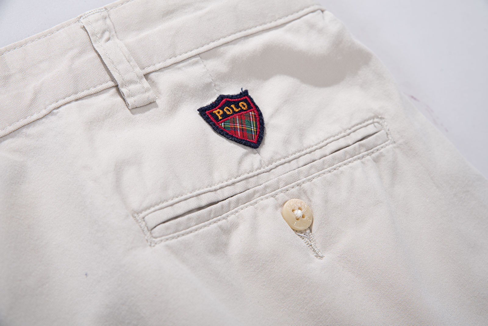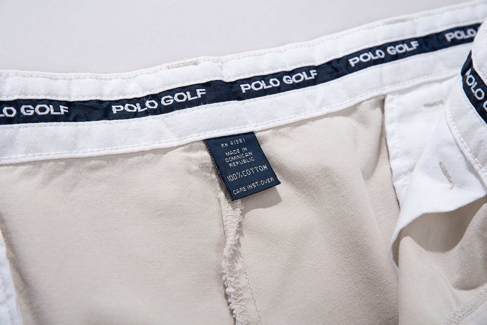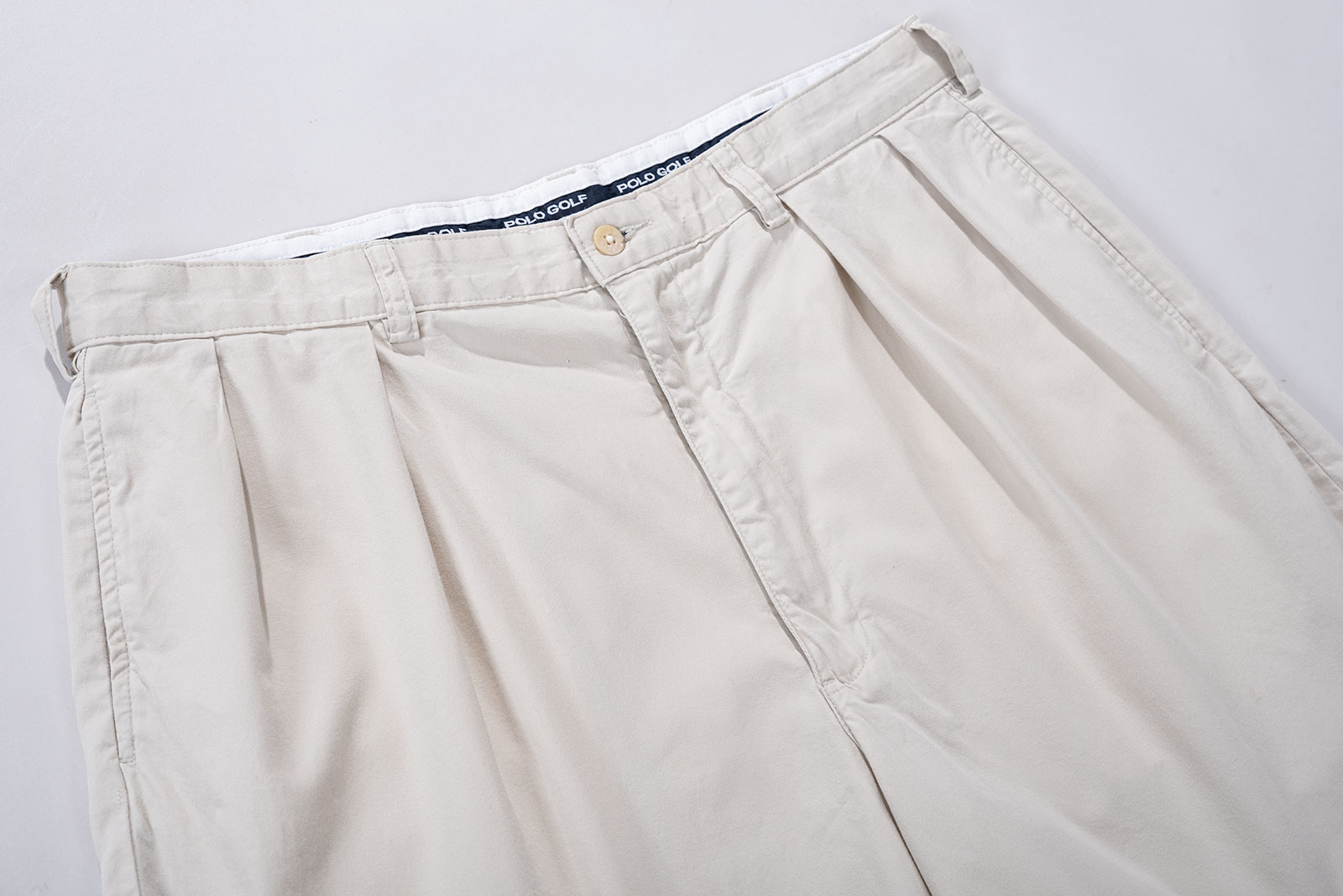 - 폴로 골프 90 s 투턱 치노 쇼츠입니다. 허벅에 비해 총장이 약간 짧은 타입으로 업 사이즈 연출 시 드레시하게 떨어지는게 특징입니다.