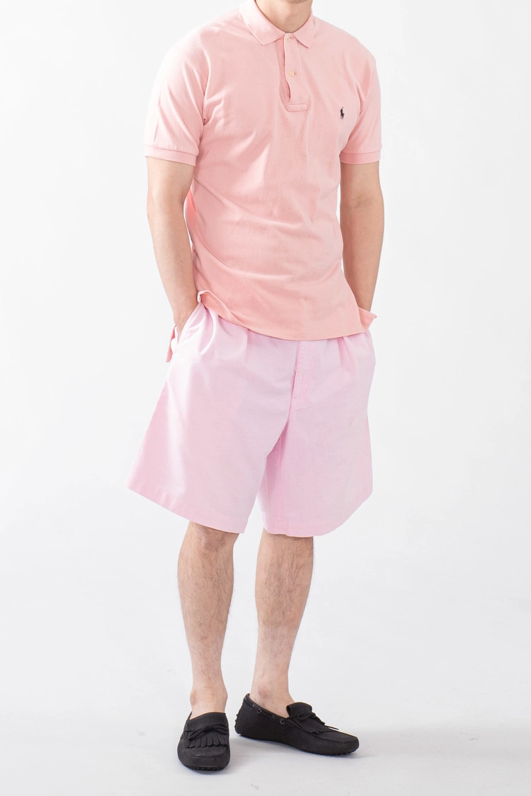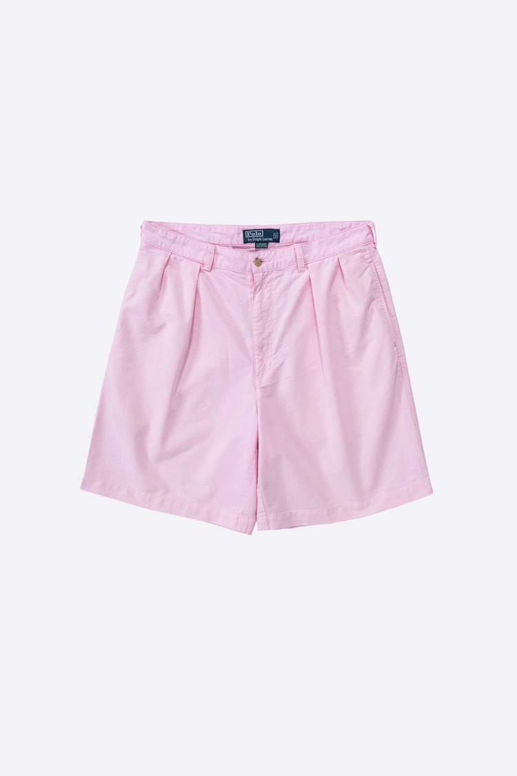 - 폴로 랄프로렌 90 s 투턱 치노 타일러 쇼츠입니다. 90 s 치노 쇼츠를 대표하는 모델이며 업 사이즈가 굳이 아니라도 캐주얼한 오버핏이 연출되어 많은 사랑을 받고 있으나 때 묻지 않고 컨디션 좋은 개체를 찾기 힘든 팬츠이기도 합니다.