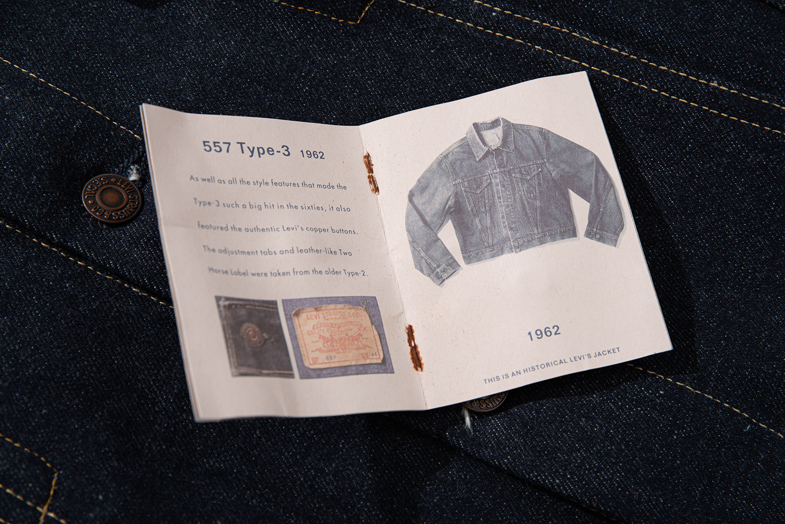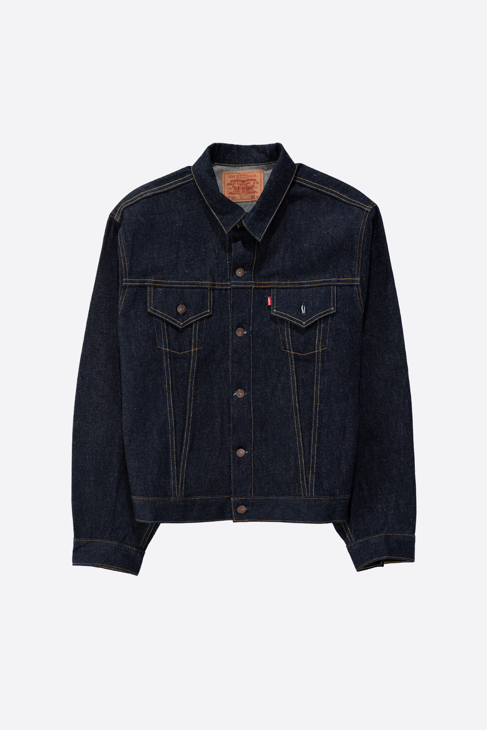 - 사진으로 확인 가능하듯 미사용품 데드스톡 컨디션이며 좌측 포켓에 브로셔까지 포함되어 있습니다. 논워시 리짓드 컬러인 0006 번으로 방축 가공이 되지 않아 세탁으로 수축이 발생하는 모델입니다. 통상적으론 한 사이즈 정도 작아진다고 보면 됩니다만 이는 세탁 방법이나 환경에 따라 차이가 발생하니 각설하도록 하겠습니다. 구매를 원하시는 분은, LVC 시리즈에 대한 이해가 충분하거나, 이 재킷을 구매하고 싶은데 LVC 소킹은 처음이다, 하시는 분이라면 공부를 충분히 하신 뒤 구매하시길 바랍니다.