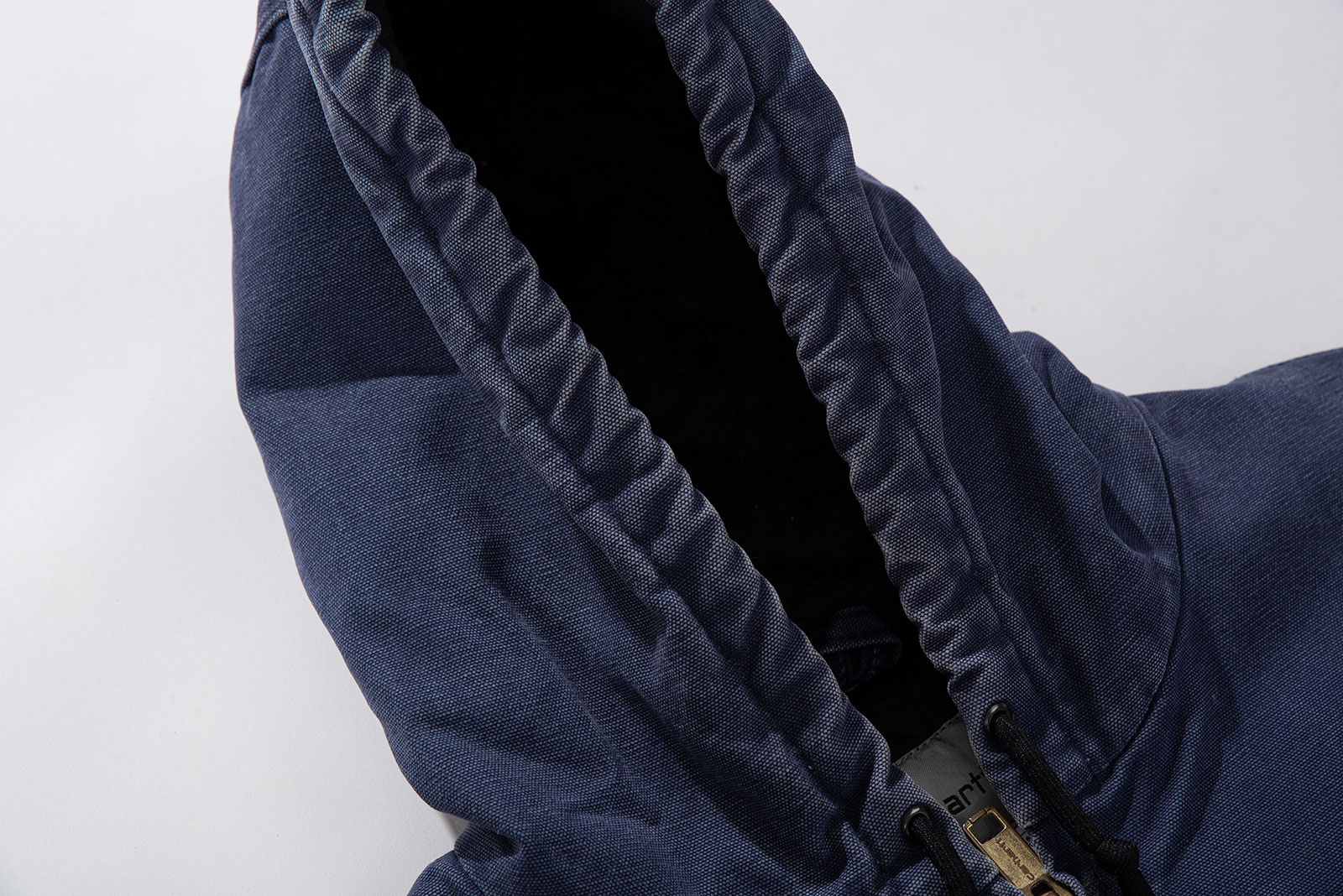 - 90 s 376-20 덕 캔버스 샌드스톤 후디 재킷입니다. 지금은 발매되지 않는 제품이며 디트로이트를 비롯한 몇몇 제품과 동일하게 빈티지가 아닌 이상 접하기 힘든 재킷입니다. 에이징이 정말 멋지게 되었습니다. 노동자의 옷답게 회사명 주기 되어 있으며 사용감 다분합니다. 이해가 충분한 분께 권합니다.