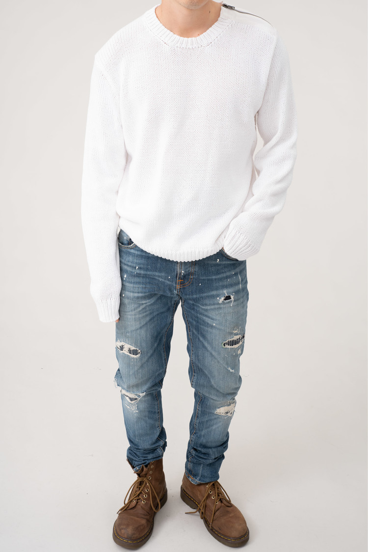 - 홍콩 발 90s 코만도 코튼 니트입니다. 새것처럼 깨끗한 컨디션을 유지하고 있습니다만 세탁을 잘못해서 등쪽에 빨간색으로 물이 살짝 들었습니다. 사진으론 잘 안 보이고 실물로도 좀 자세하게 봐야하긴 하는데 아무튼 물이 들었습니다.