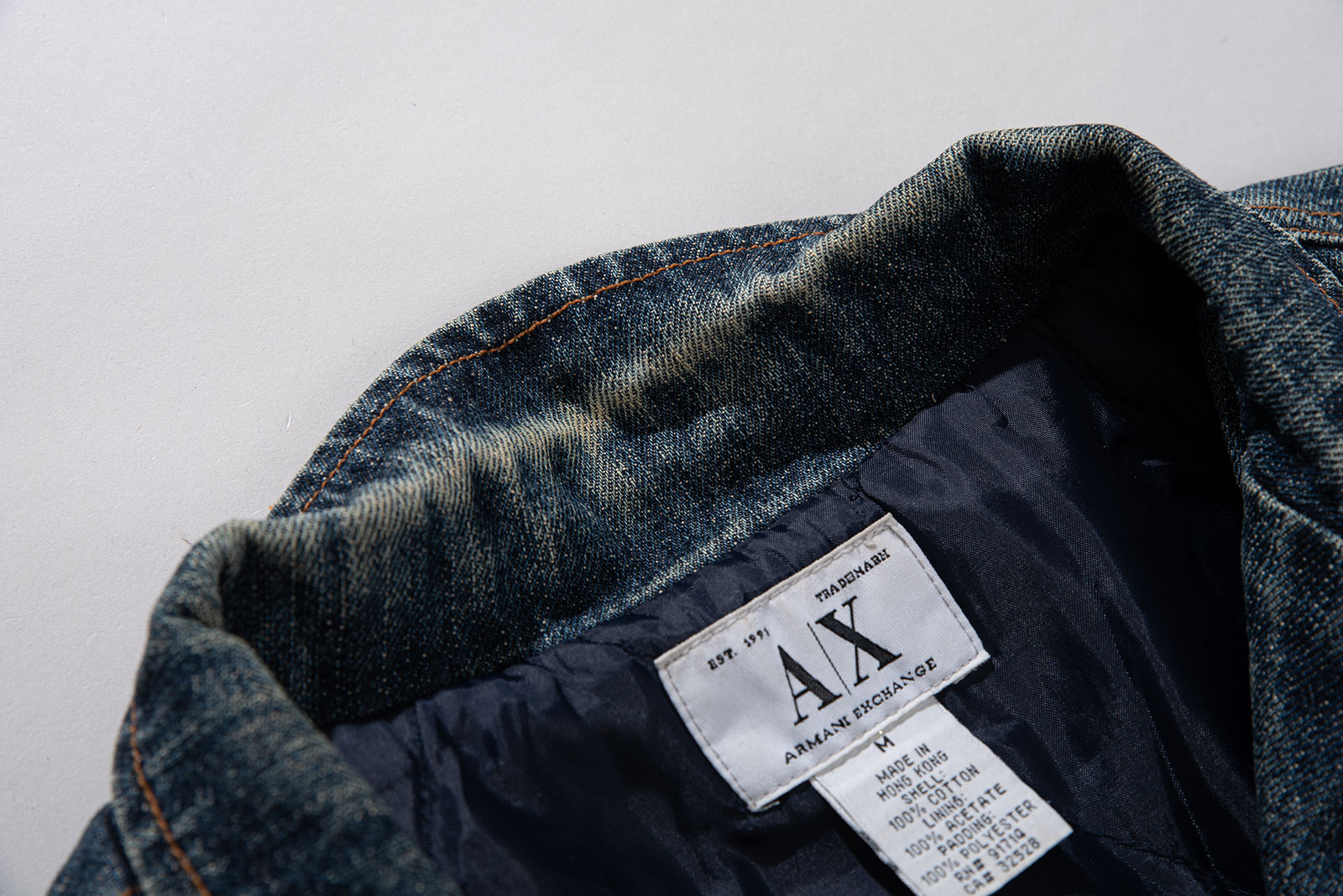 - 홍콩에서 생산 된 90s 알마니 익스체인지 데님 초어 코트입니다. 블랭킷이 아닌 퀄팅 안감으로 좀 더 가볍고 실용적으로 걸치기 좋은 재킷입니다. 알마니 익스체인지에서 초어 코트라 하니 참 이질적이긴 하지만, 90 년대의 대부분 브랜드들이 그렇듯 잘 만들긴 정말 잘 만들었습니다. 디테일도 군더더기없고 라인도 어색하지 않고 심플하고 터프합니다.