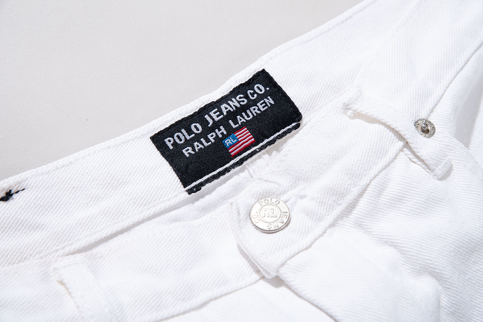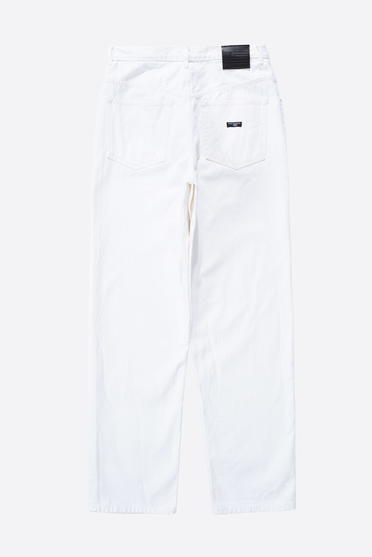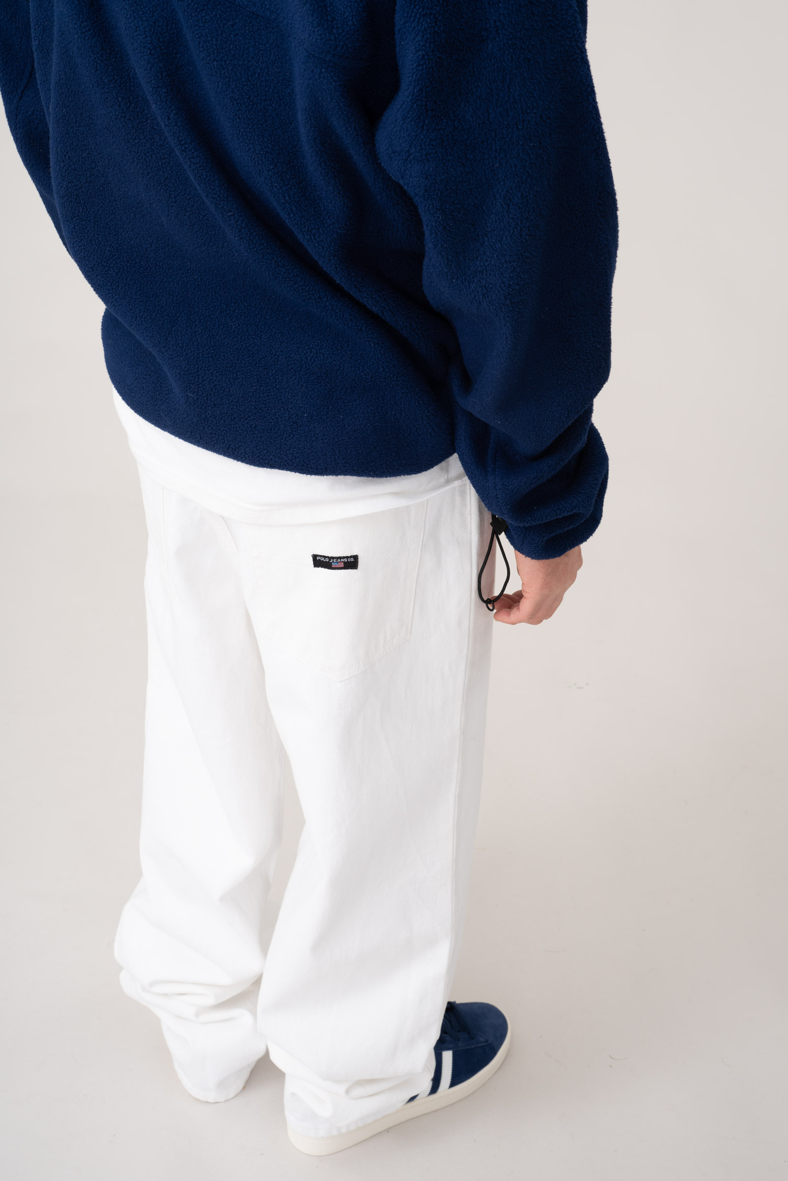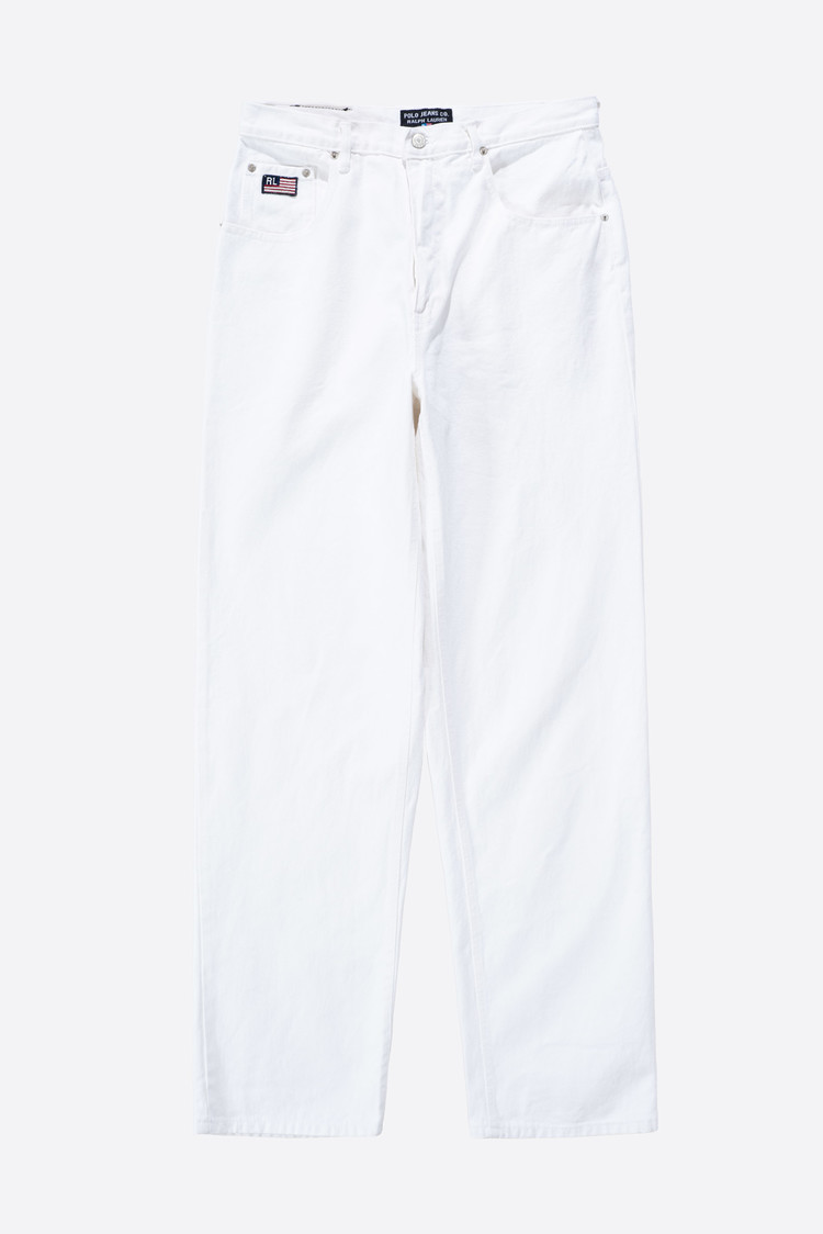 - 90s 폴로 진스 와이드 화이트 팬츠입니다. 지금은 볼 수 없는, 90 년대의 여유롭고 투박한 무드가 그대로 묻어있는 러프한 제품입니다. 미드90의 스케이터처럼 입기 좋은 바지에요.