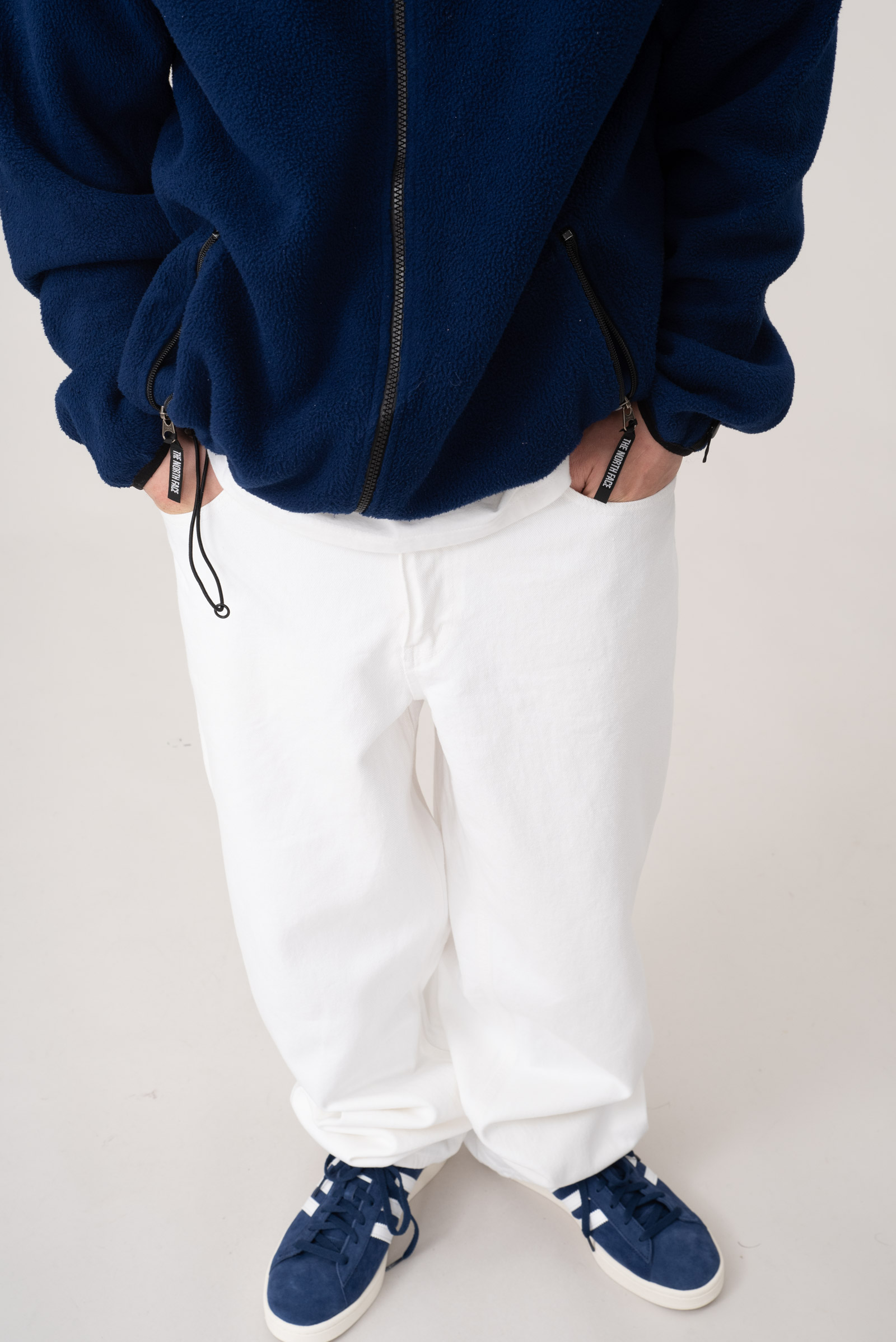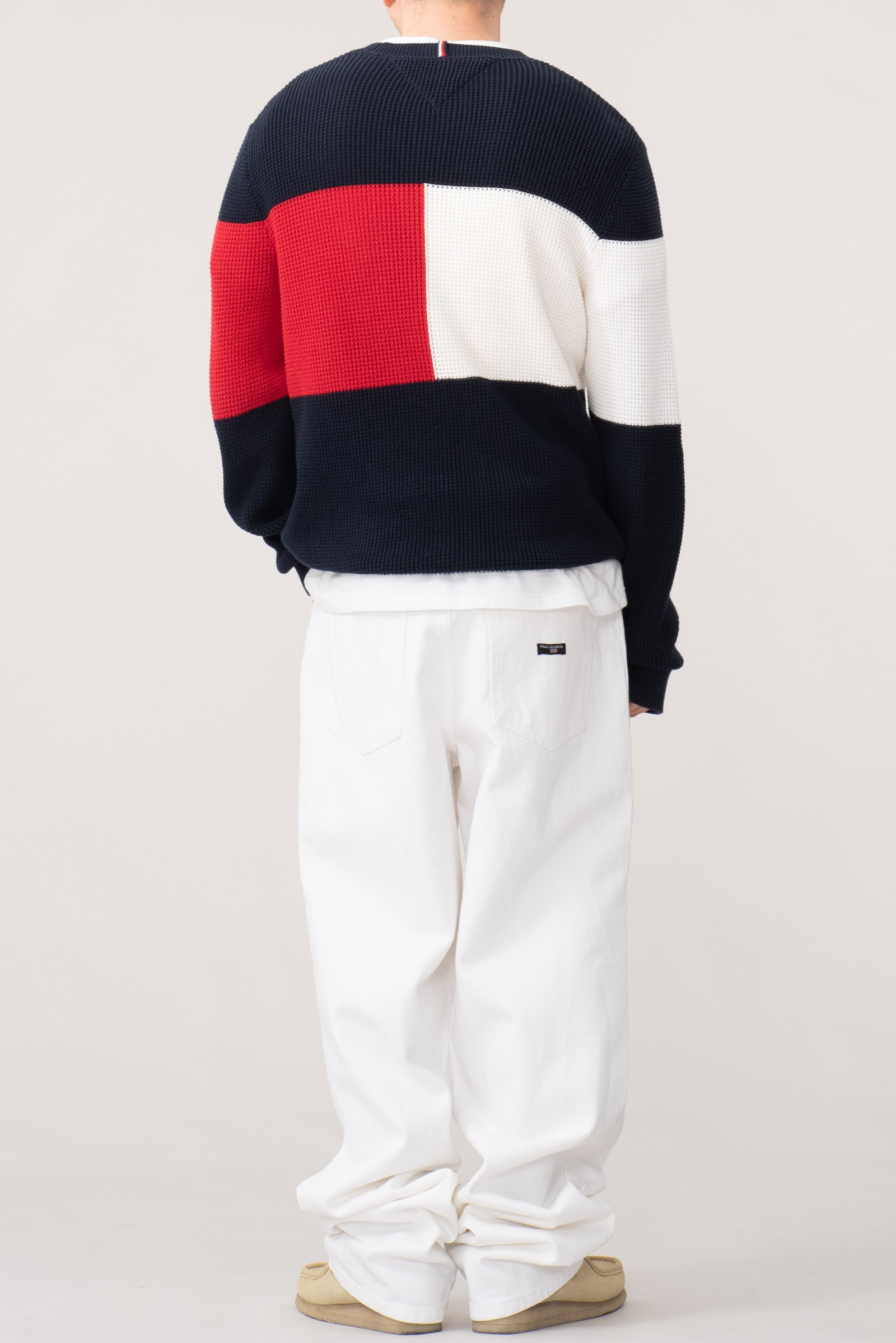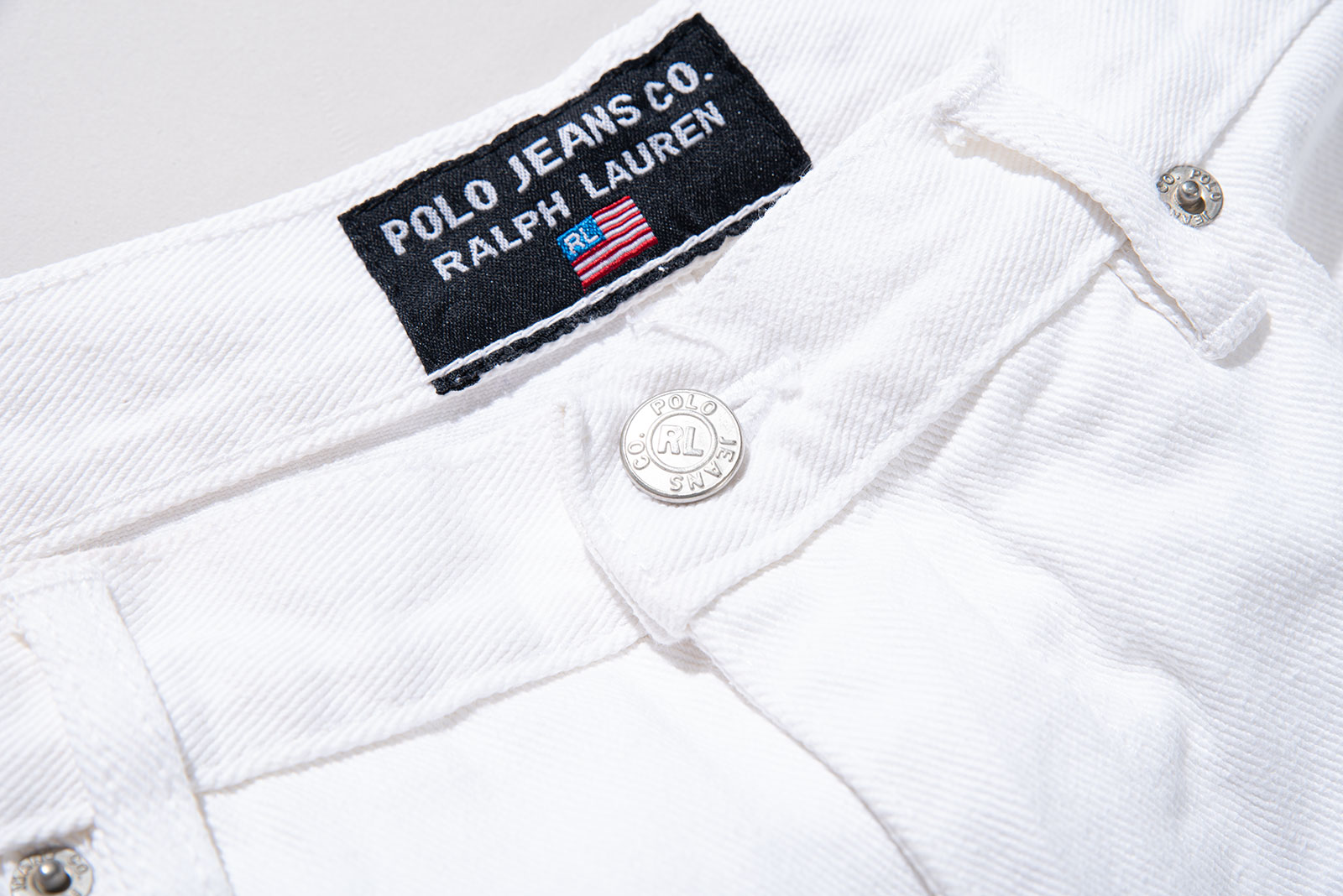 - 90s 폴로 진스 와이드 화이트 팬츠입니다. 지금은 볼 수 없는, 90 년대의 여유롭고 투박한 무드가 그대로 묻어있는 러프한 제품입니다. 미드90의 스케이터처럼 입기 좋은 바지에요.