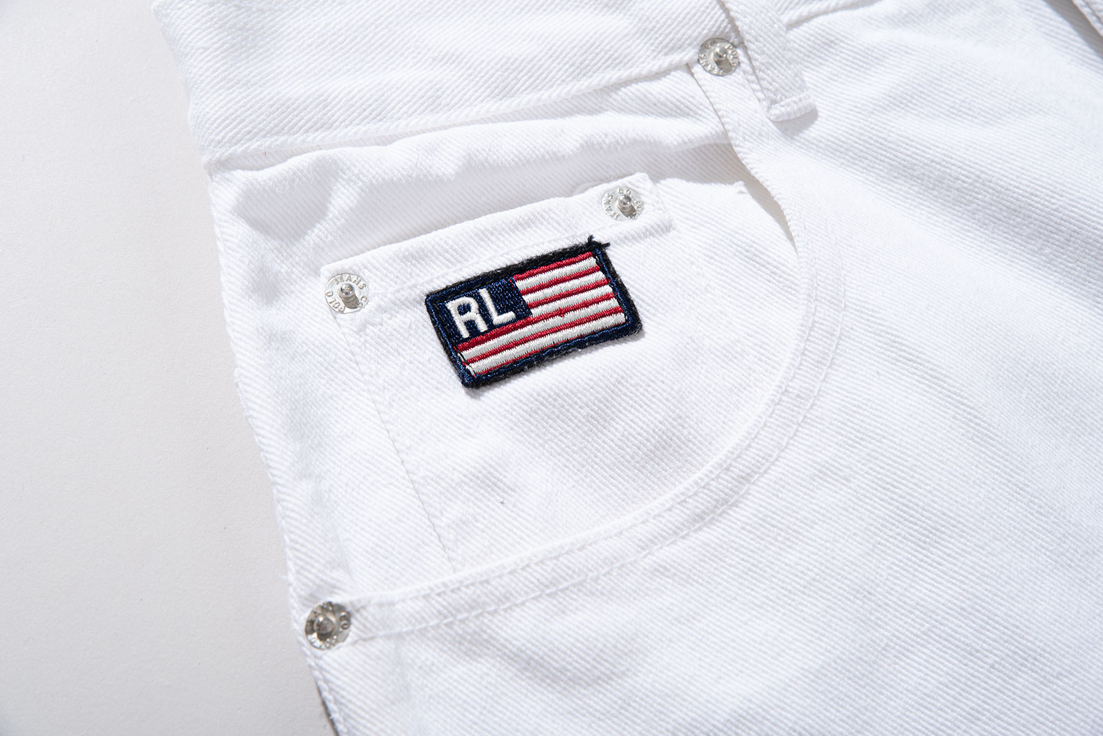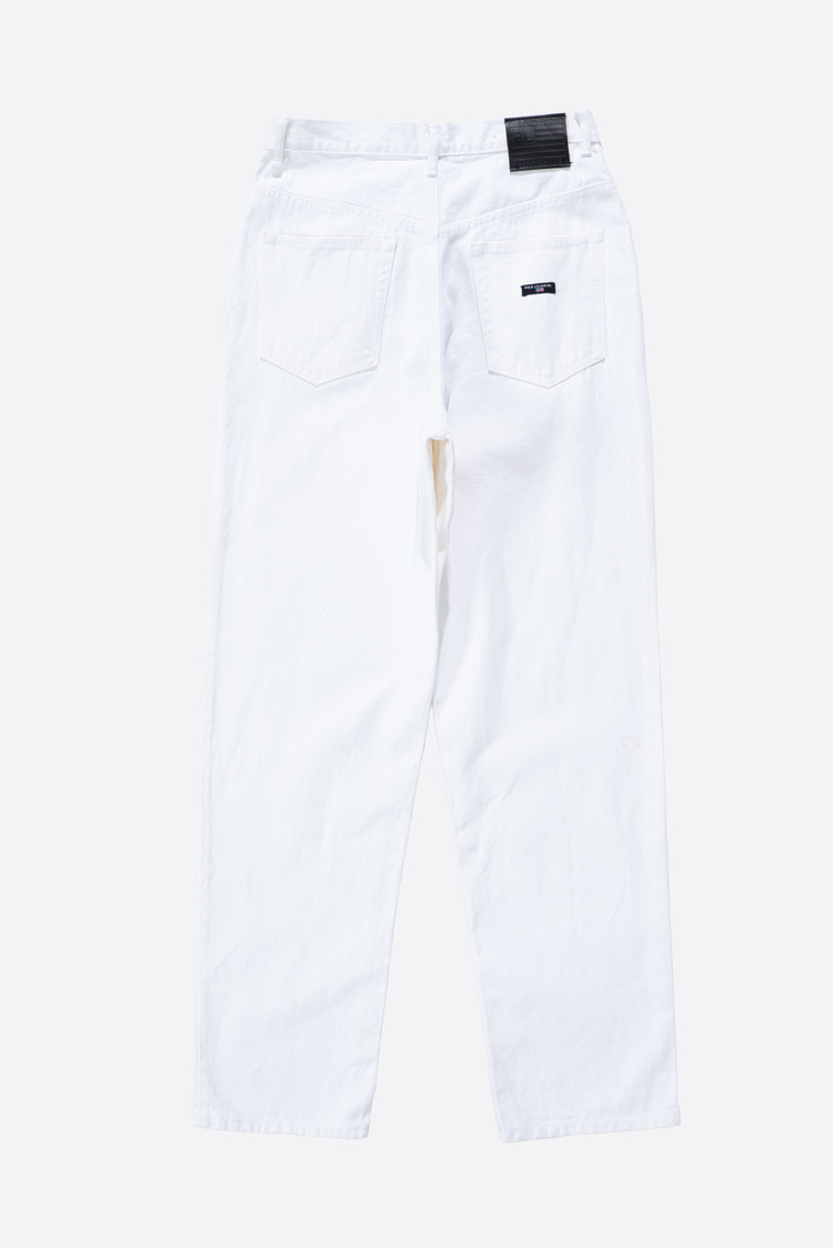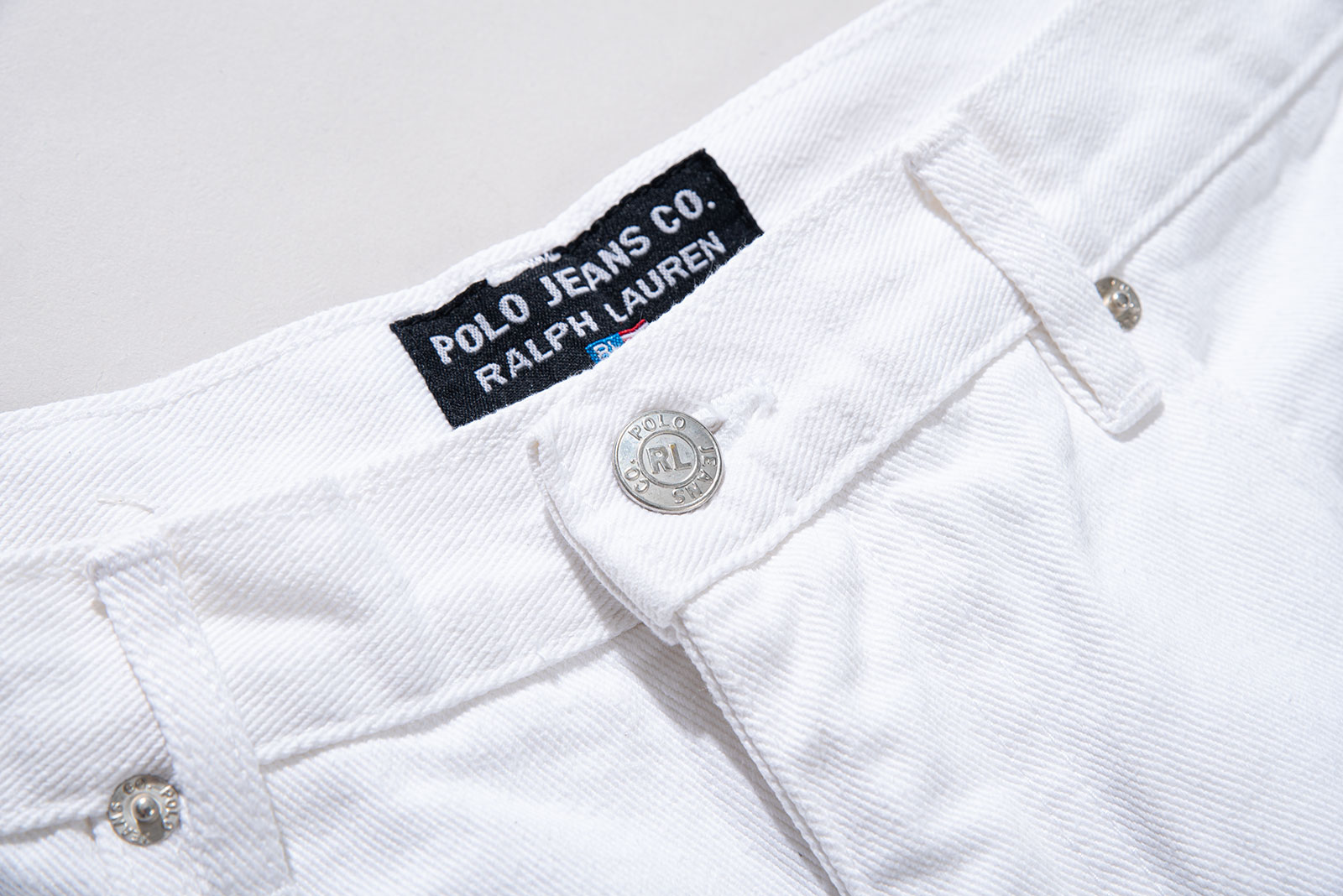 - 90s 폴로 진스 와이드 화이트 팬츠입니다. 지금은 볼 수 없는, 90 년대의 여유롭고 투박한 무드가 그대로 묻어있는 러프한 제품입니다. 미드90의 스케이터처럼 입기 좋은 바지에요.