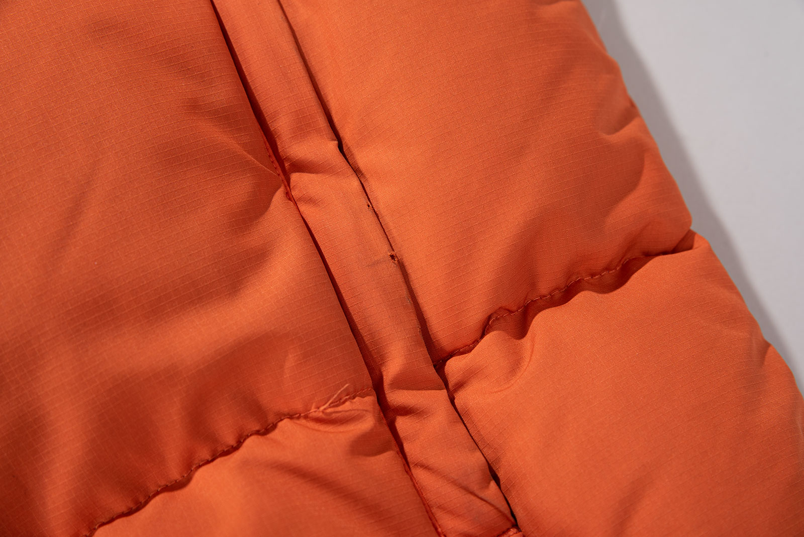- 90s 나이키 다운 베스트입니다. 상큼한 오렌지색으로 전면부 주머니 쪽 해서 오염이 많았습니다만 전문 업체에 맡겨 2 번에 걸쳐 세탁한 끝에 나름 깔끔하게 정리는 되었네요. 사진으로 보여지듯 큰 오염은 보이지 않습니다만 자잘하게는 좀 티는나니 참고 하시길.