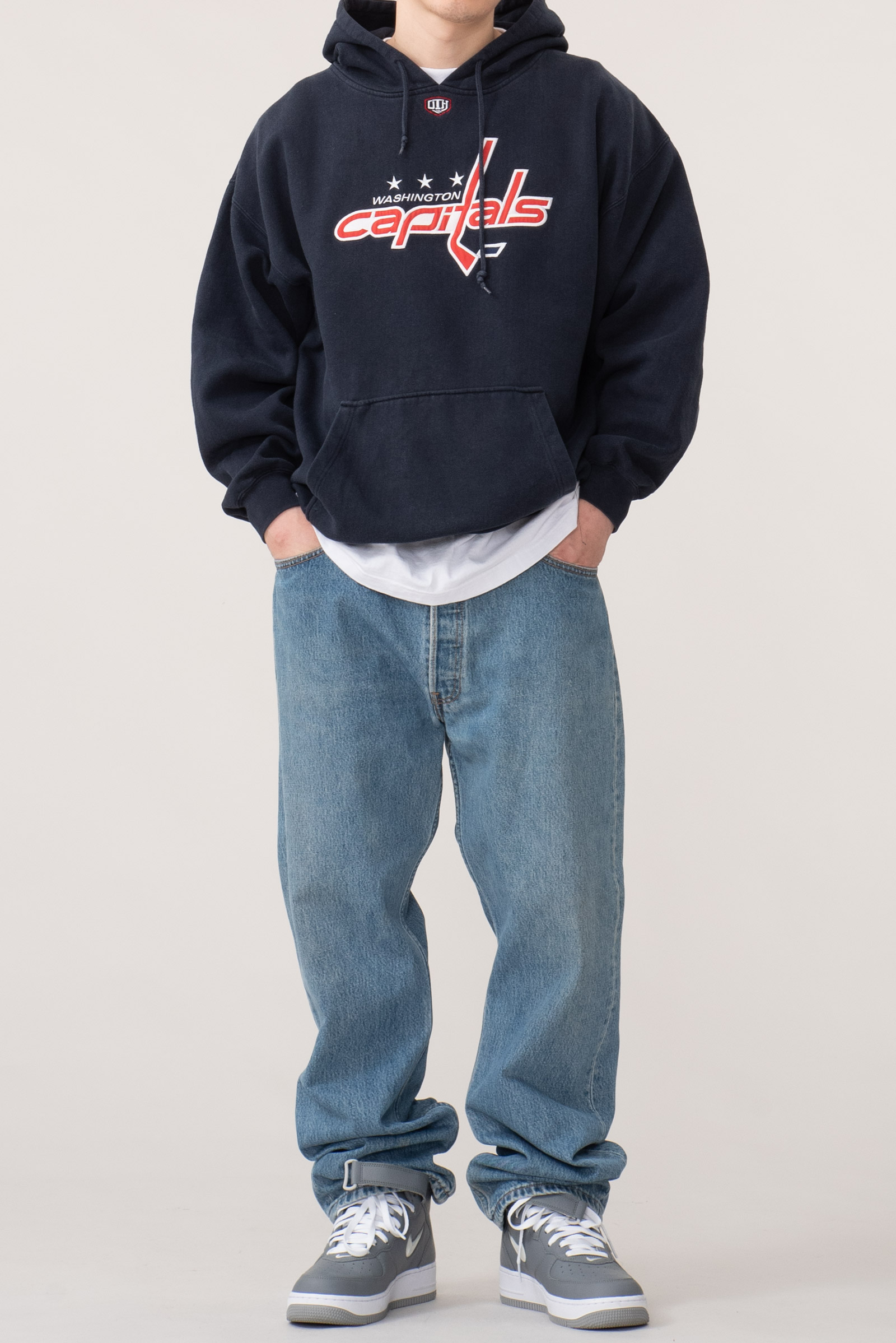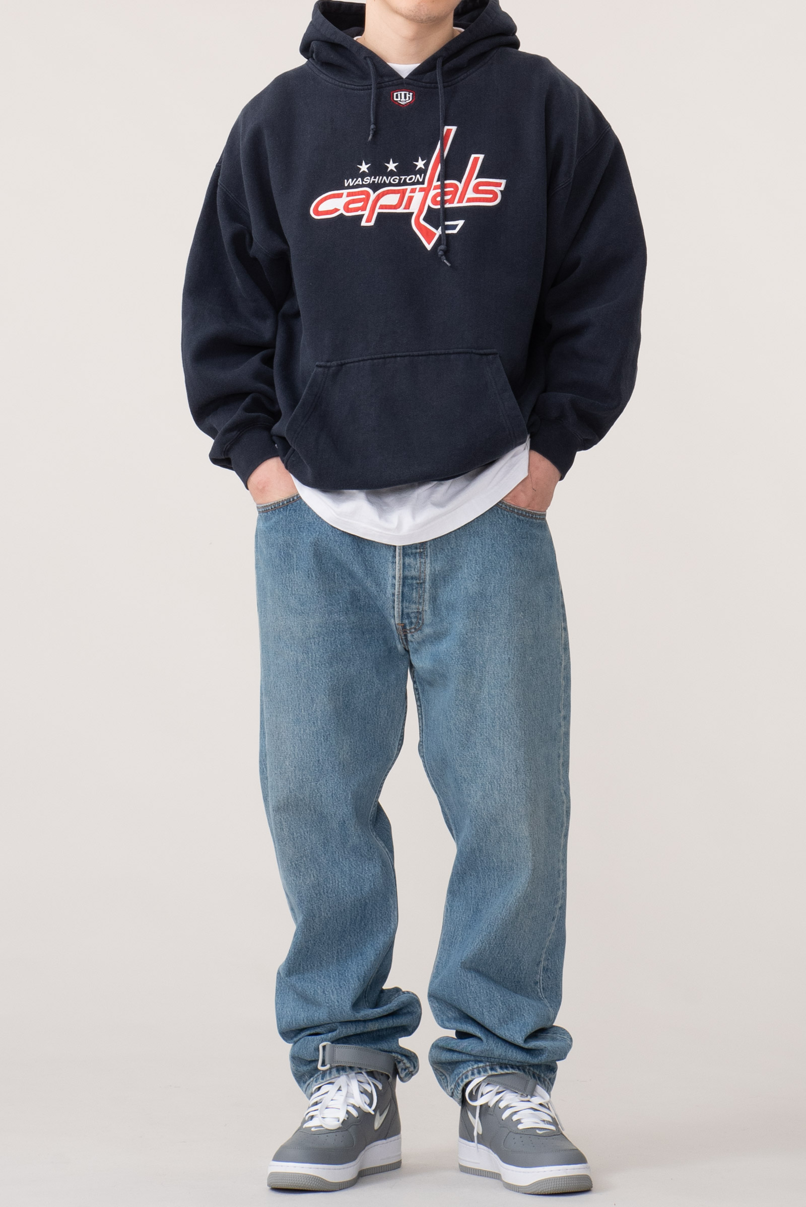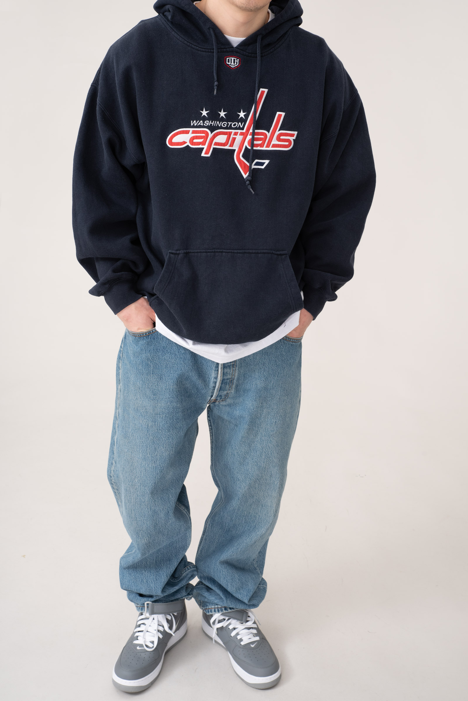 - 하키팀 티셔츠 전문 생산 브랜드 올드 타임 하키의 워싱턴 캐피털스 맨투맨입니다. 전체적으로 사용감있습니다. 두께감이 좋아 박력이 있고 실루엣이 힘있게 잘 잡힙니다.