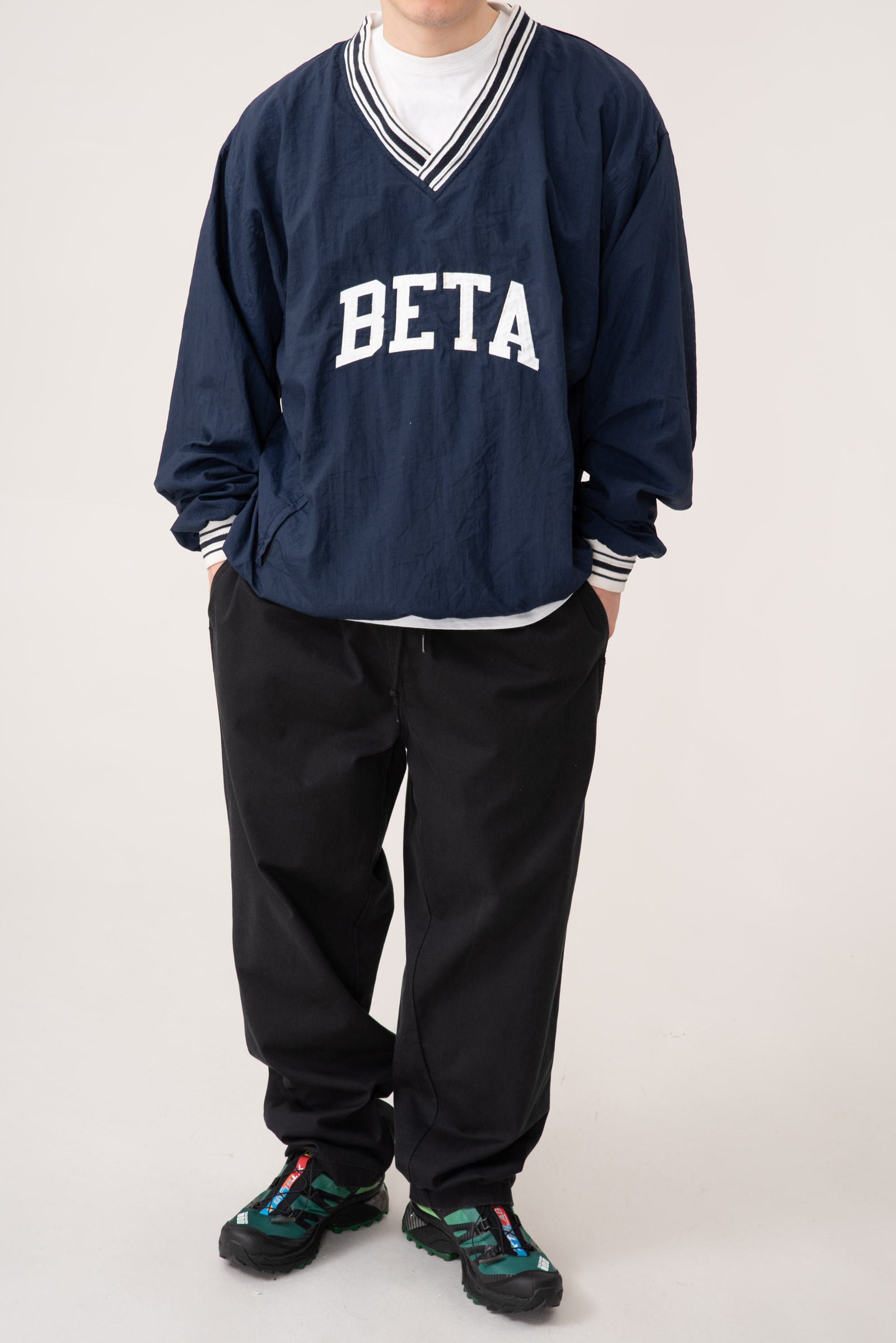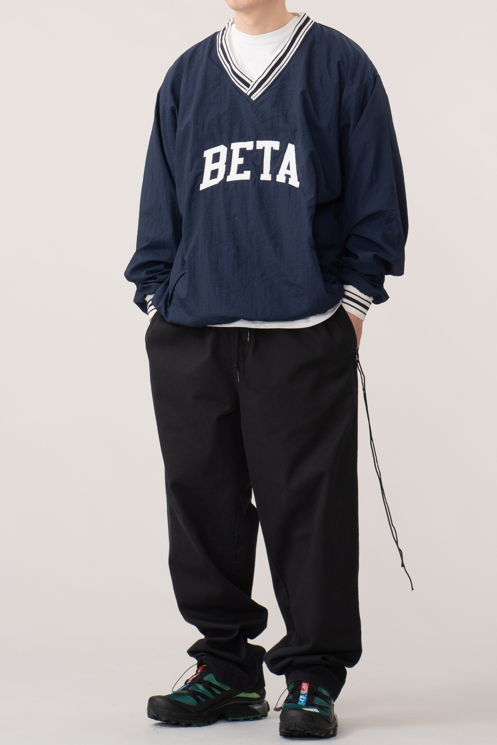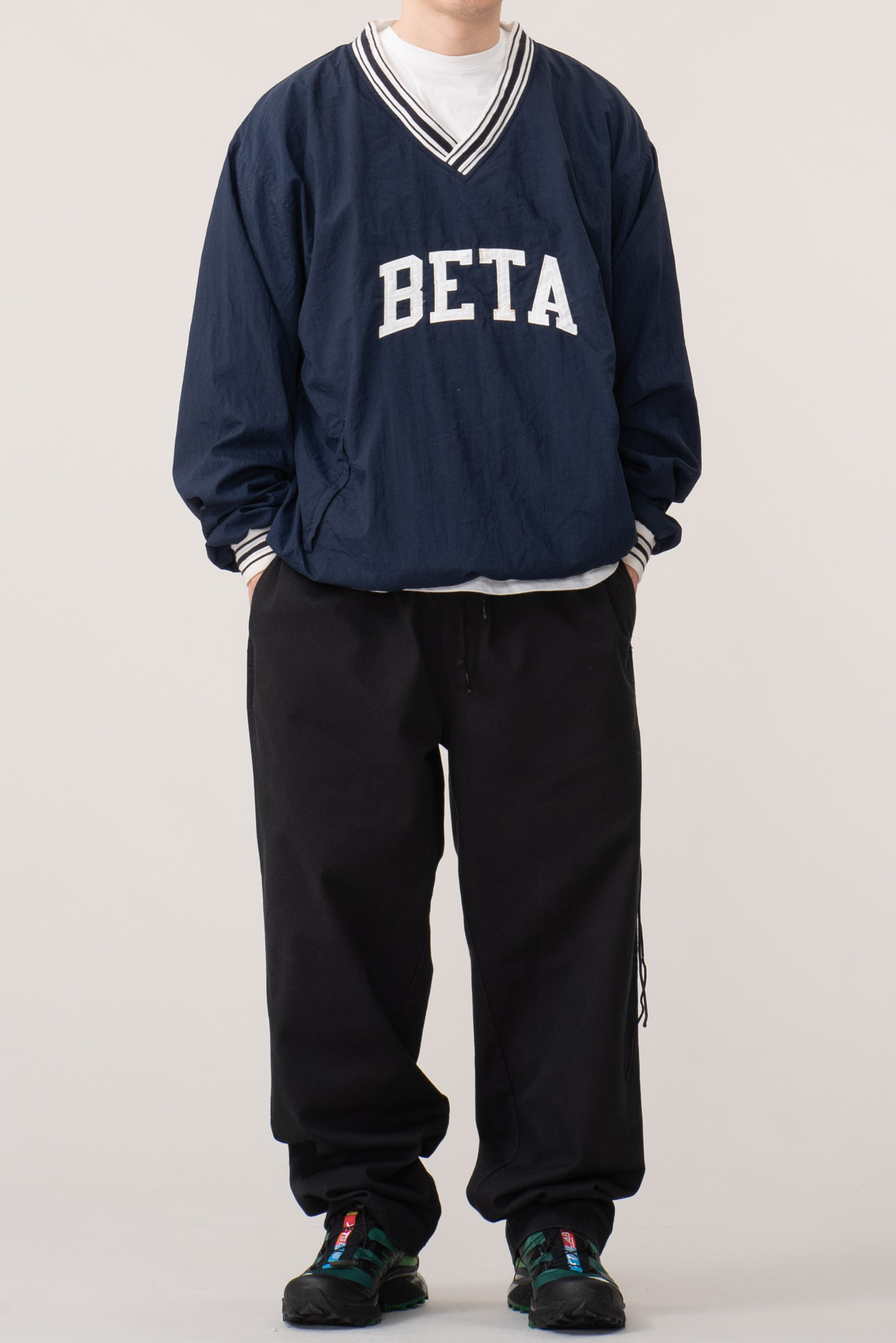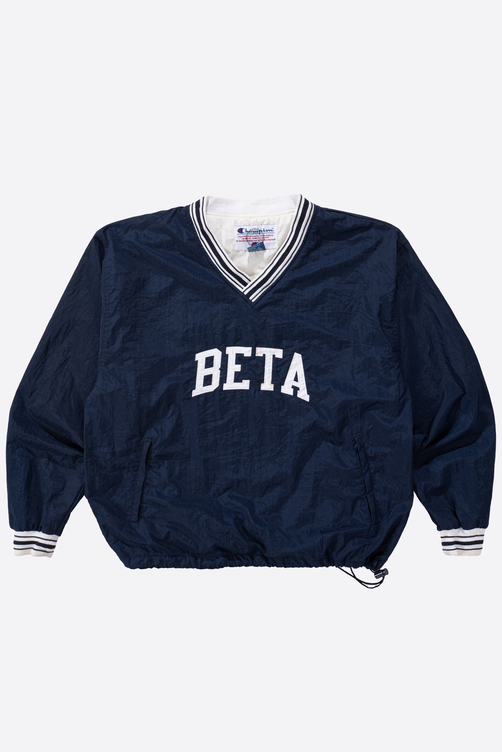 - 아주 귀하고 귀여운 제품입니다. 챔피온 90s 나일론 웜업입니다. 웨어러블하게 활용하기 좋은 큰 사이즈로 입고 되었으며 정면 BETA 폰트도 정말 심플하고 귀엽죠.