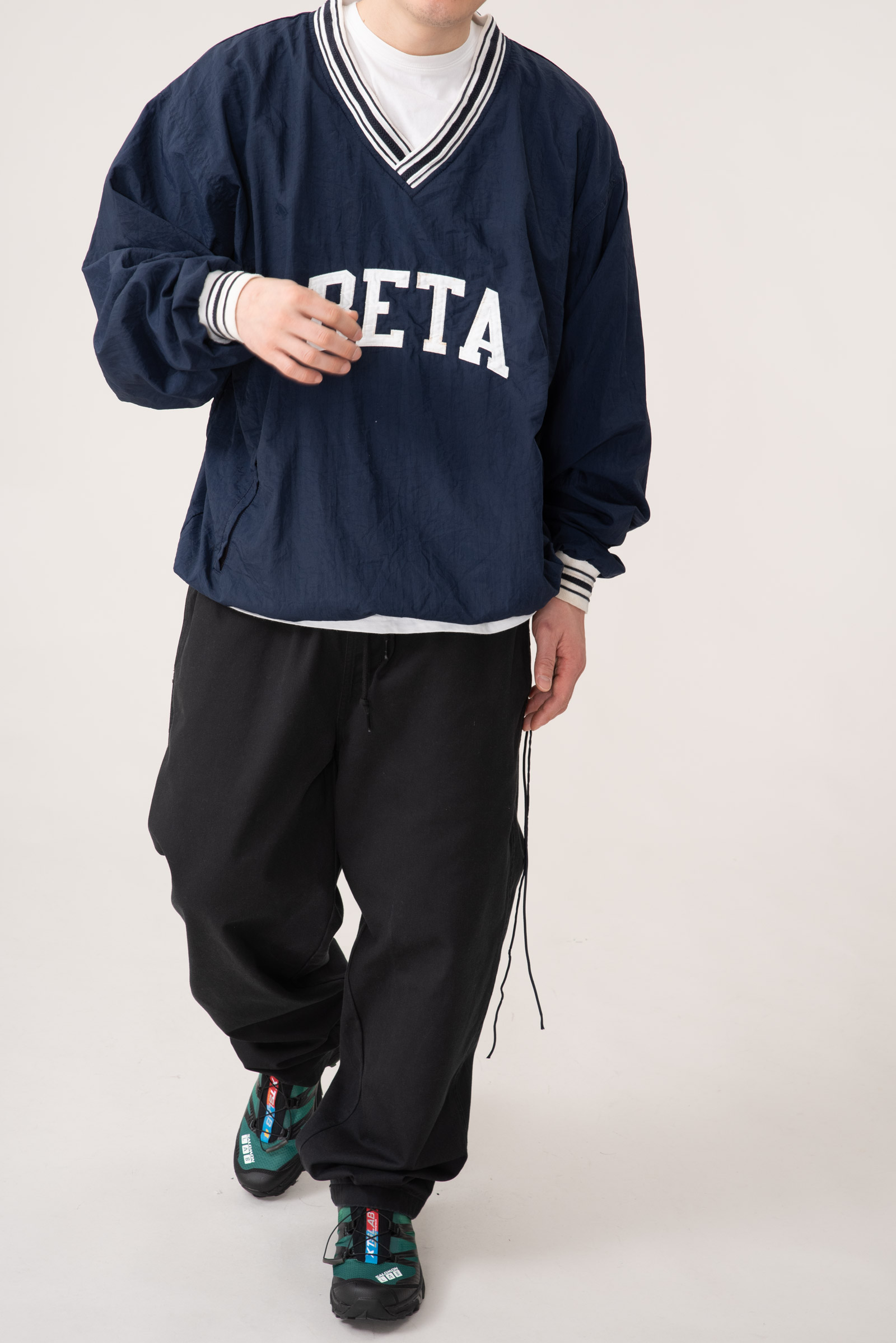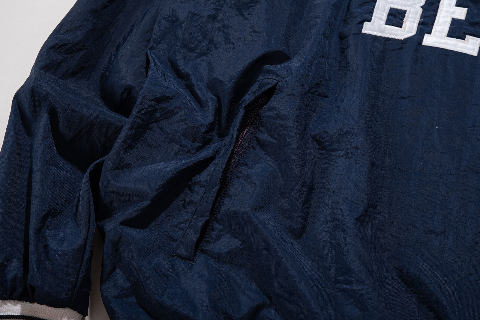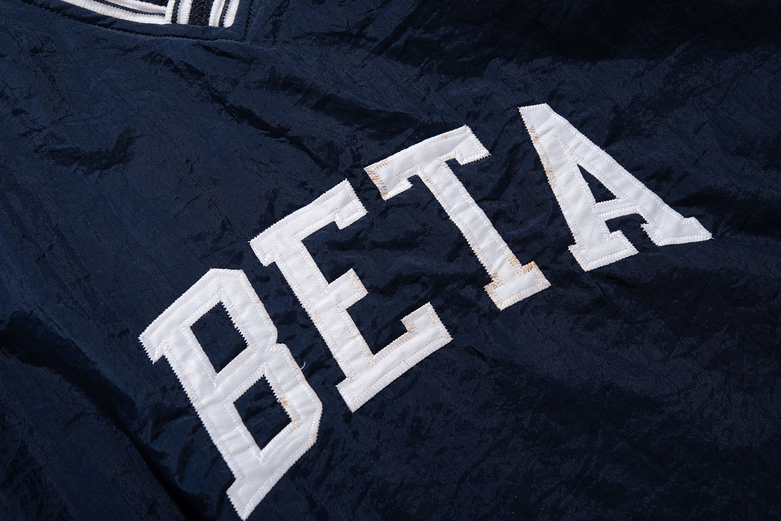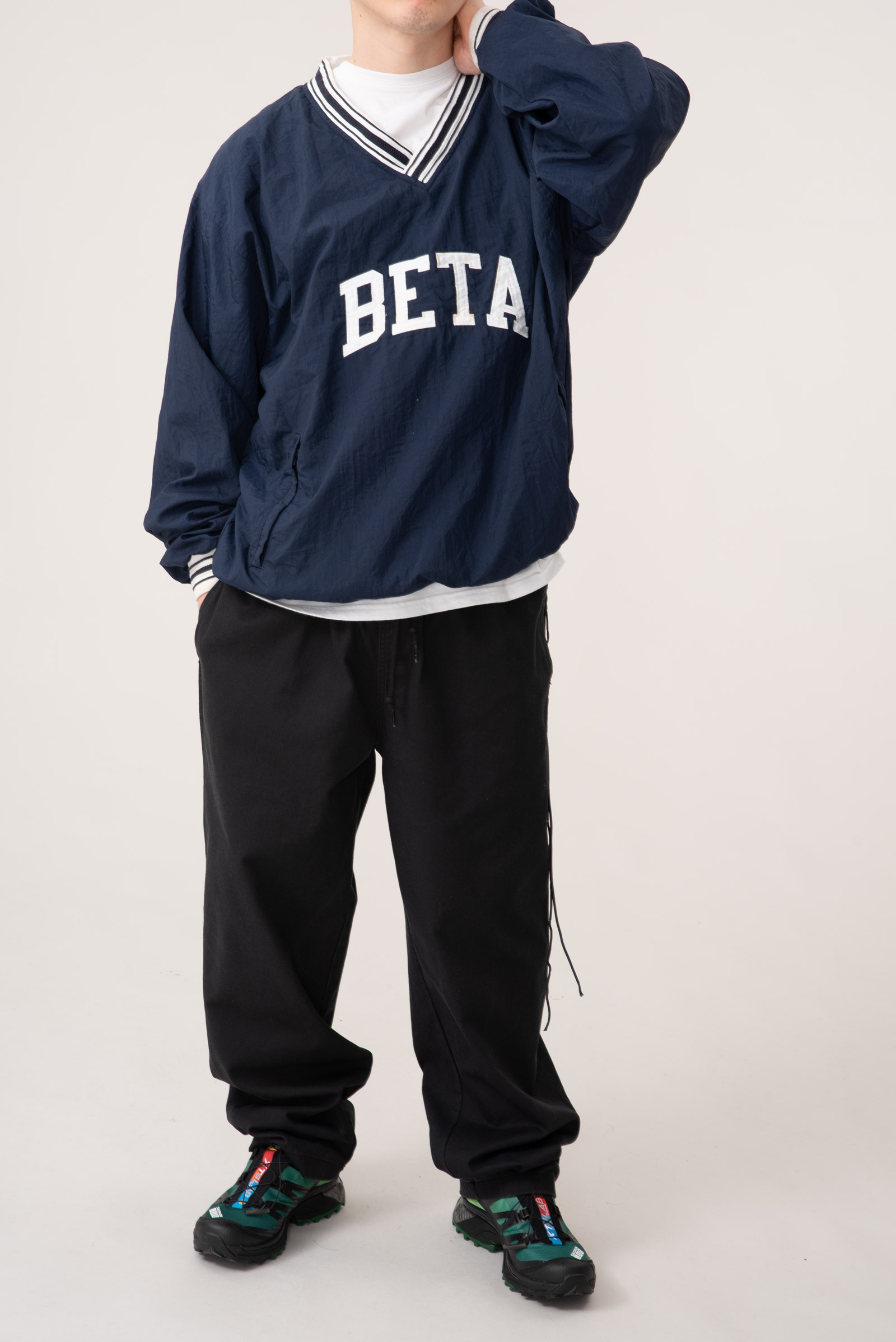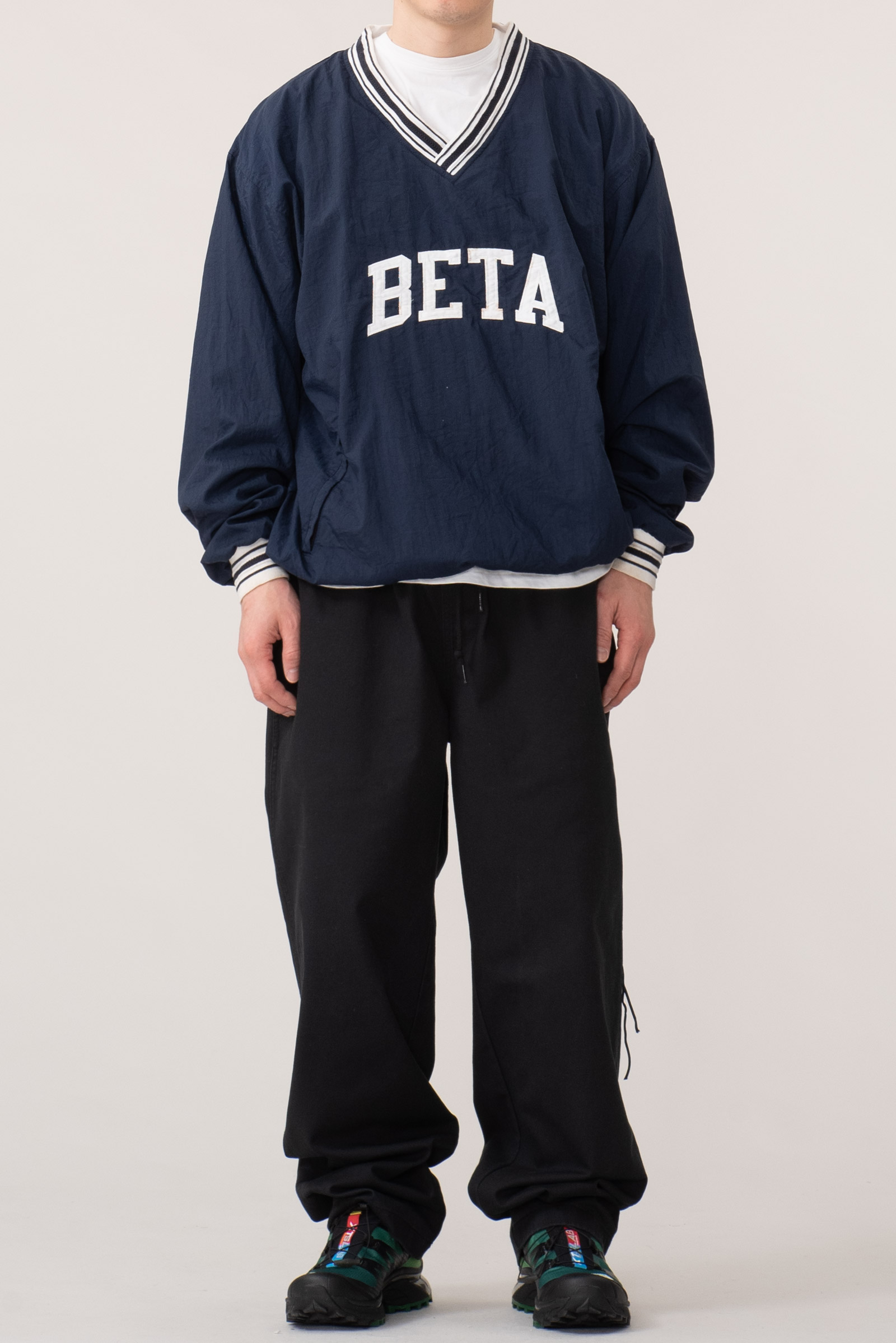 - 아주 귀하고 귀여운 제품입니다. 챔피온 90s 나일론 웜업입니다. 웨어러블하게 활용하기 좋은 큰 사이즈로 입고 되었으며 정면 BETA 폰트도 정말 심플하고 귀엽죠.