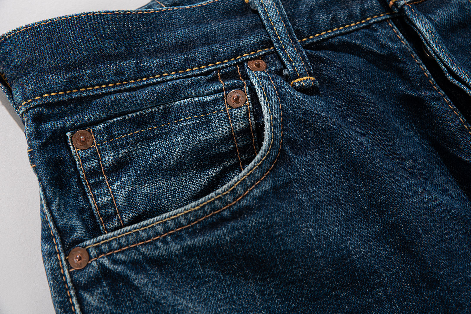 - 전체적으로 페이딩도 시원하게 나왔고 사용감있습니다만 에비수 특유의 박력있고 두툼한 셀비지 원단 질감은 그대로 살아있습니다. 아이언 하트처럼 사타구니 습진나는 두께는 아니지만, 오사카 파이브의 주축이 될 수 있었던 에비수만의 정체성이 잘 묻어나는 디테일은 충분히 느낄 수 있다고 봅니다.
