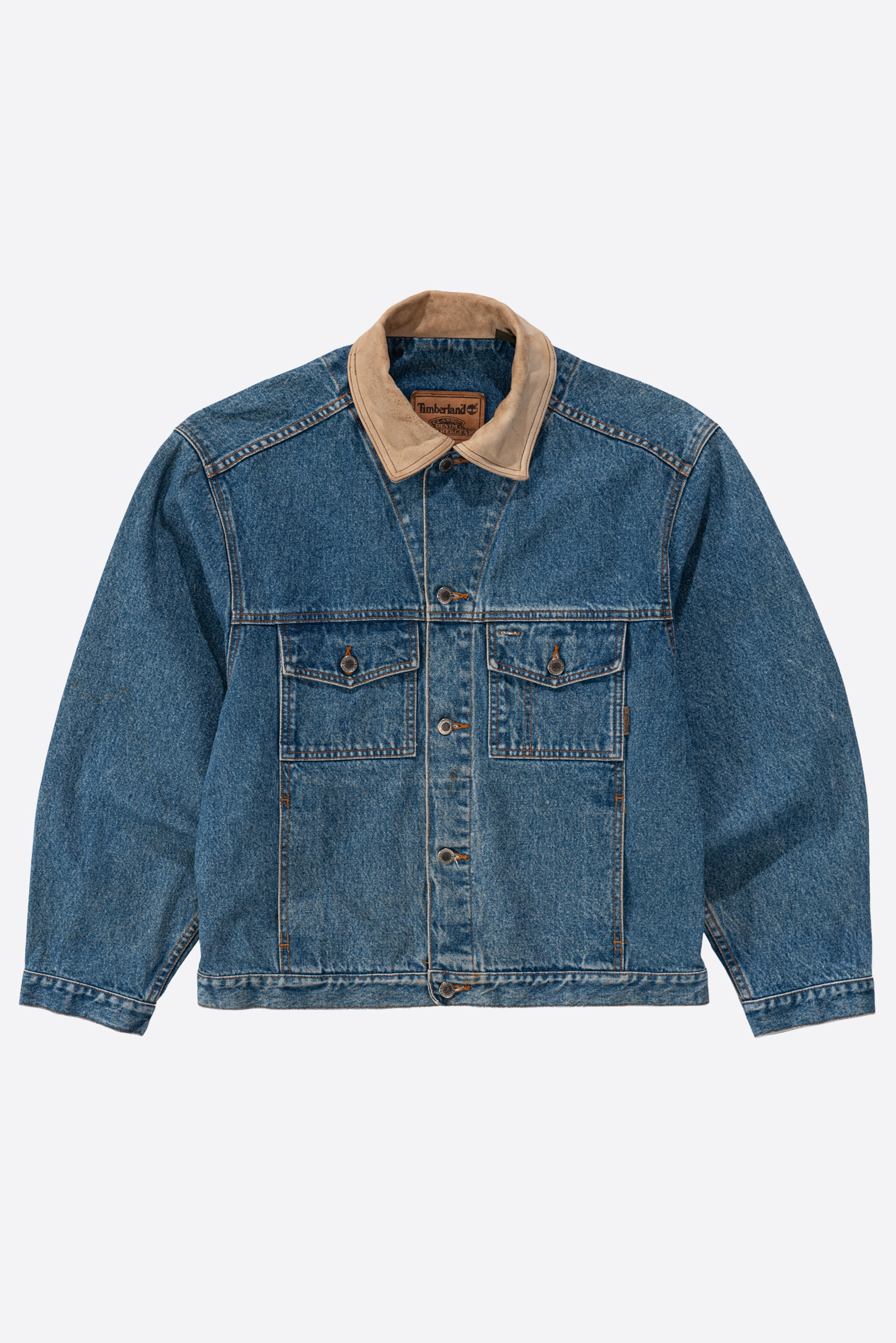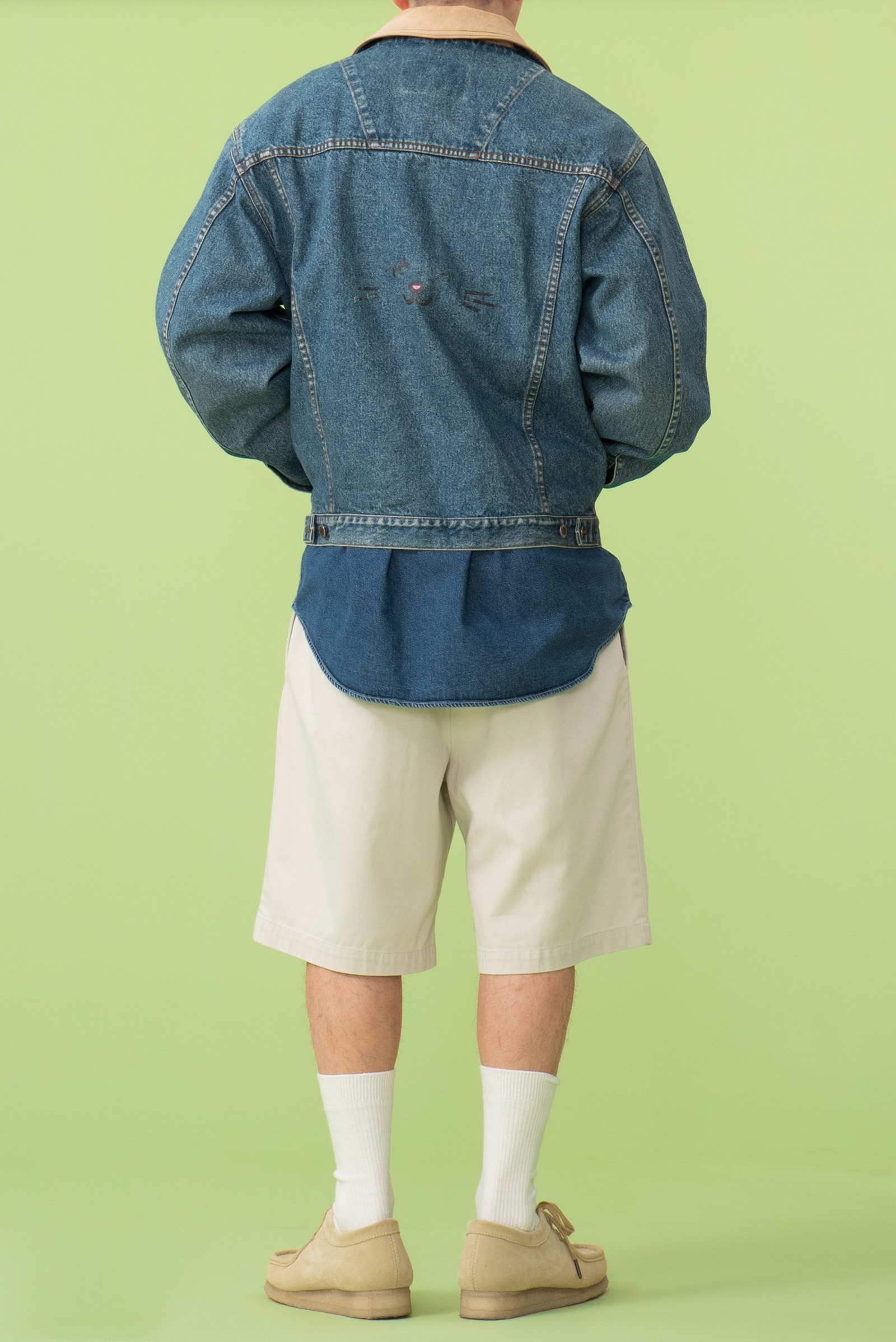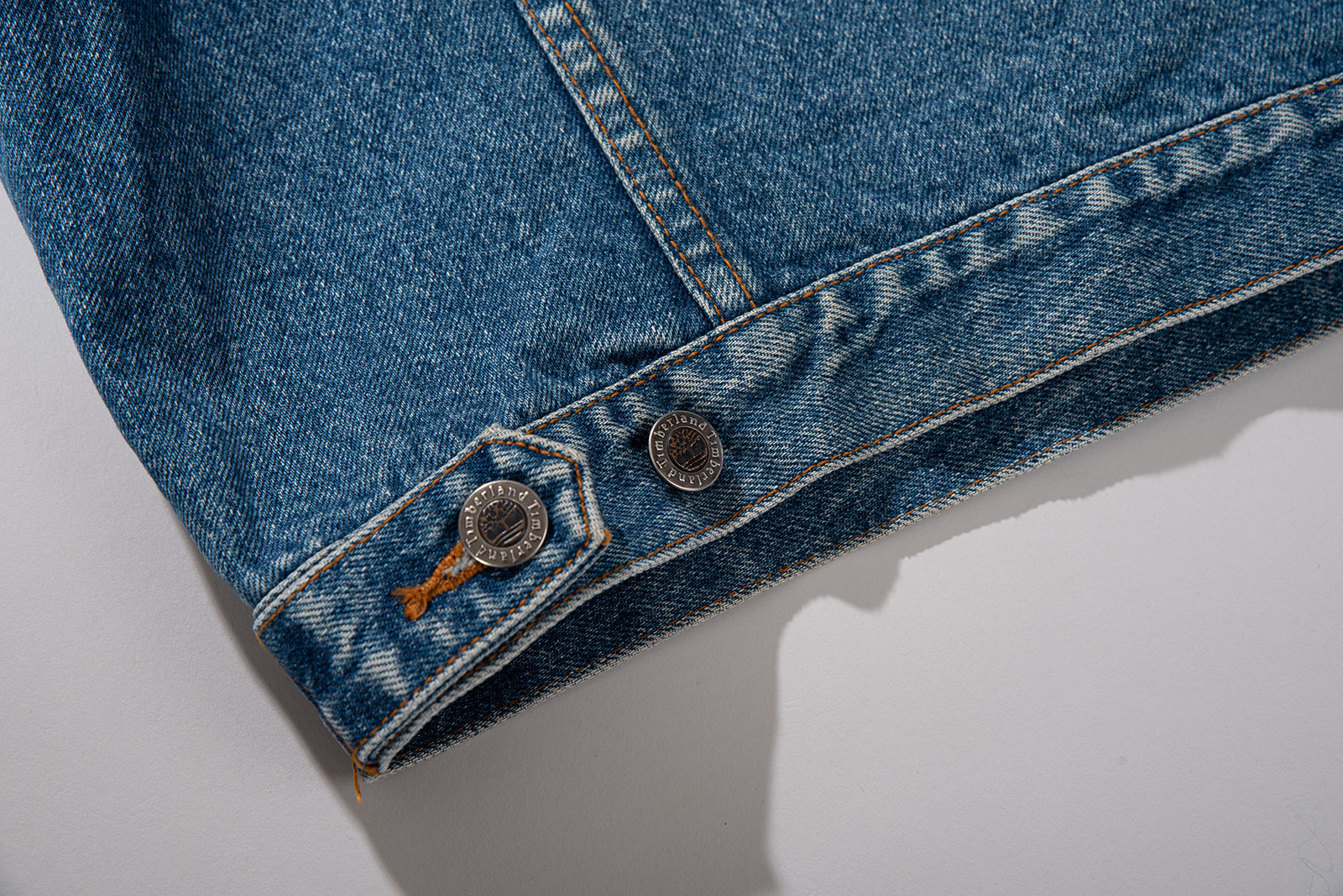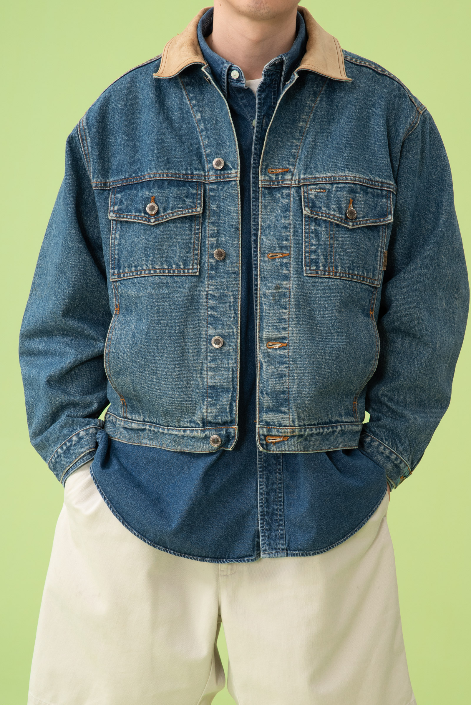 - 90 년대 생산 된 팀버랜드의 트러커입니다. 100% 방수가 되는 아웃도어 부츠로 이름을 알린 팀버랜드의 고유 색상과 이미지에 잘 부합하는 레더 카라넥이 포인트되는 제품입니다. 오버 사이즈로 착용하는 재킷이며 정 사이즈로 착용했을 때 모델과 같은 핏으로 나오는 게 자연스럽습니다. 100 정도 사이즈 추천드립니다.