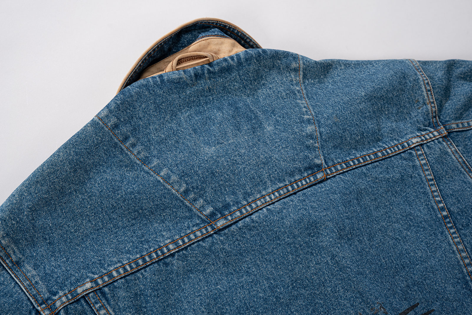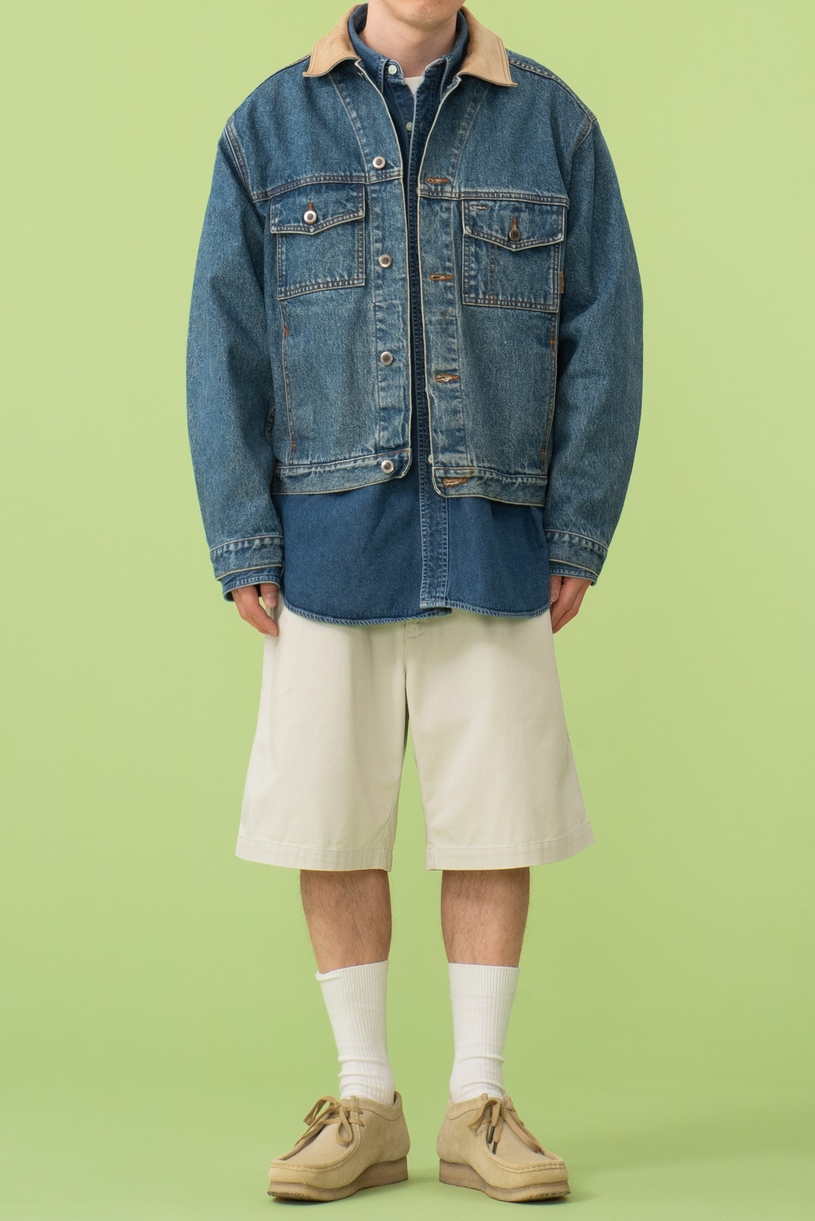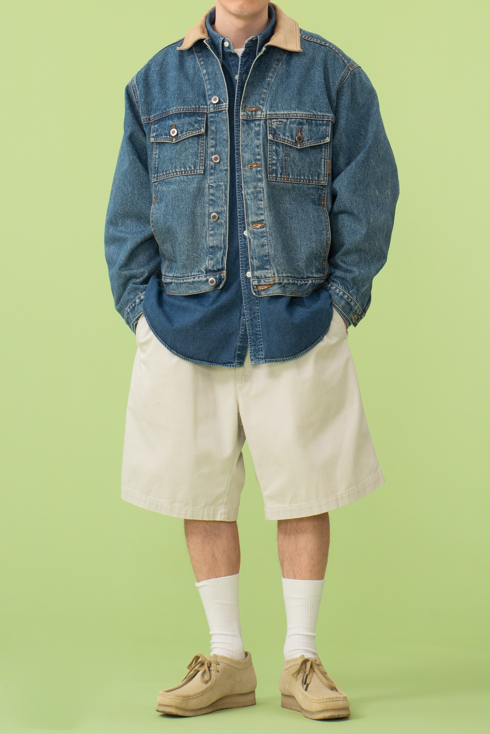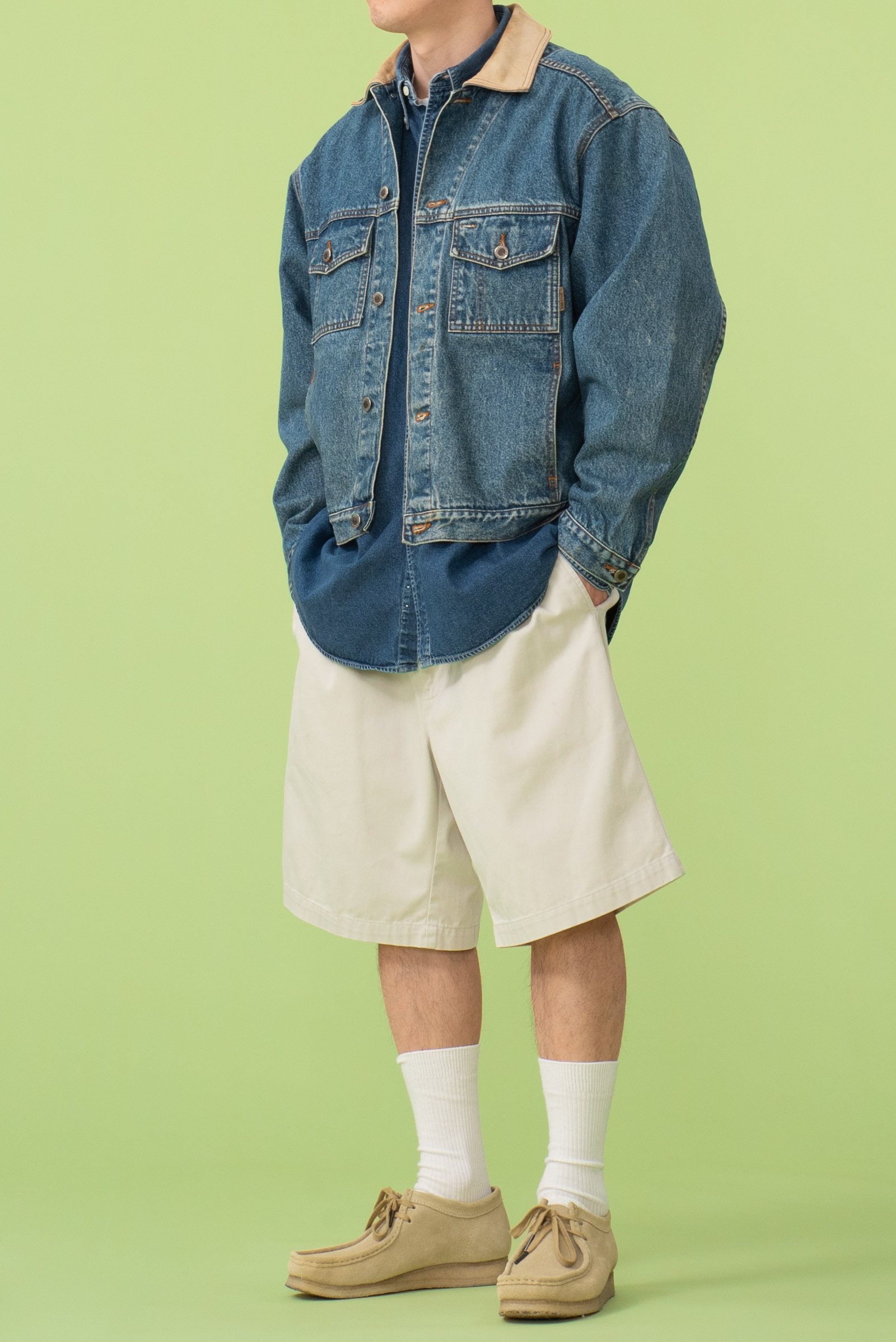 - 90 년대 생산 된 팀버랜드의 트러커입니다. 100% 방수가 되는 아웃도어 부츠로 이름을 알린 팀버랜드의 고유 색상과 이미지에 잘 부합하는 레더 카라넥이 포인트되는 제품입니다. 오버 사이즈로 착용하는 재킷이며 정 사이즈로 착용했을 때 모델과 같은 핏으로 나오는 게 자연스럽습니다. 100 정도 사이즈 추천드립니다.