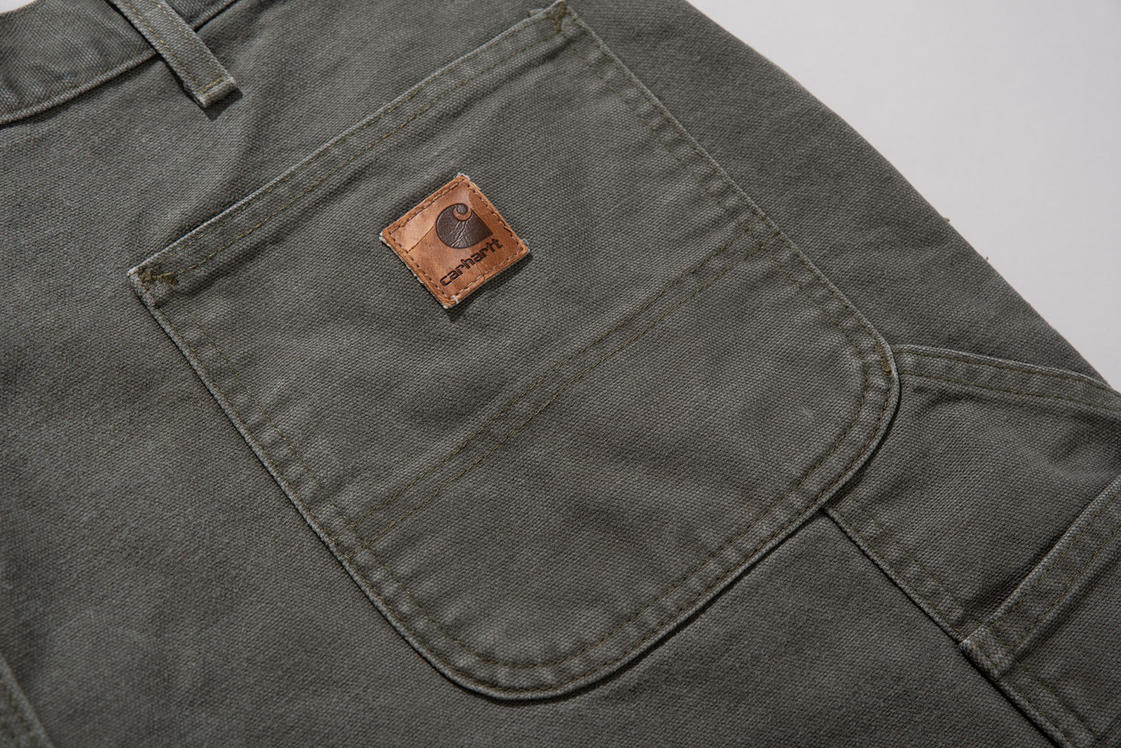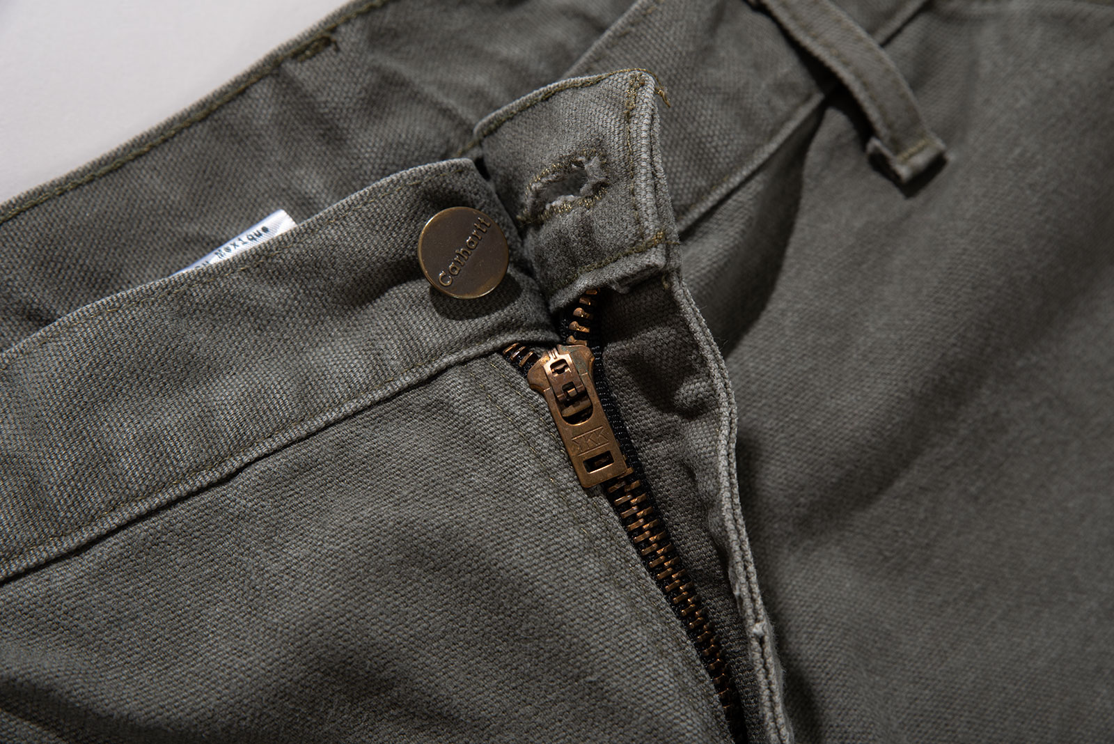 - 각이 잘 잡히는 도톰한 덕 캔버스 원단의 b25 mos 쇼츠입니다. 칼하트 제품 군 중에서 가장 인기 많은 색이기도 하지요.