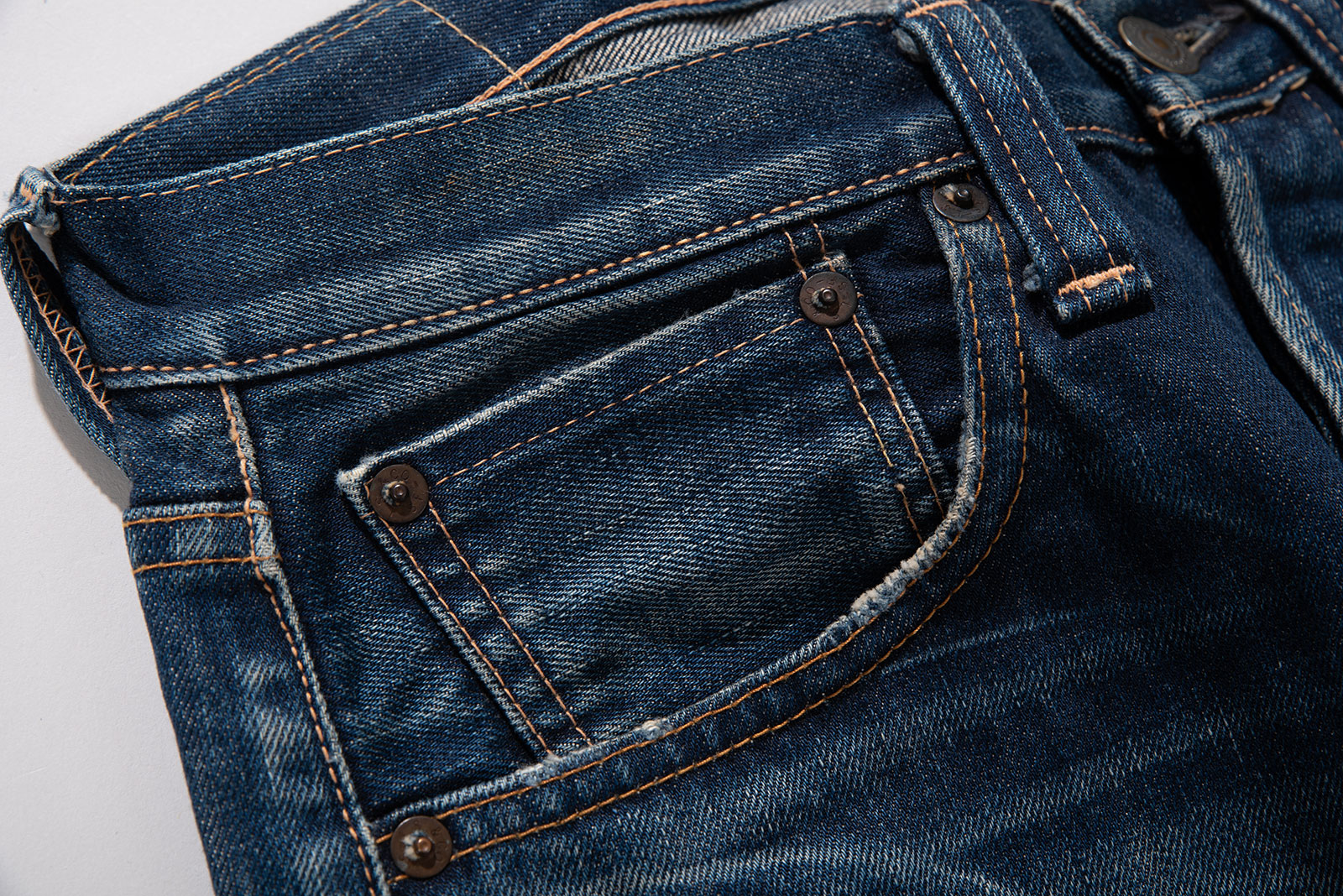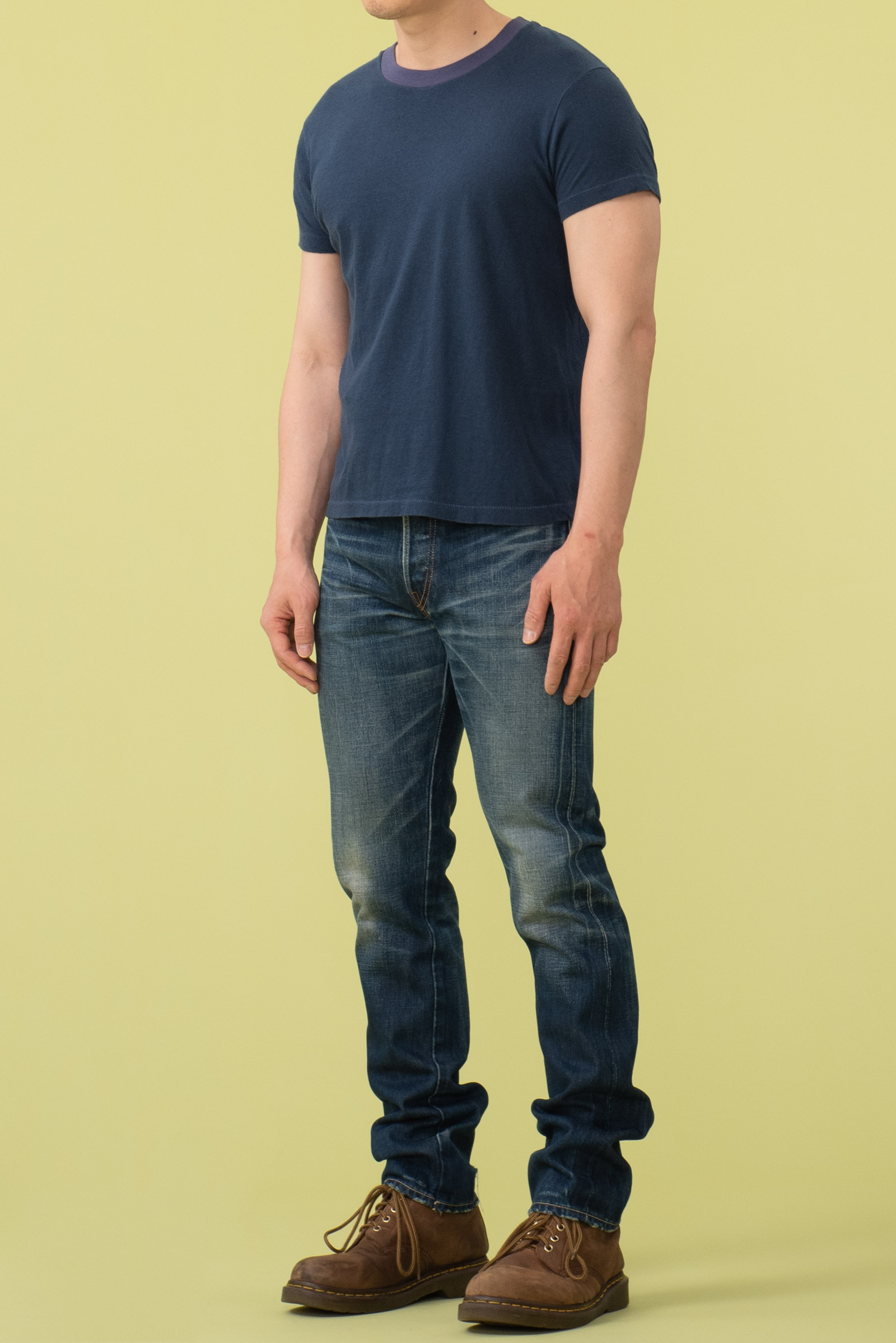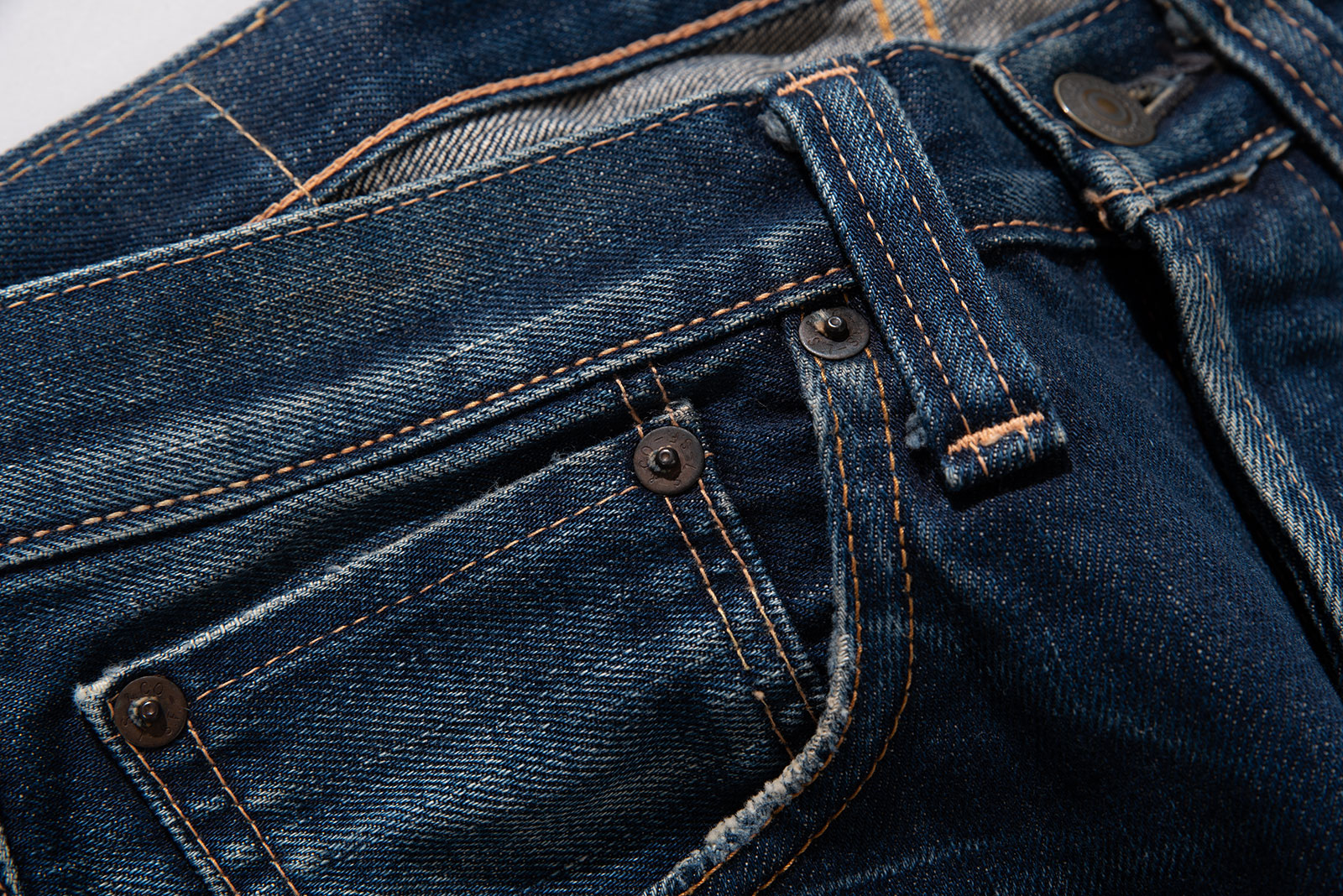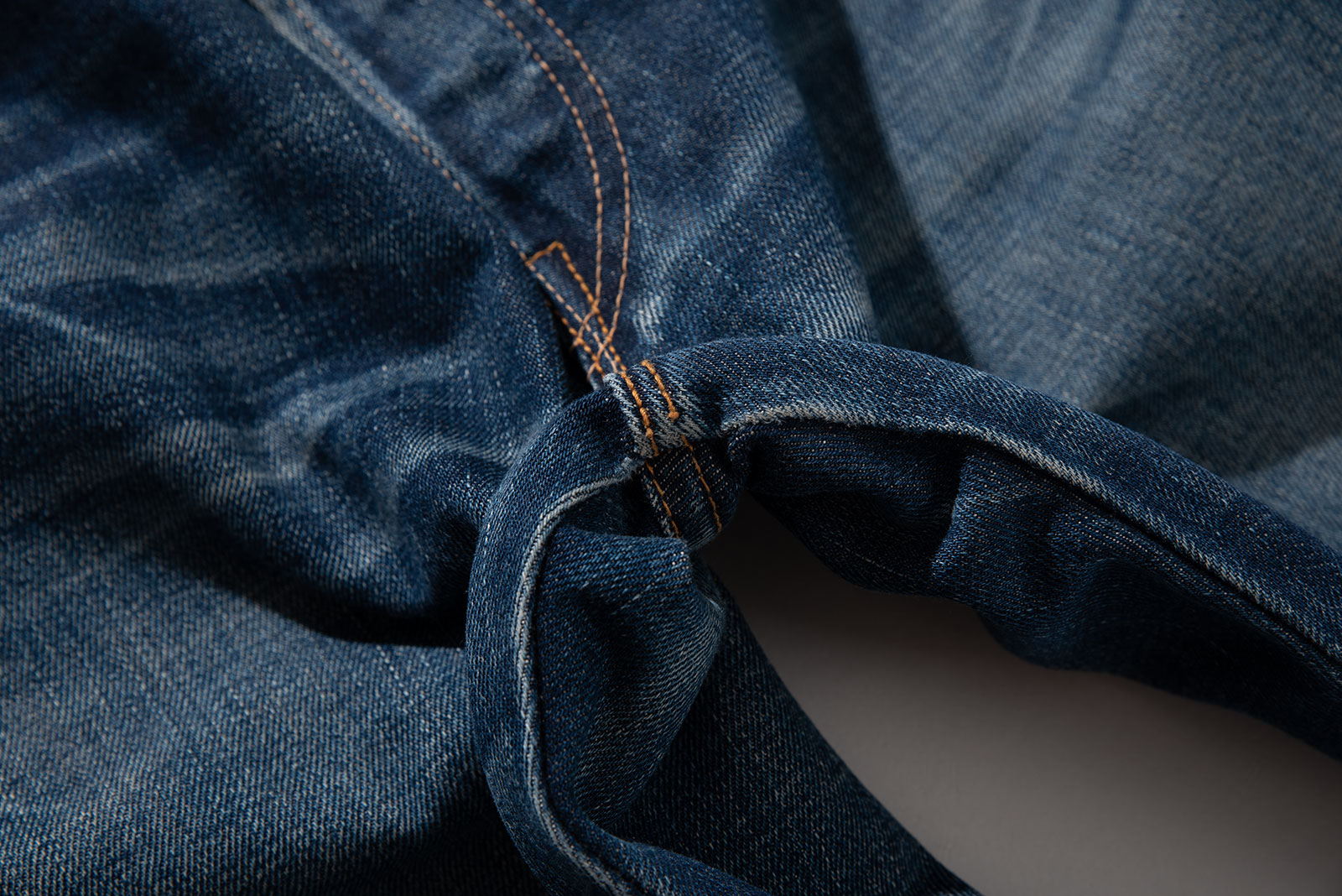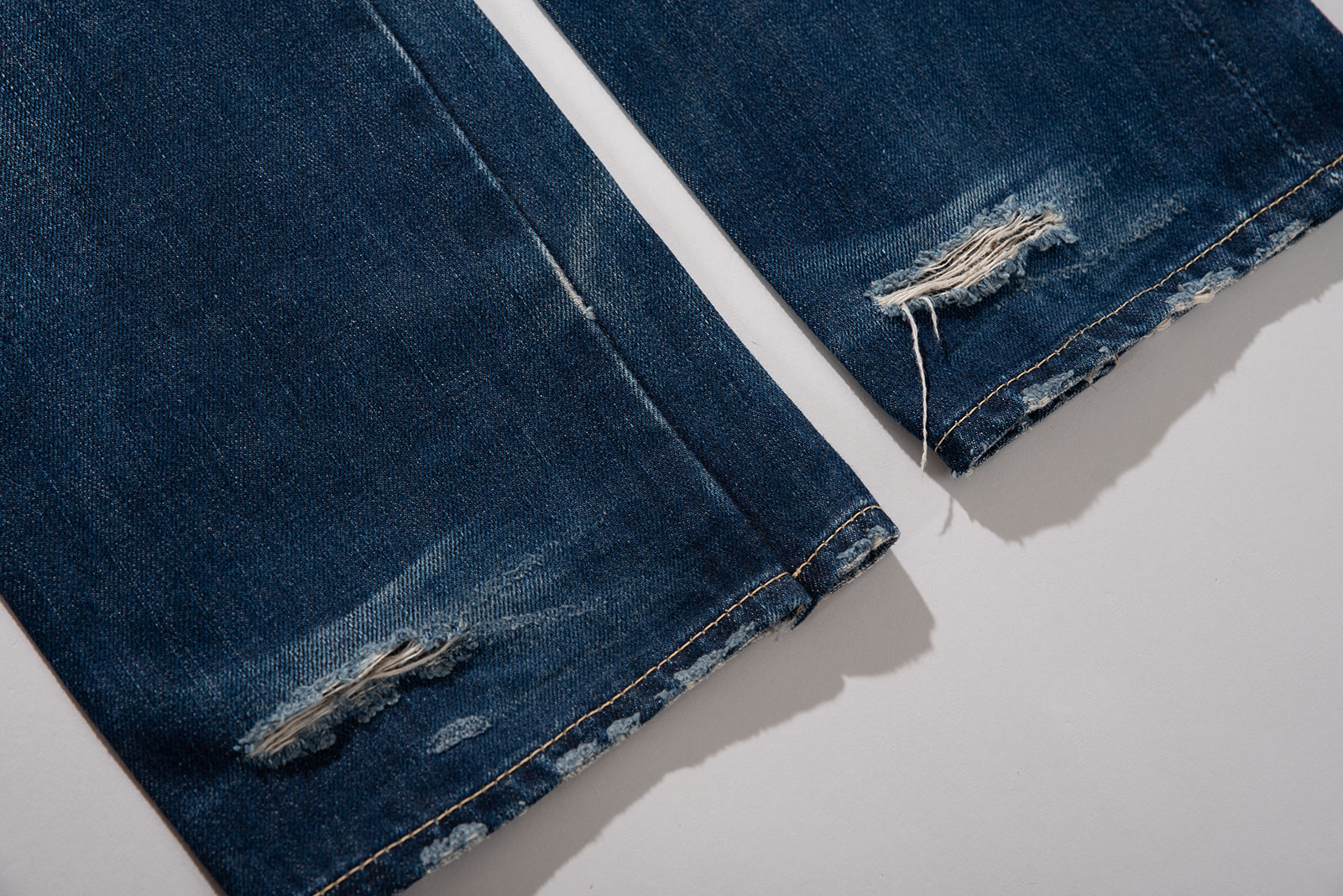 밑단 피니시를 보면 아주 많이 착용한 것 같지만, 이는 의도한 워싱입니다.