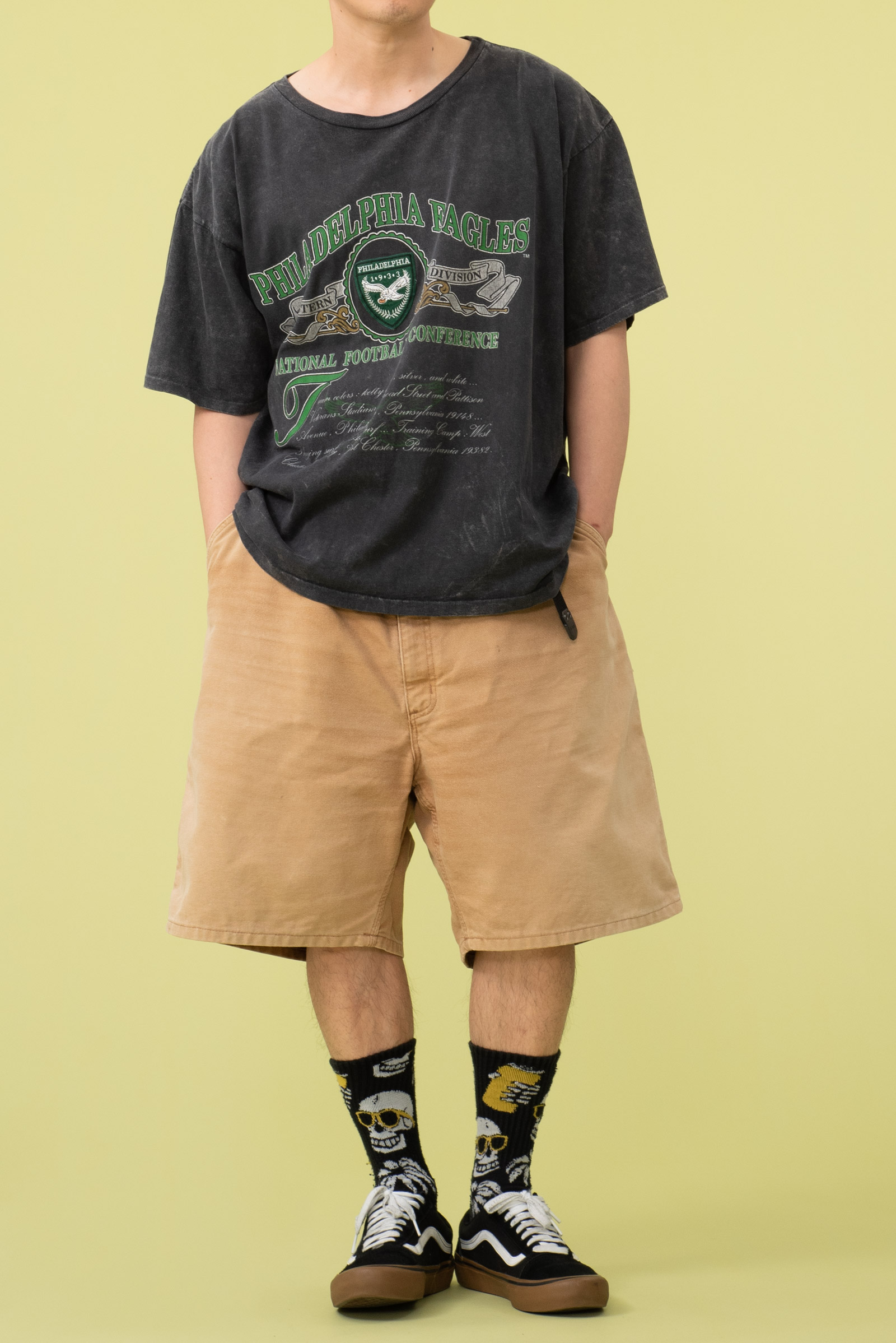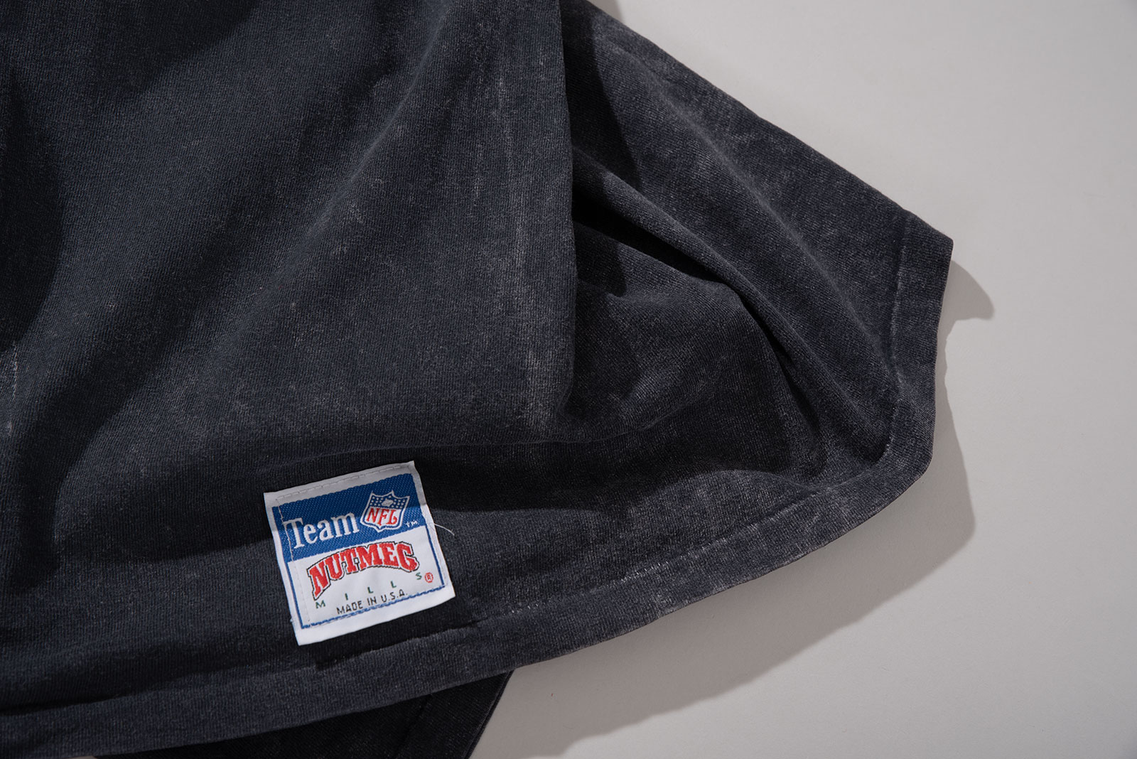 - Nutmeg의 90s NFL 빈티지 팀 히스토리 티셔츠입니다. 필라델피아 이글스 제품인데, 사진으로 보시듯 많이 낡았습니다. 늘어지기도 많이 늘어졌고요.