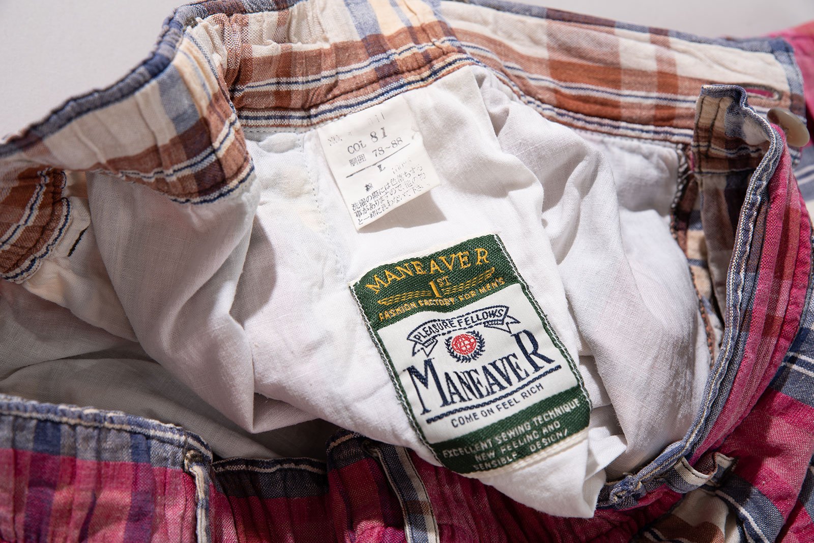 - 90 년대 생산 된 미국 캐주얼 의류 브랜드 Maneaver의 일본 라이센스 리넨 쇼츠입니다. 현재는 발매되지 않는 브랜드로 만듦새가 폴로 못지 않게 좋습니다. 핏도 쌈박하니 괜찮고요.