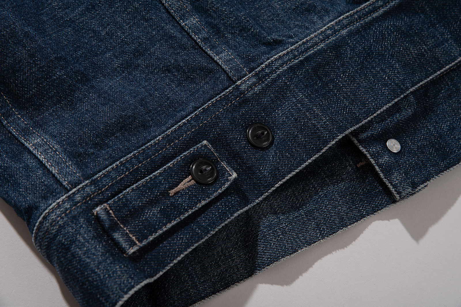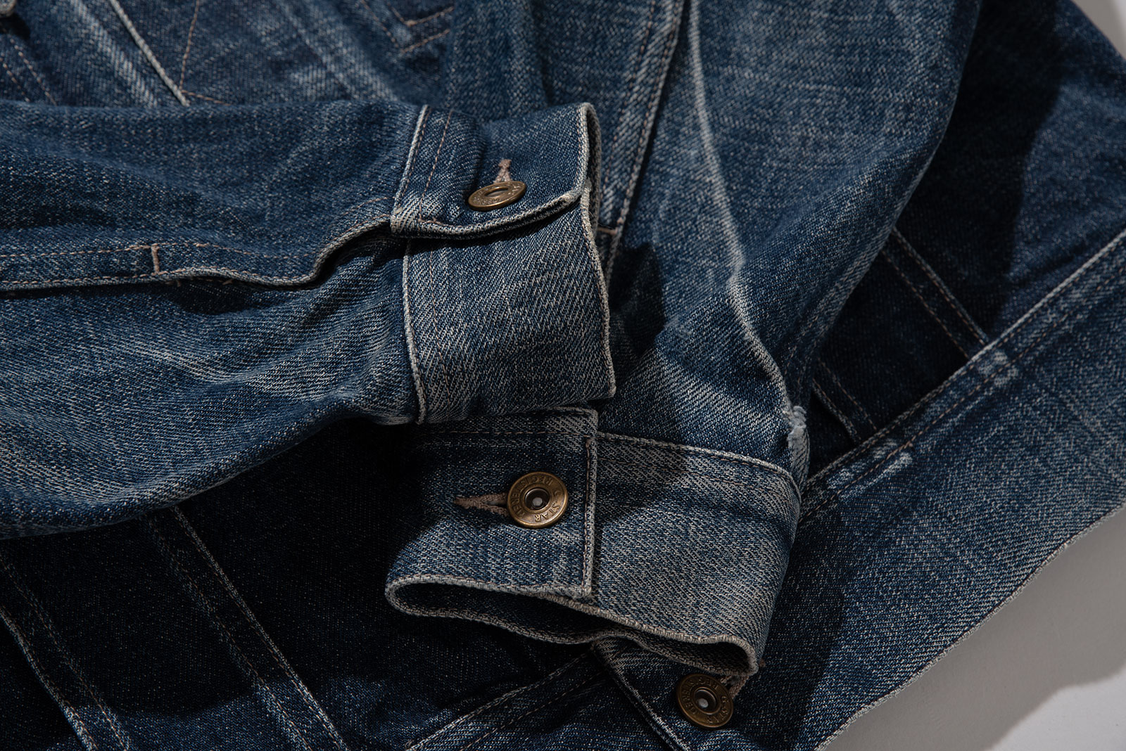 - 전체적으로 페이딩이 잘 났습니다. 어깨에 비해 총장이 짧은 웨스턴 스타일의 오리지널 트러커 형태입니다. 박력있게 스파게티 웨스턴 풍의 아메리칸 캐주얼을 느껴보시길..