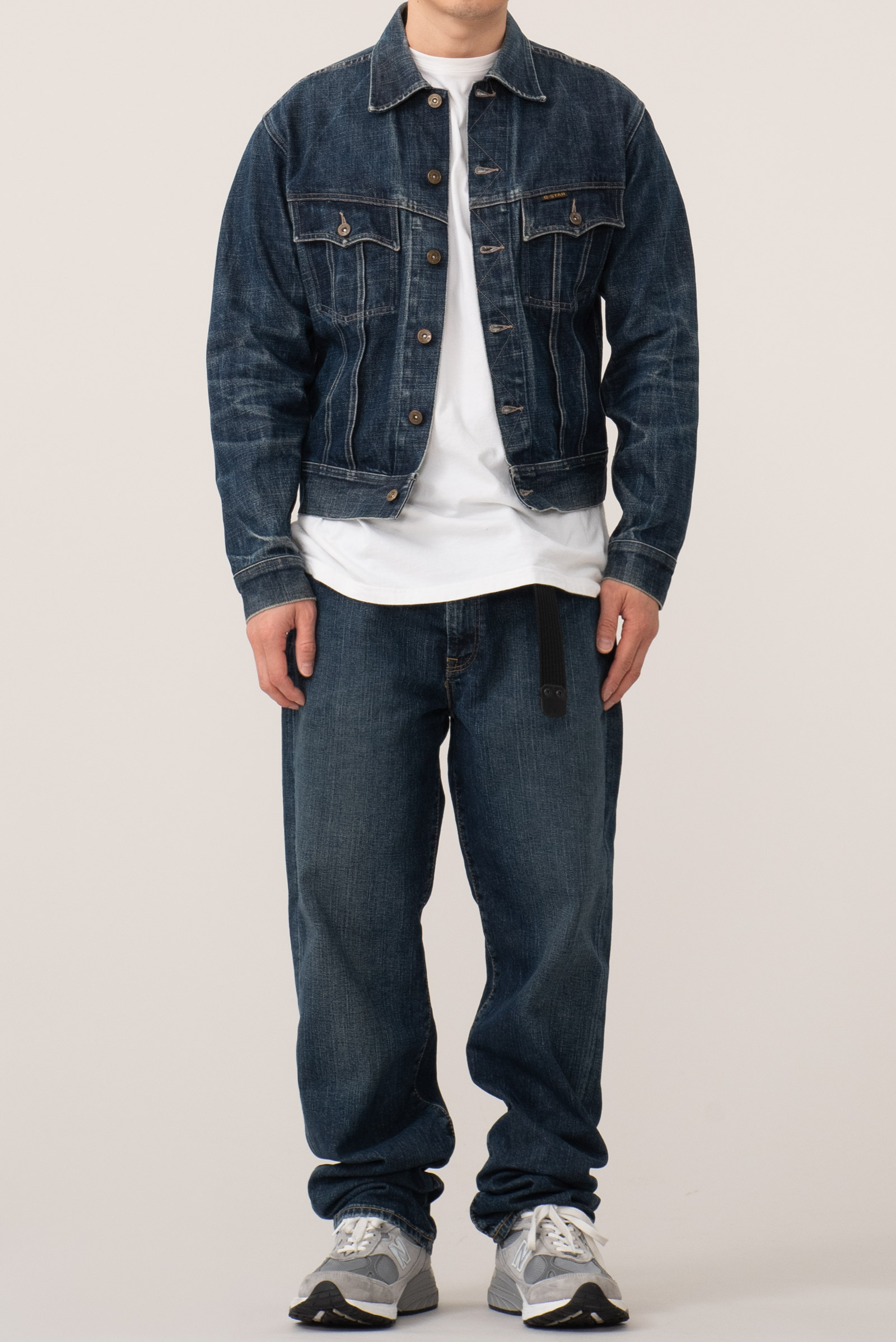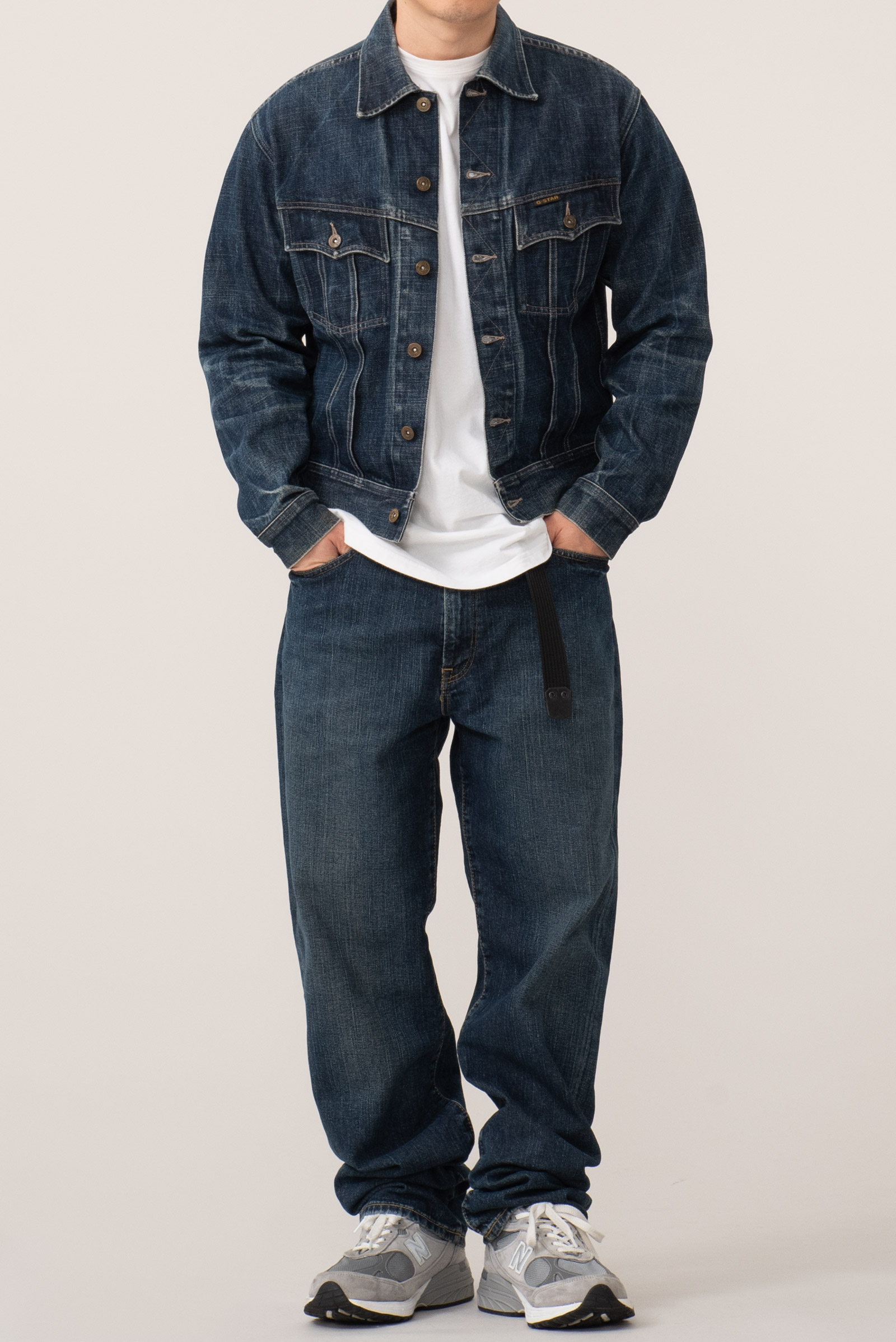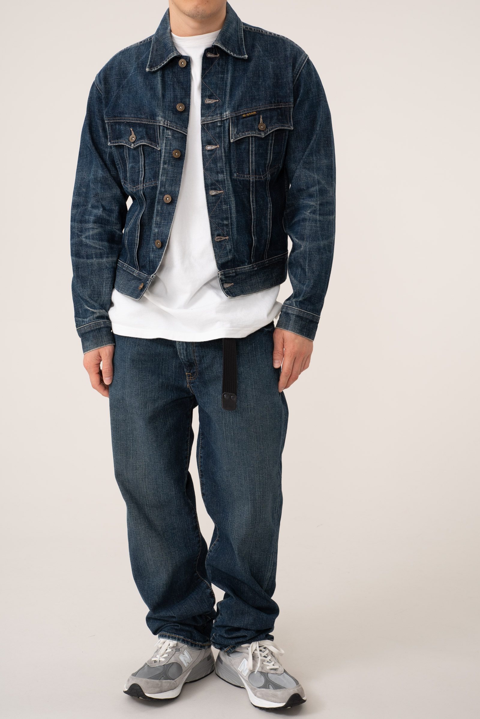 - 90 - 2000 년대 초반에 제작 된 유로판 G-STAR RAW 의 구형 트러커입니다. 사이즈 어저스트의 캣츠아이 버튼이나 정편 투포켓과 물리는 플리츠만 봐도, Lee의 101j를 오마주 한 디자인 임을 한눈에 알 수 있는 제품입니다. 지스타로우치고는 꽤 귀한 디자인이라고 볼 수 있겠네요.