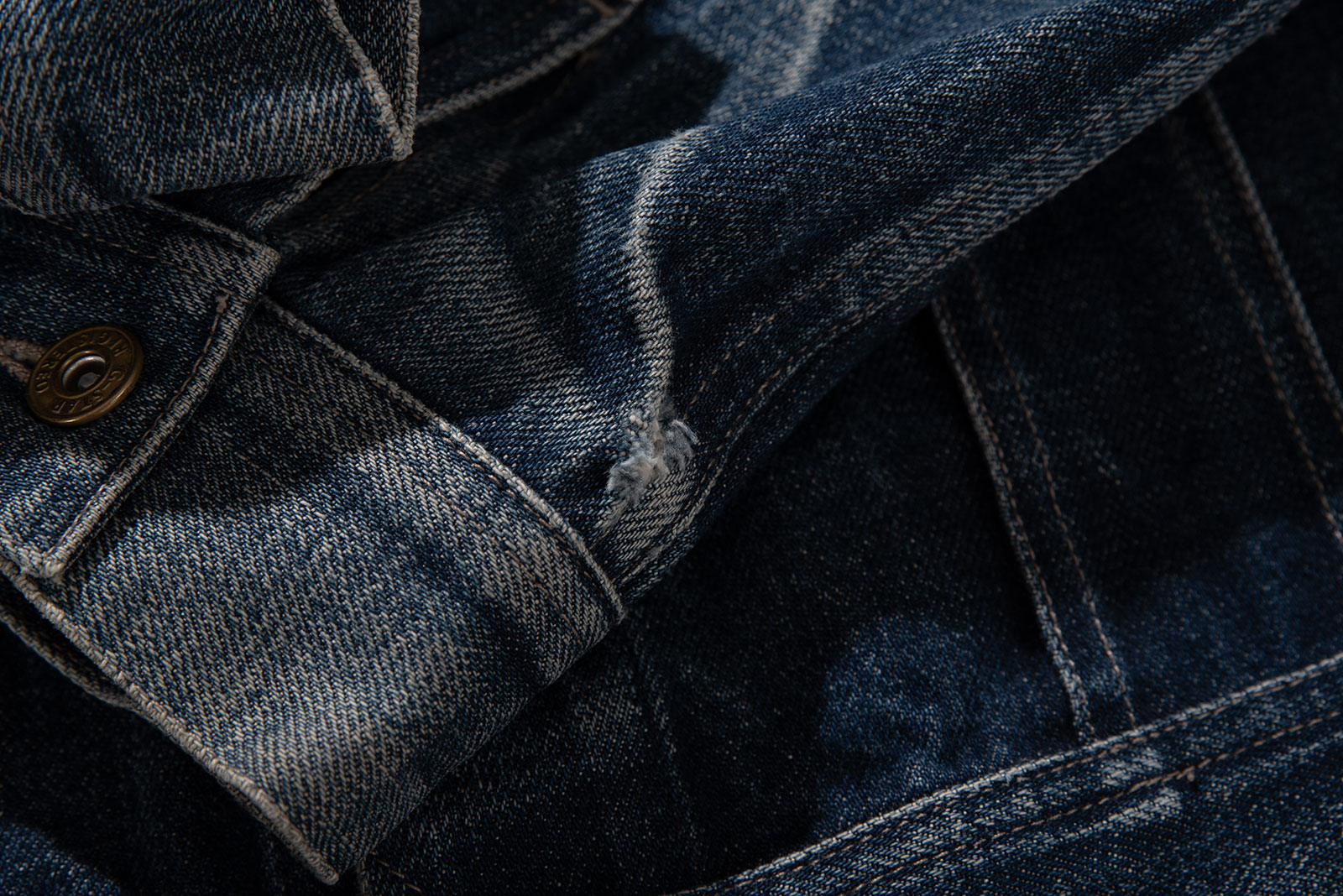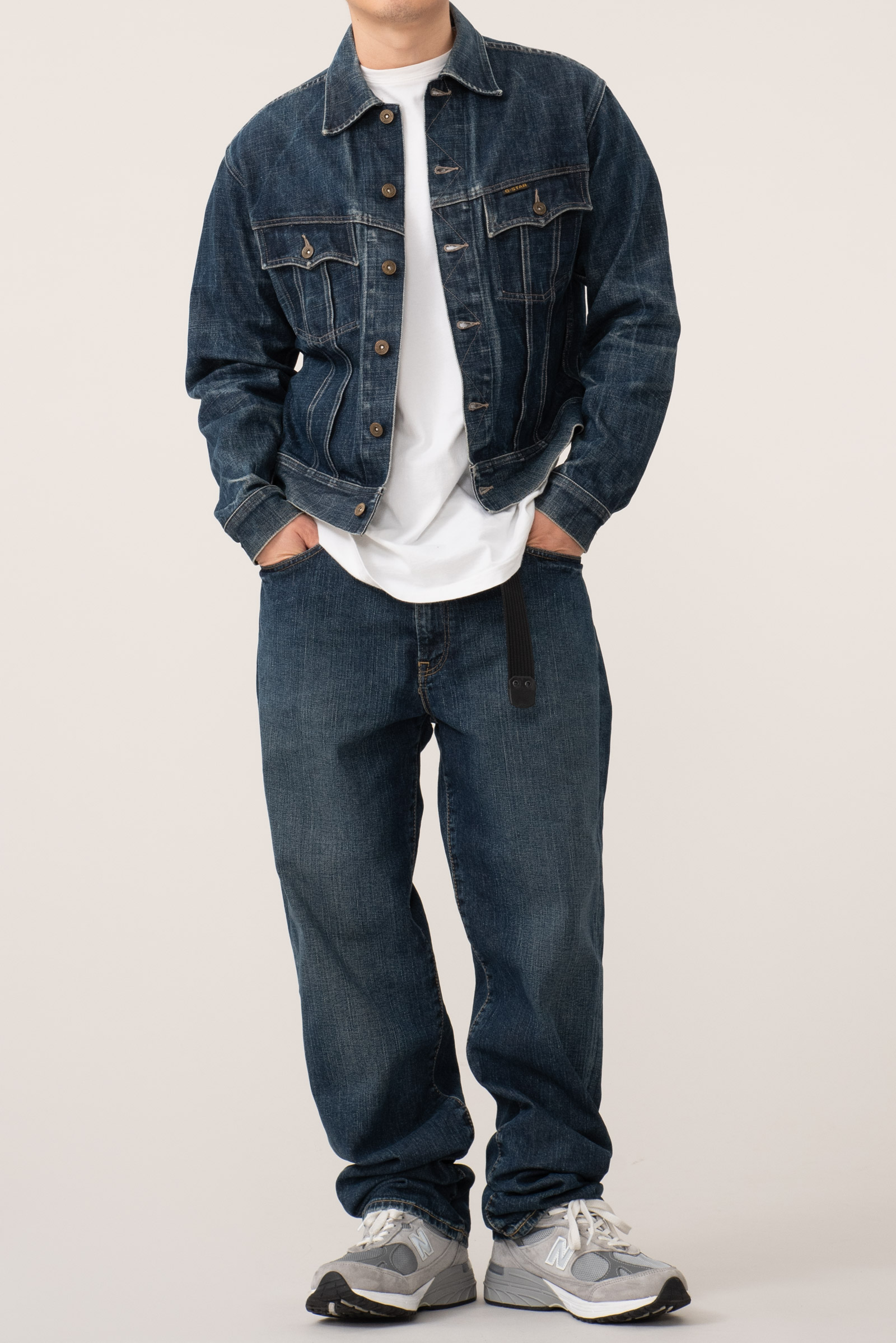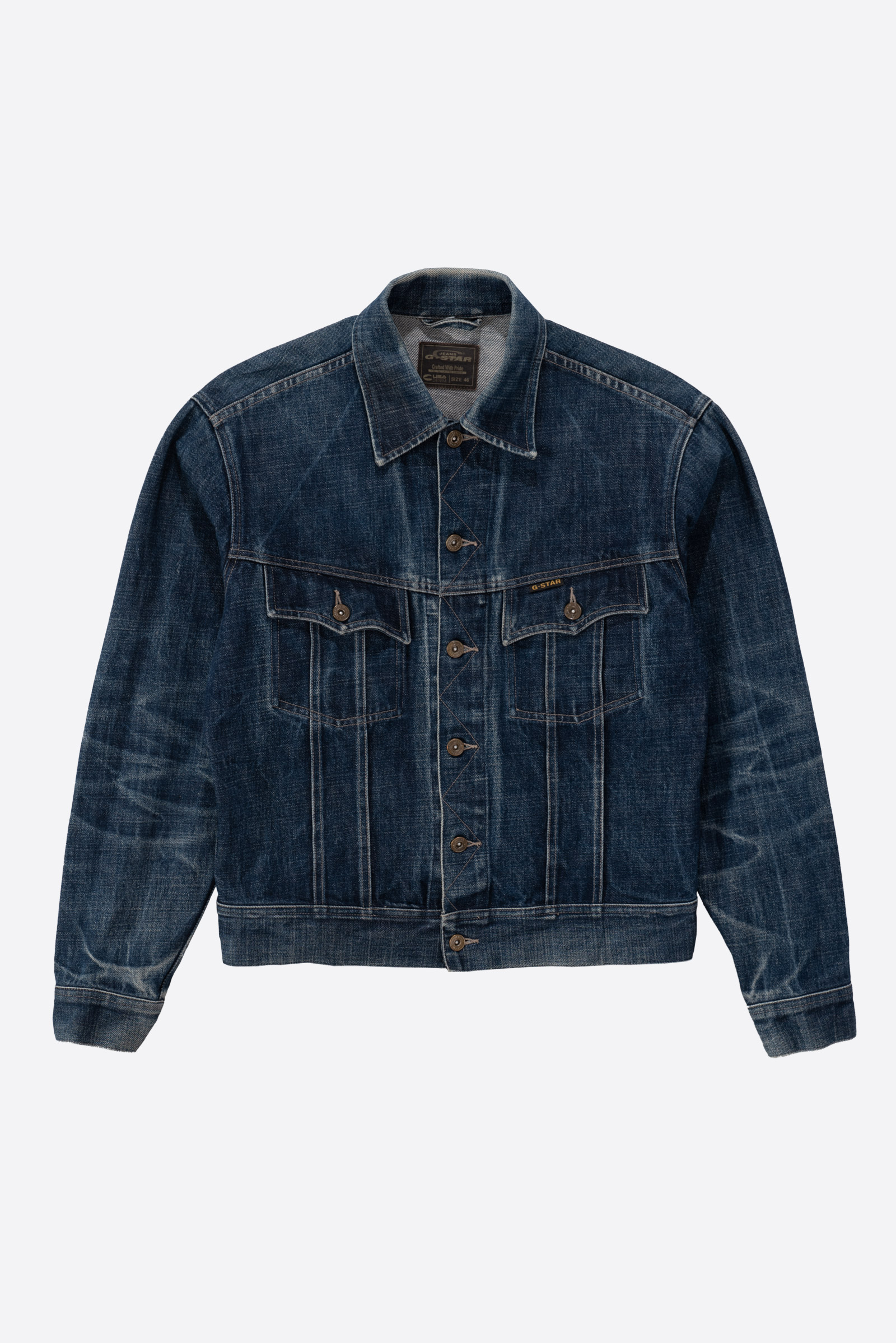 - 90 - 2000 년대 초반에 제작 된 유로판 G-STAR RAW 의 구형 트러커입니다. 사이즈 어저스트의 캣츠아이 버튼이나 정편 투포켓과 물리는 플리츠만 봐도, Lee의 101j를 오마주 한 디자인 임을 한눈에 알 수 있는 제품입니다. 지스타로우치고는 꽤 귀한 디자인이라고 볼 수 있겠네요.