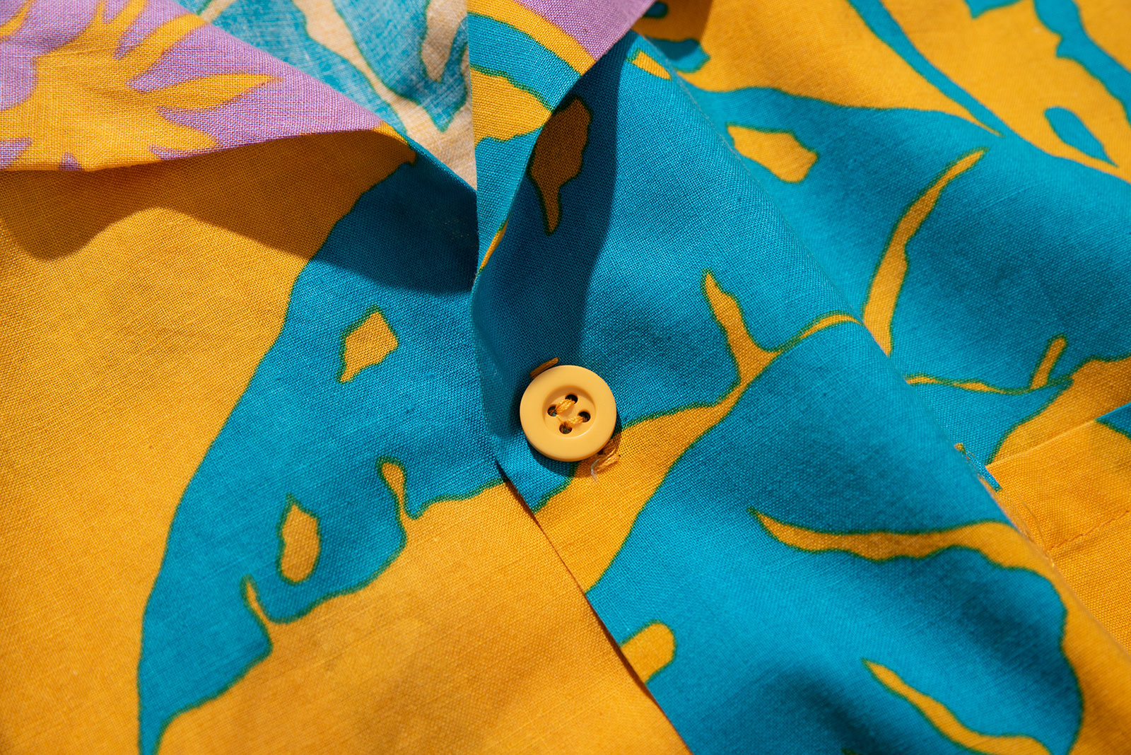 - 하와이의 로컬 브랜드인 COWDEN의 올드 하와이안 셔츠입니다. 패턴하고 색이 아주 상큼하죠?
