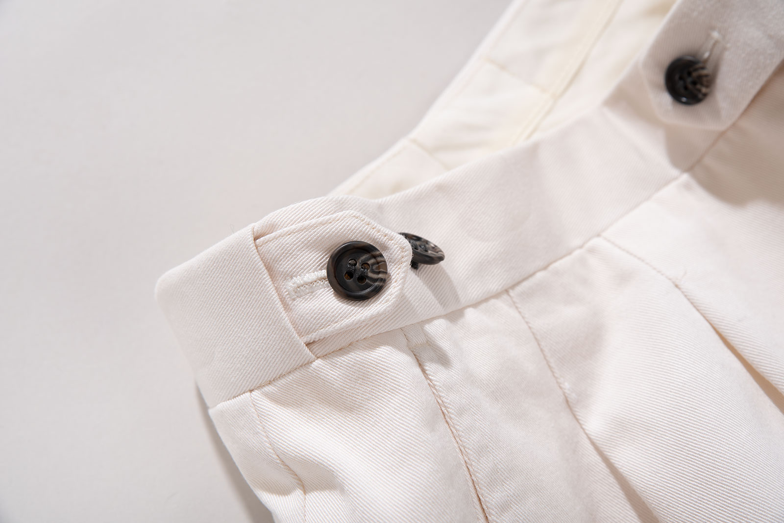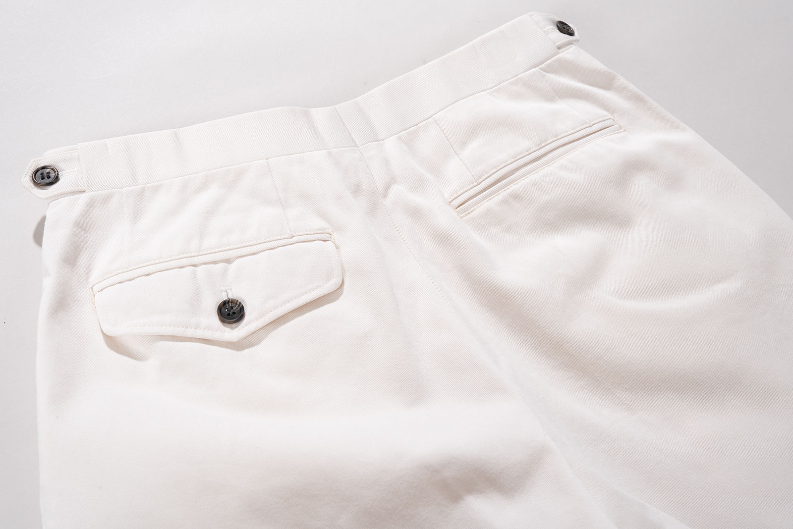 - 일본에서 유통되던 90s 바라쿠타 구르카 쇼츠입니다. 고급스러운 아이보리 컬러에 두툼하고 탄탄한 능직물의 잘 만들어짐이 그대로 느껴지는, 만듦새의 수준 높음을 오감으로 즐길 수 있는 팬츠입니다. 원단도 정말 좋고, 만듦새도 정말 좋고, 원단 퀄리티도 정말 좋습니다. 뭐 좋다는 말 말고는 딱히 떠오르는 게 없을 정도로, 기본에 아주 충실한 제품이네요. 굳이 기교가 필요없는, 기본이면 다 되는, 그런 바지입니다.