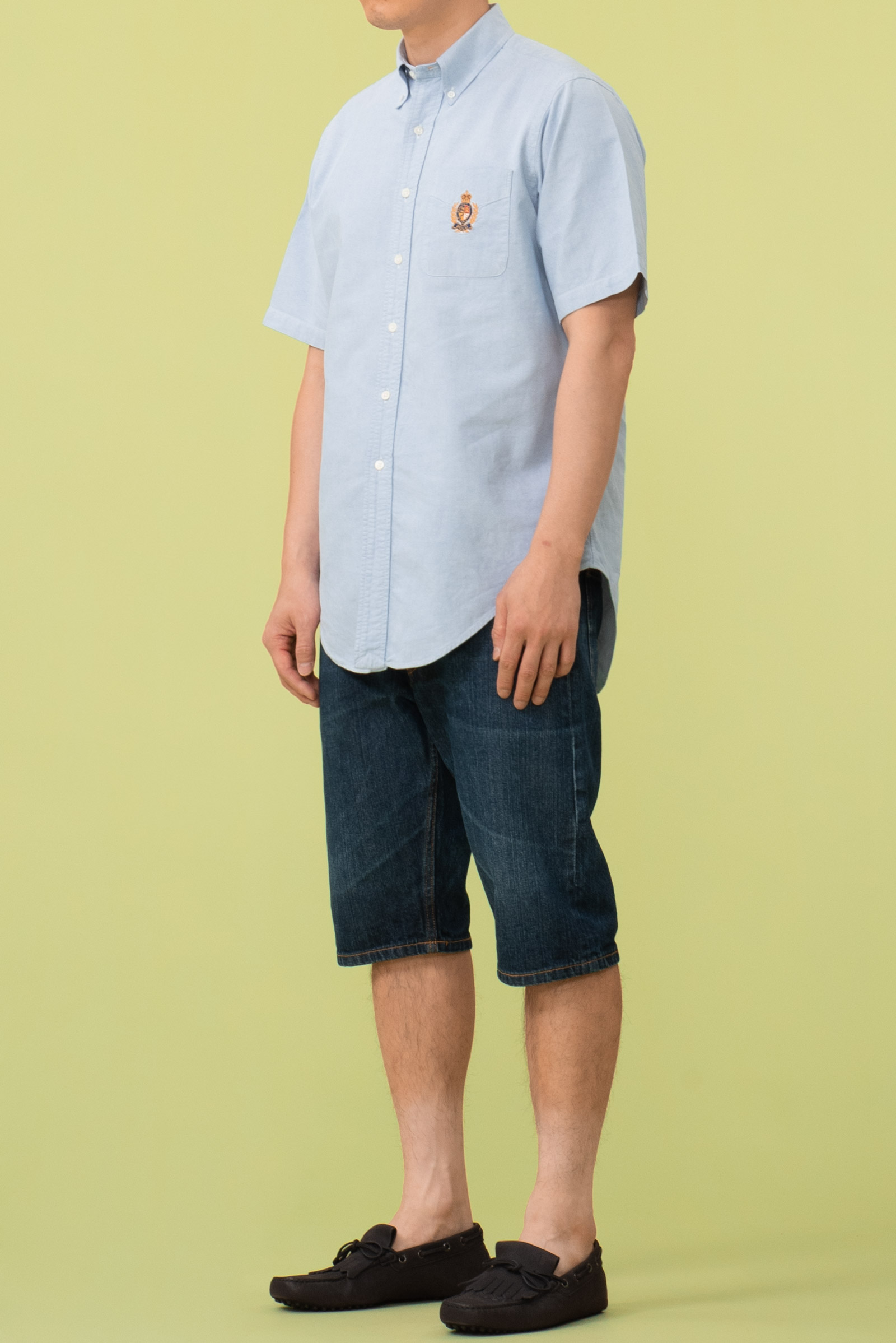 - 일본에서 생산 된 빔즈의 데님 쇼츠입니다. 그냥 평범한 스타일의 바지에요. 정 사이즈로 입으면 모델이 착용한 것 보다 좀 더 끼겠죠? 약간...디자이너 선생님 스타일의 반바지입니다. 챙이 짧은 페도라쓰고 고운 말 쓰고...뭔 말인지 아시죠?