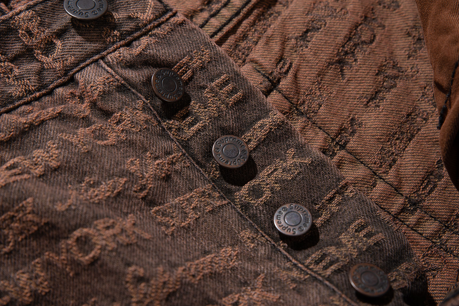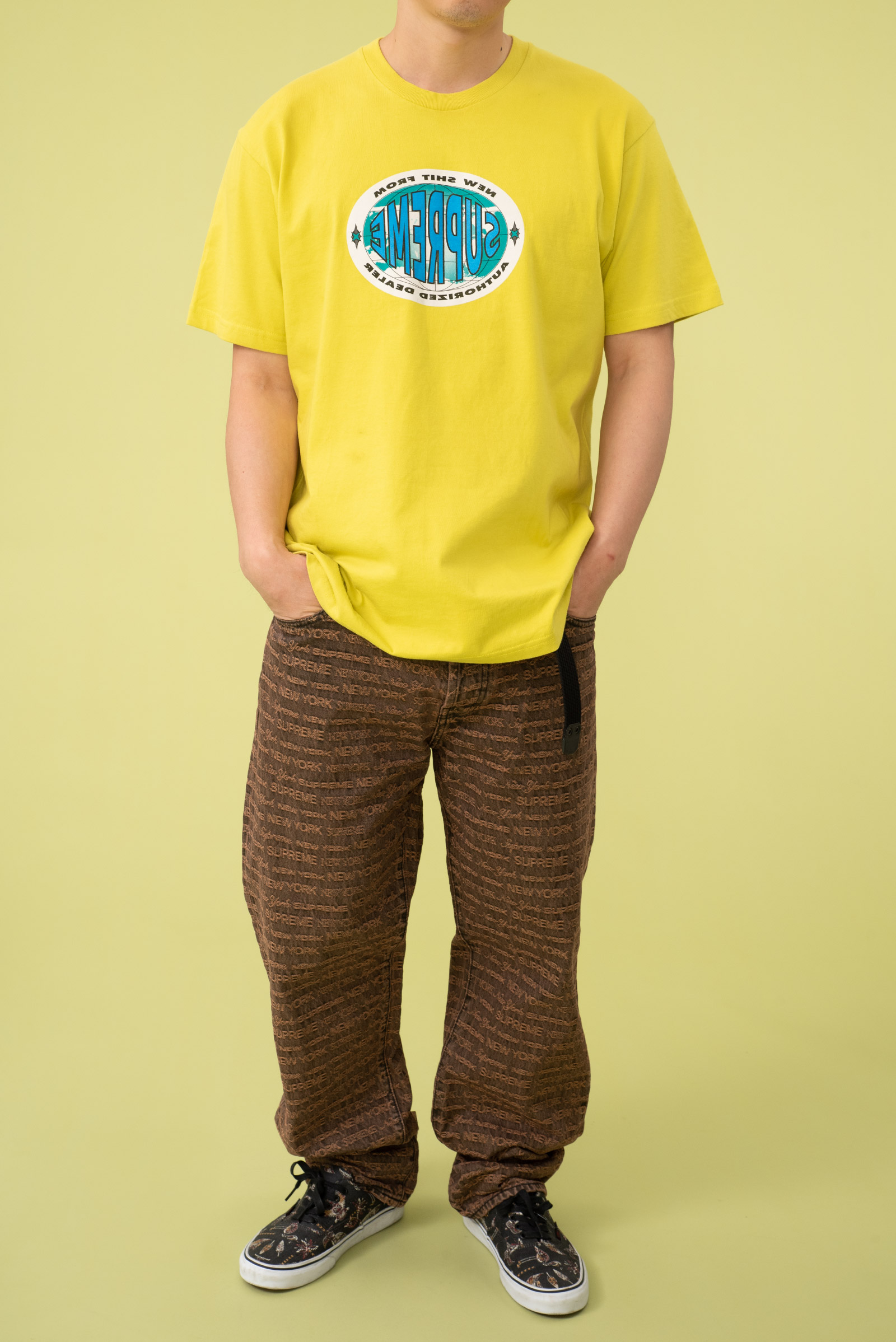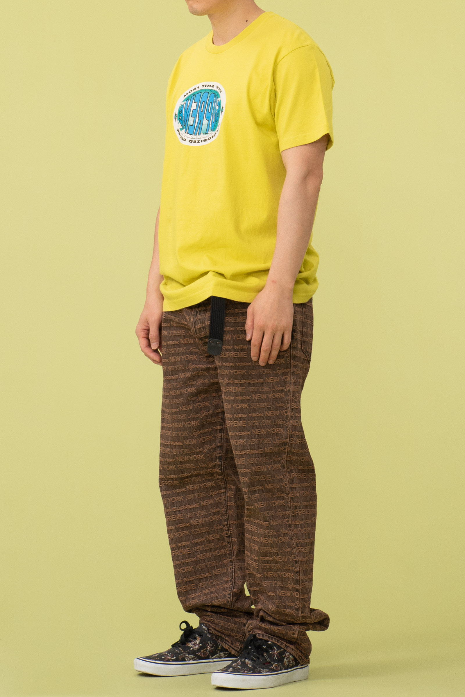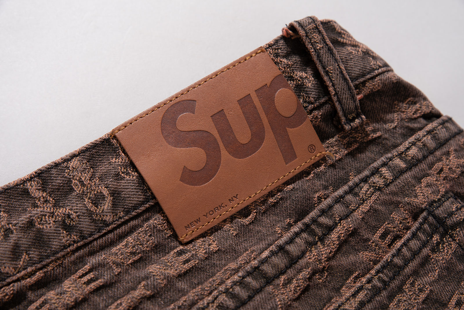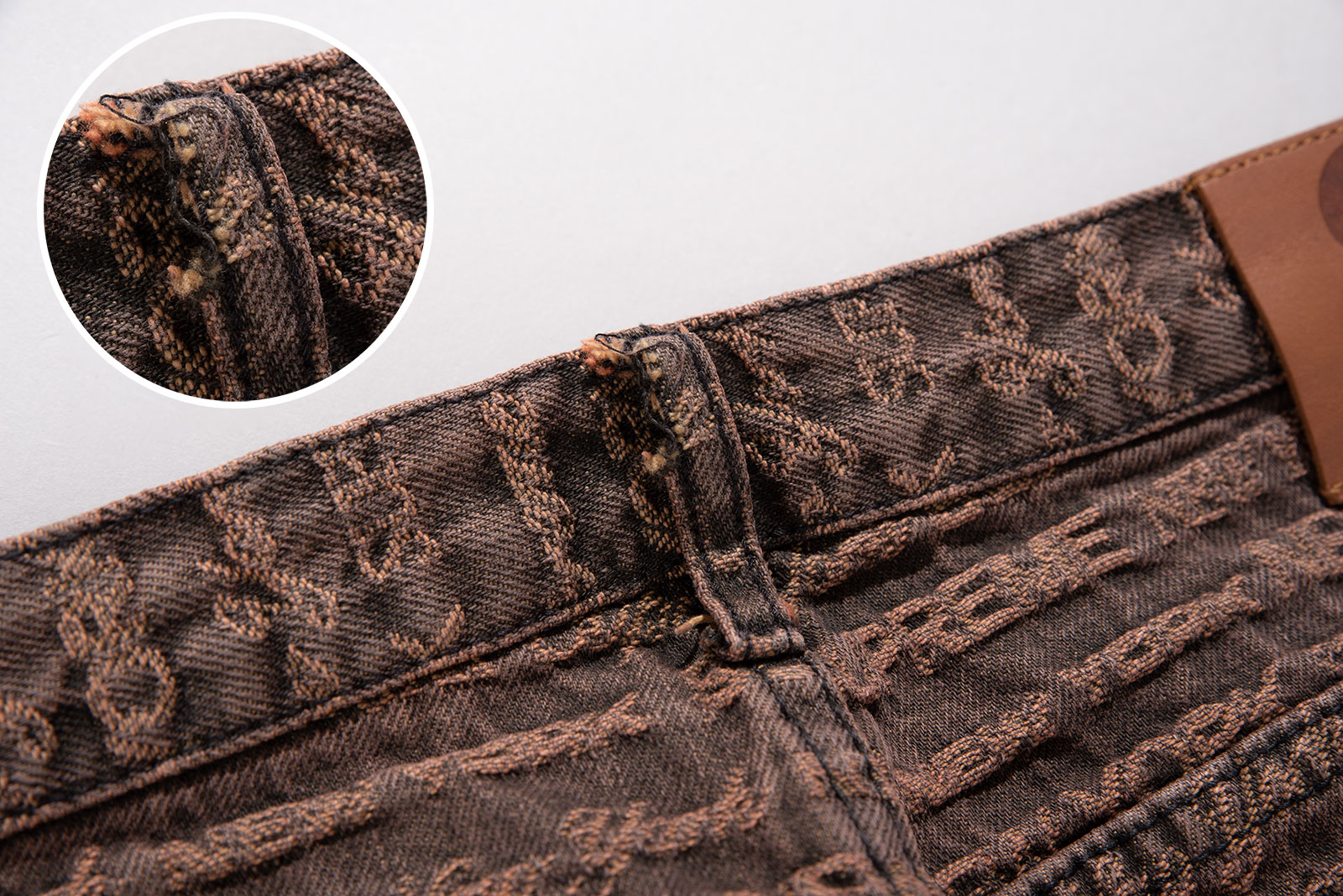 - 22FW 발매 된 슈프림의 멀티 타입 자카드 레귤러 진 브라운 컬러입니다. 구하기 힘든 34 사이즈로 오버 사이징하기 좋은 실루엣 연출되는 제품입니다.