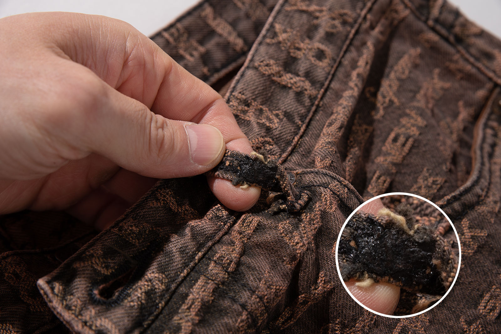 - 적당한 사용감있습니다. 엠보 워싱의 단점인 것 같습니다만, 벨트룹이 얇으니 이 쪽으로 해서 찢어졌다 붙인 흔적이 있습니다. 정면 한 곳이 그렇고, 촬영한 나머지는 사용감이 느껴지는 편입니다.