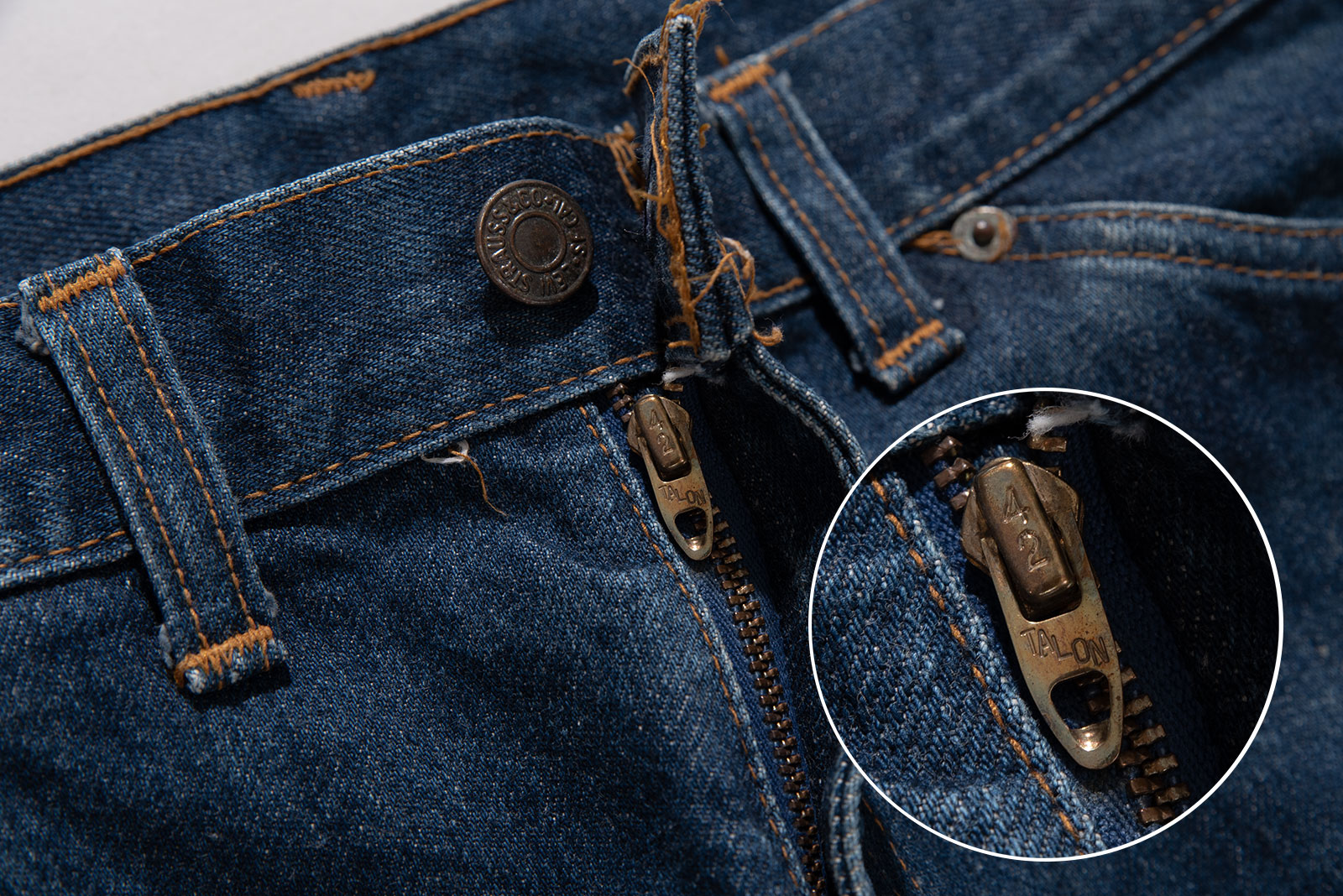 - 탈론 짚이 사용된 빈티지 제품입니다. 사용감이 있고 잘 낡았습니다. 커트코베인 스타일에 잘 어울릴 법한 느낌의 핏입니다. 잘 좀 연출해주시길.. 허리에 비해 허벅이 좁은 편이라 정 사이즈 착용이 어렵지 않을까 생각해 봅니다.