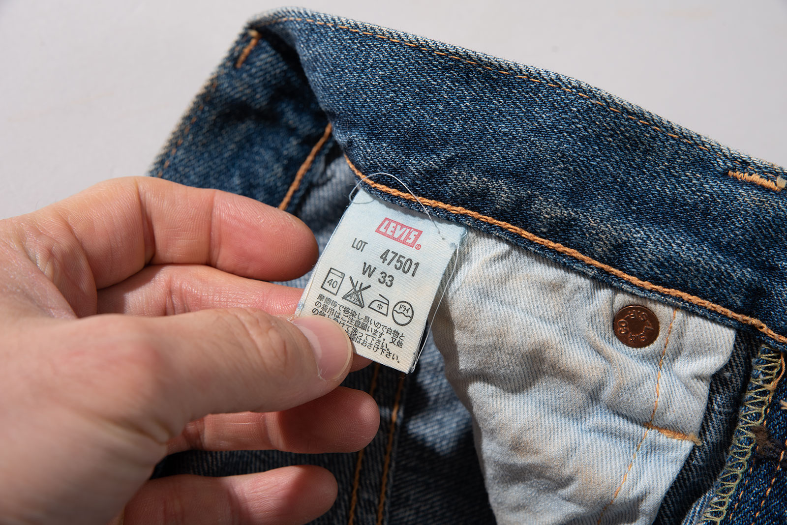 - 글로벌 LVC의 탄생 배경엔 일제 LVC가 있었죠. LVC의 조상격이라 할 수 있는 일제 LVC의 47501 워싱진입니다. 표기 33W인데, 죽었다 깨나도 33인치는 못입는 바지입니다.