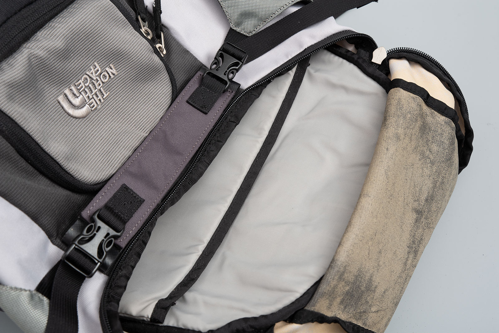 - 국내 매장판 더 노스페이스의 구형 백팩입니다. 우주선, 혹은 3단 보온밥통을 닮은 통짜형 몸매가 풍만하게 도드라지는 볼륨감있는 실루엣의 백팩입니다. 남성 여성 가릴 것 없이 무난하게 잘 어울릴 사이즈이며 재킷으로 나왔으면 단번에 품절 걸렸을 심플하고 확실한 색조합이 매력적인 제품입니다.