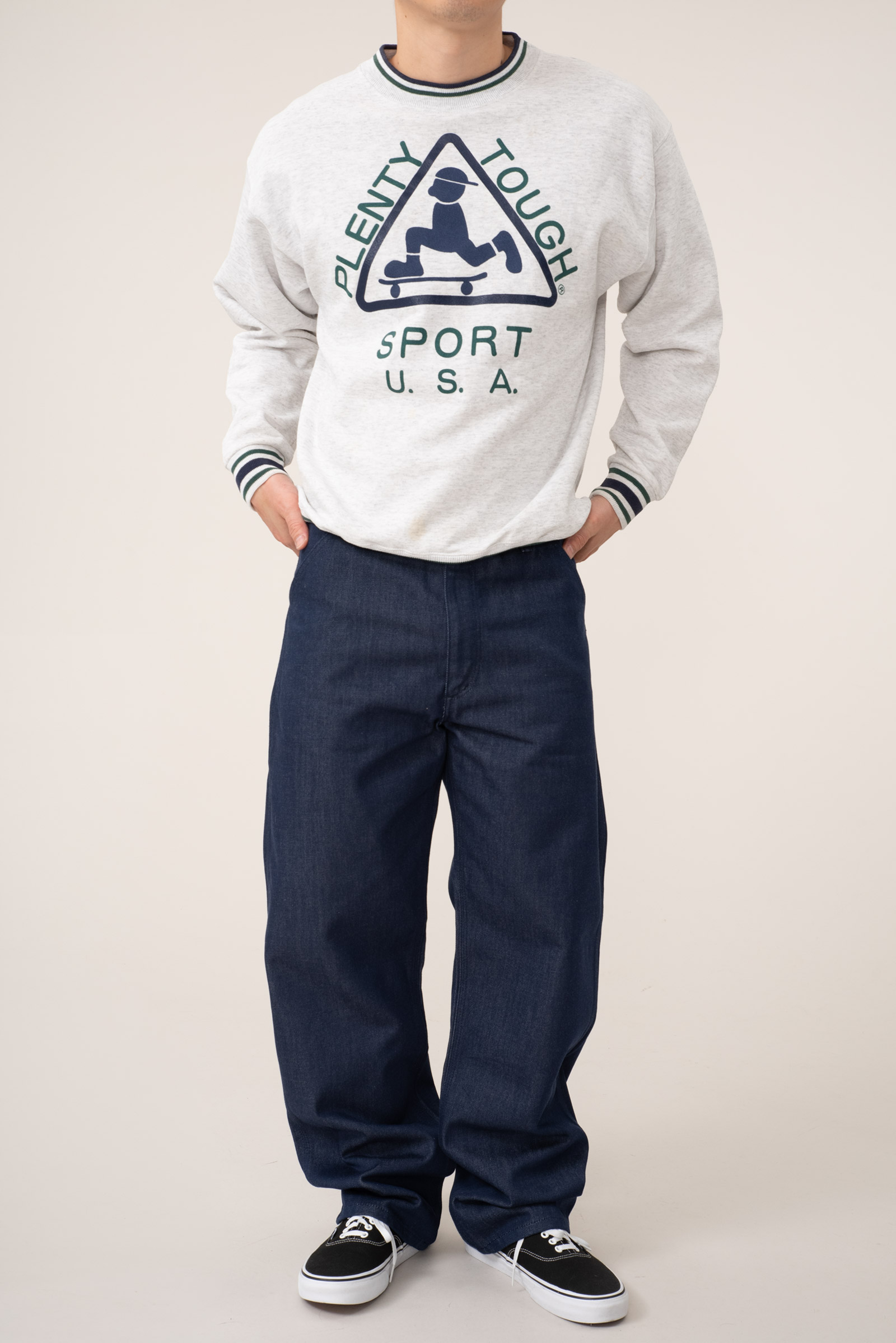 - 74 년 설립 된 미국의 스포츠웨어 브랜드 플랜티 터프 스포츠의 빈티지 맨투맨입니다. 운동에 대한 관심이 막 올라오던 시기에 탄생한 브랜드라 스웻셔츠 종류를 아주 잘, 많이 만들던 곳이기도 합니다.