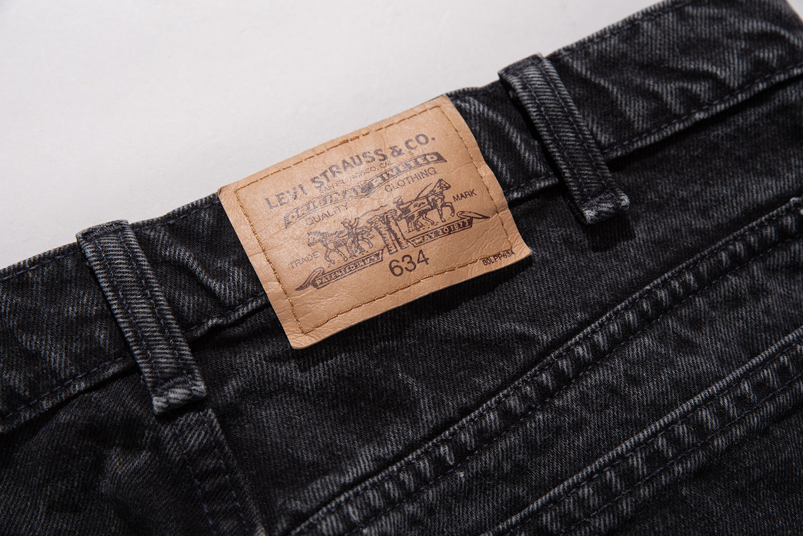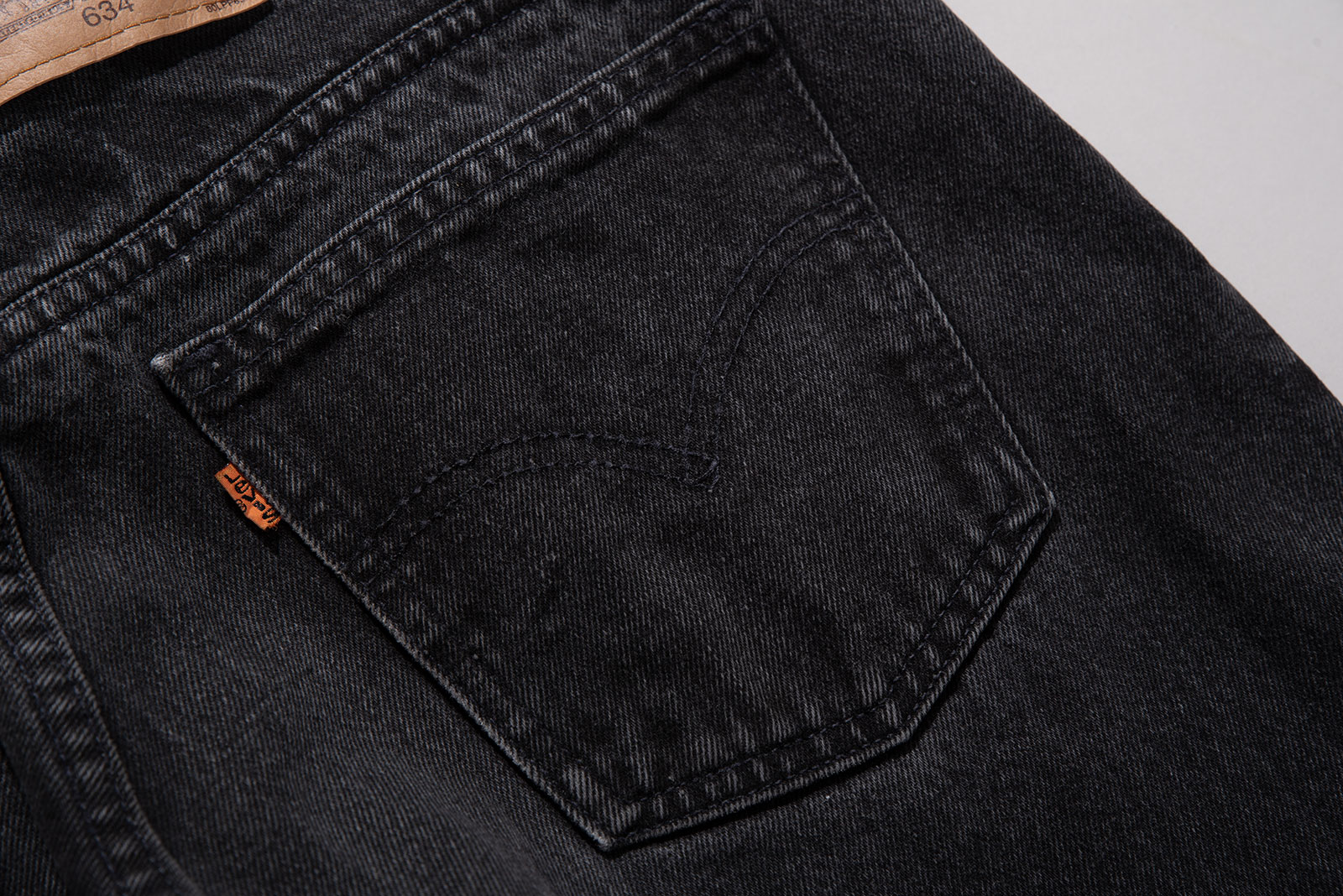- 캐나다에서 생산 된 오렌지탭 634 팬츠입니다. 승마핏을 연상케하는 도드라진 허벅과 아래로 내려가며 점점 좁아지는 종아리 핏이 인상적인 올드 리바이스 모델이에요.