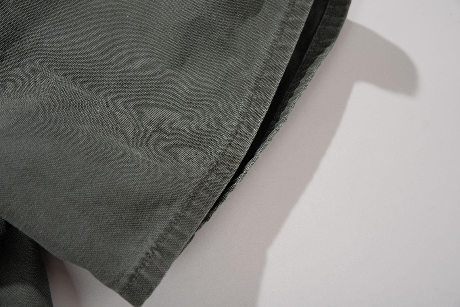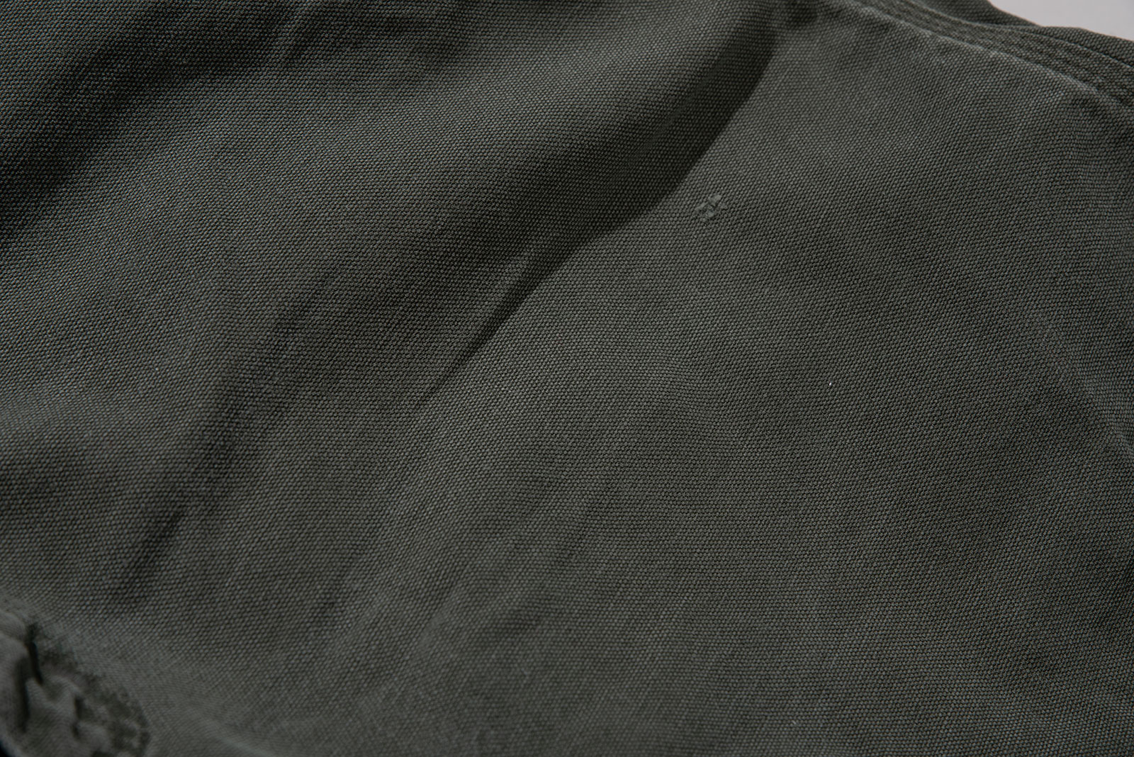 - 80 년대 생산 된 데드스톡 컨디션의 덕 캔버스 쇼츠입니다. 현행으로는 전무한, 90-00년대 올드 제품으로도 본 적없는 독특한 디자인이 특징입니다. 백포켓이 정면 주머니처럼 생긴 것이 가장 큰 포인트라 할 수 있겠네요.