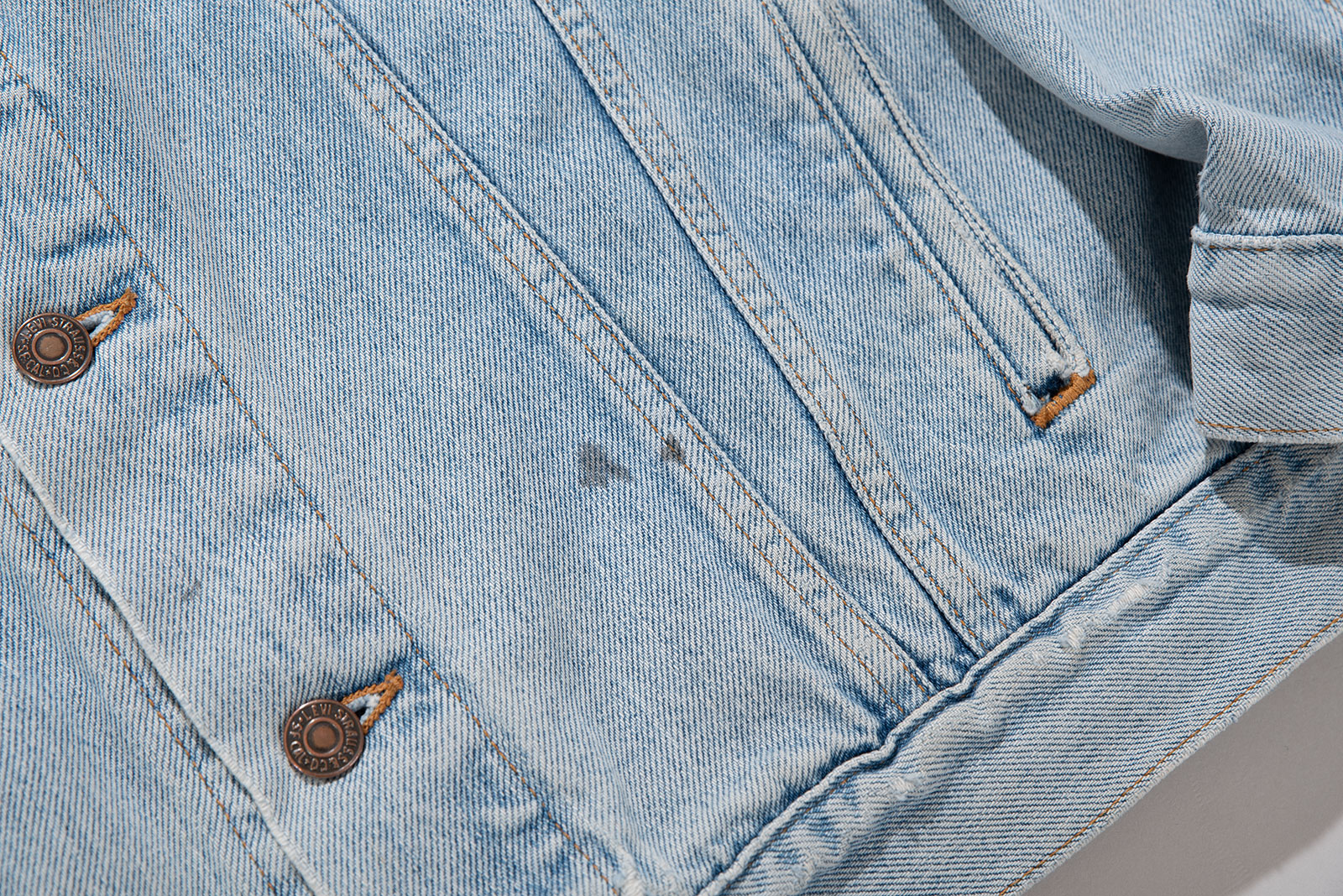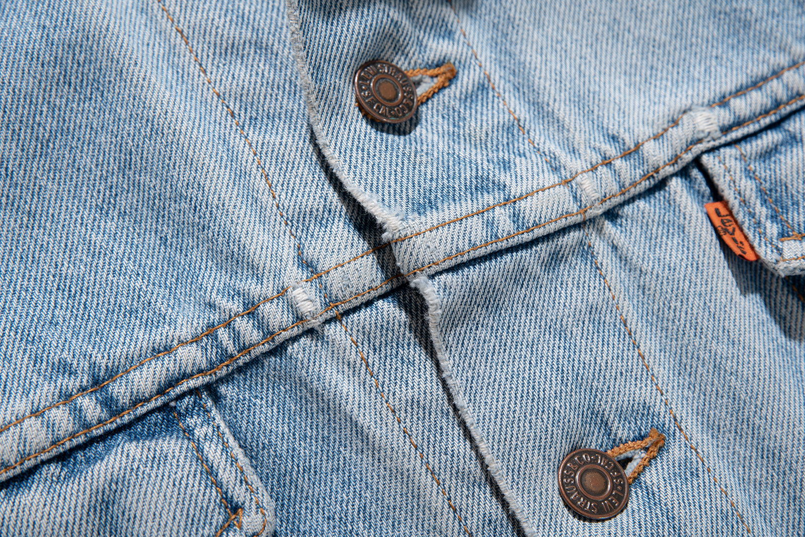 - 오렌지탭 트러커는 워낙 인기가 많아 그런지, 이렇게 여유있는 사이즈가 잘 없더라고요. 전반적으로 좀 낡긴 낡았는데, 그래도 빈티지 재킷 아니겠습니까. 90 년대 미국에서 제작 된 오렌지탭 빈티지 트러커입니다.