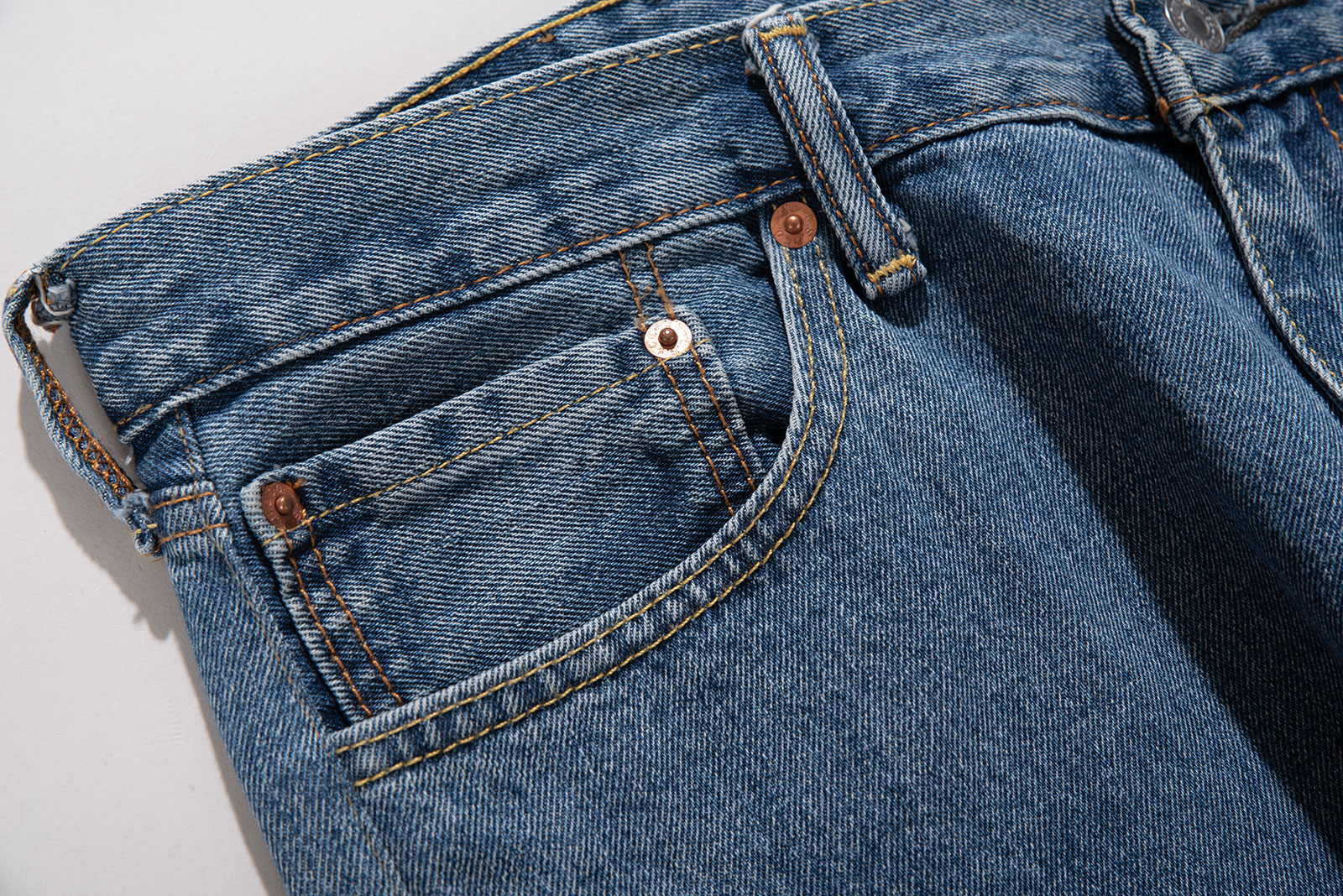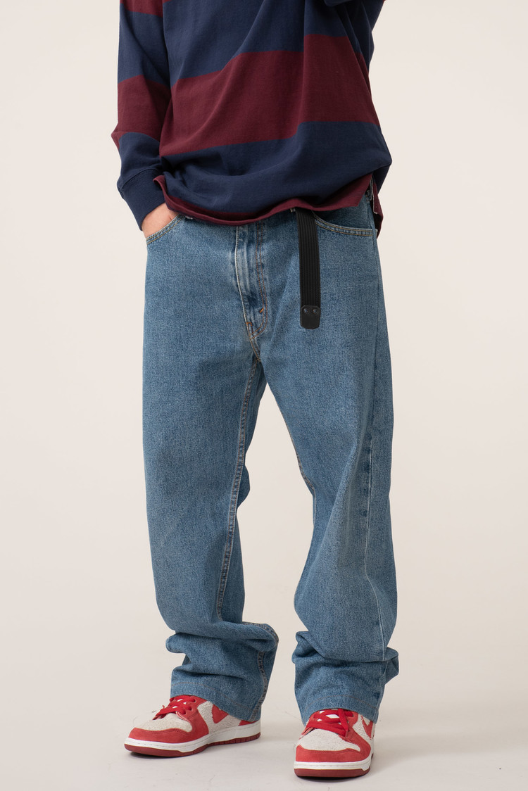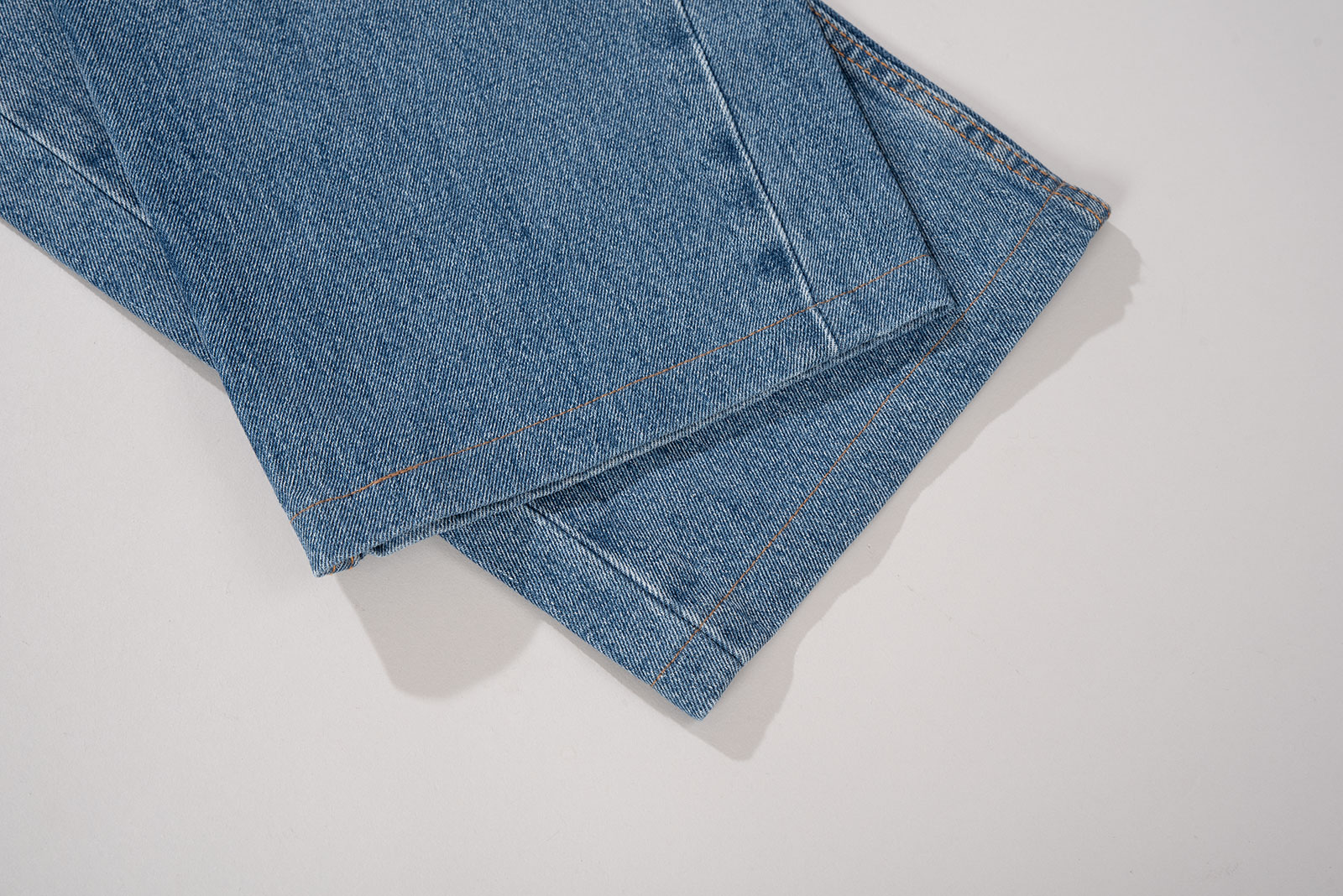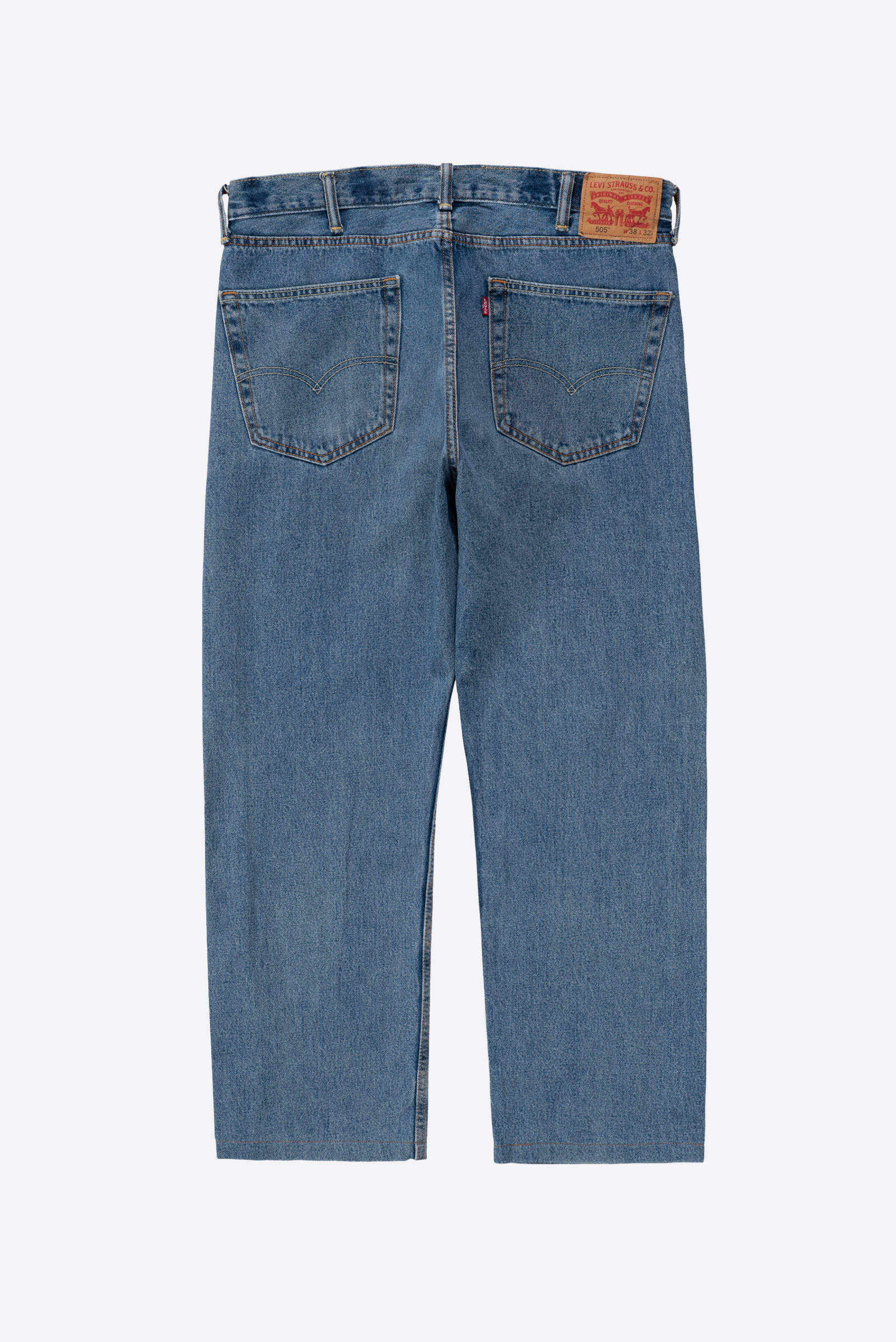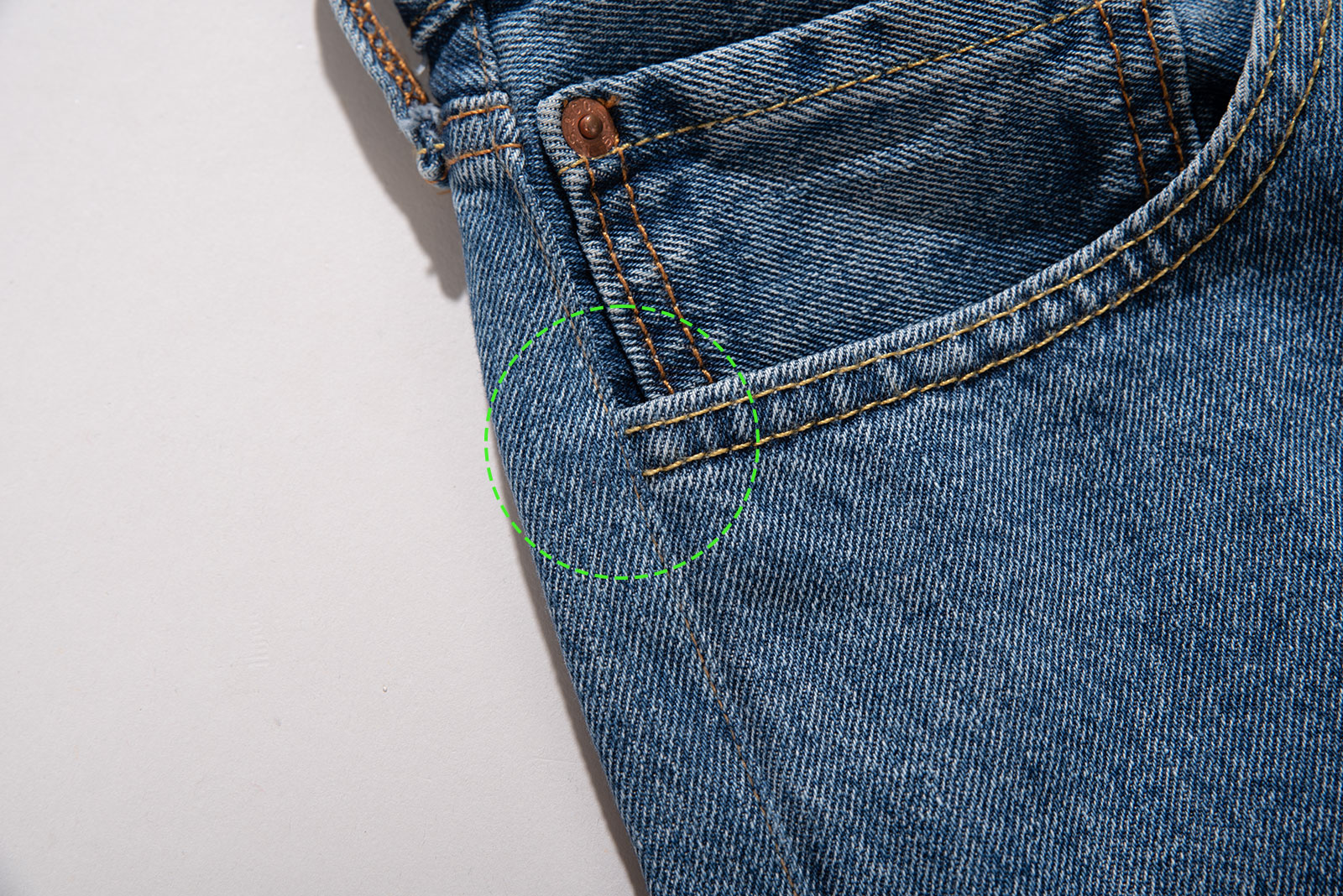 - 16 년도 생산 된 505 팬츠입니다. 주머니 쪽의 아웃심으로 무릎까지 통과 기장 수선 된 제품이에요. 정 사이즈보단 오버 사이징 착장에 맞춰진 제품입니다.