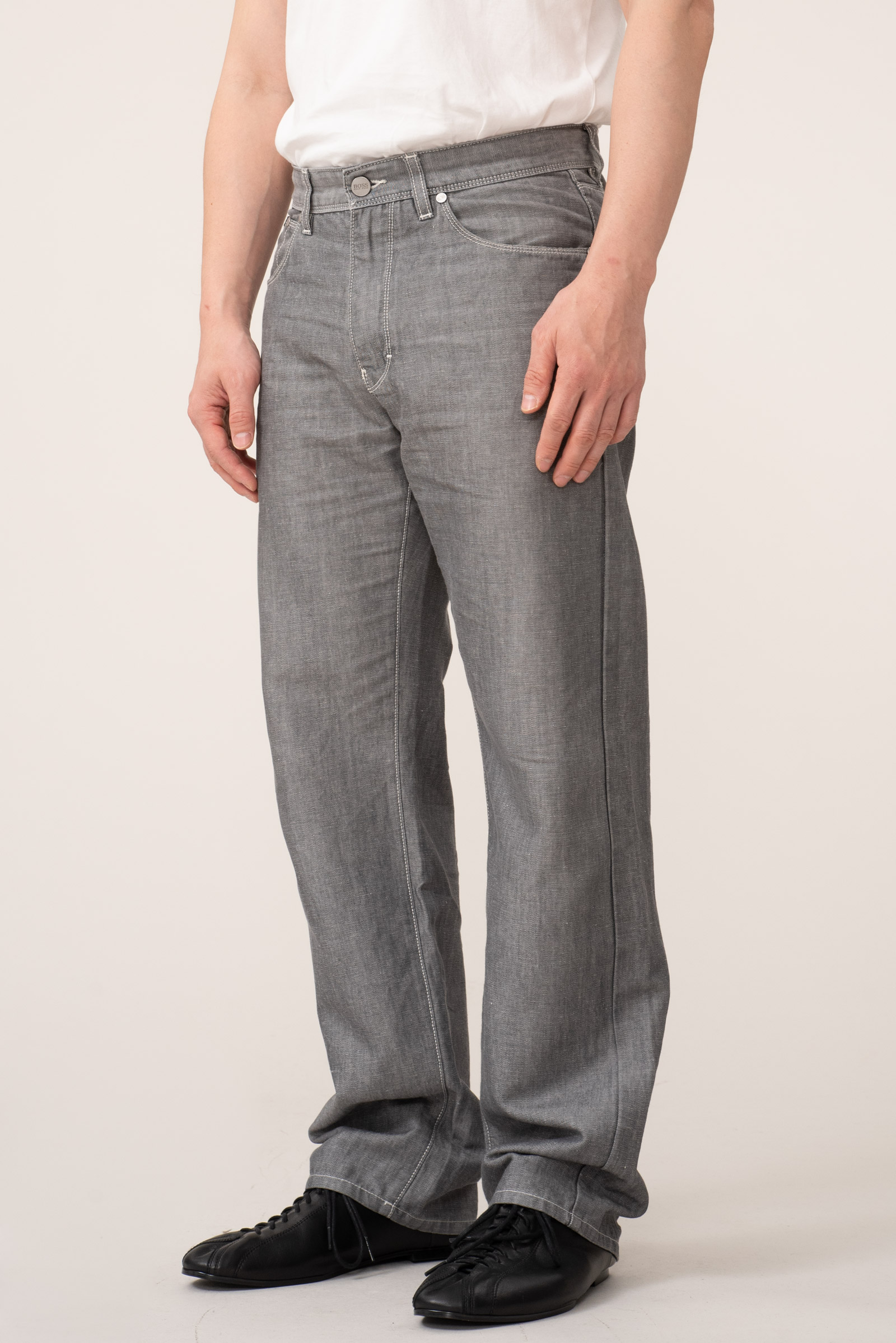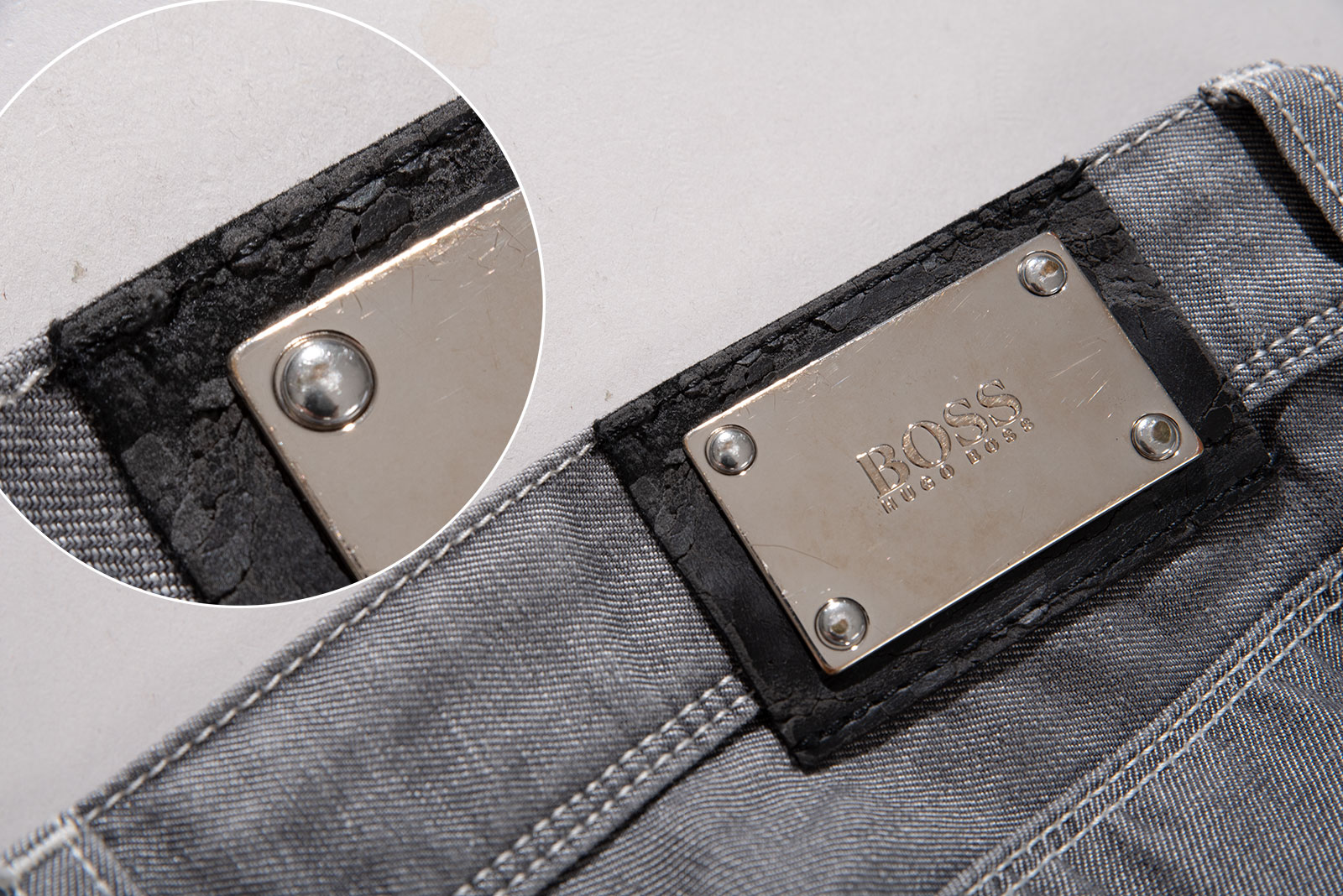 - 휴고 보스의 그레이색이야 진입니다. 얇은 두께감이며 전체적으로 컨디션은 무난한데 가죽탭 가수분해 진행중입니다. 다 떨어지면 입는 것엔 문제없겠지만, 아무튼 떨어지는 도중에야 본의 아니게 마쿠로 쿠로스케와 동행을 하셔야 합니다.