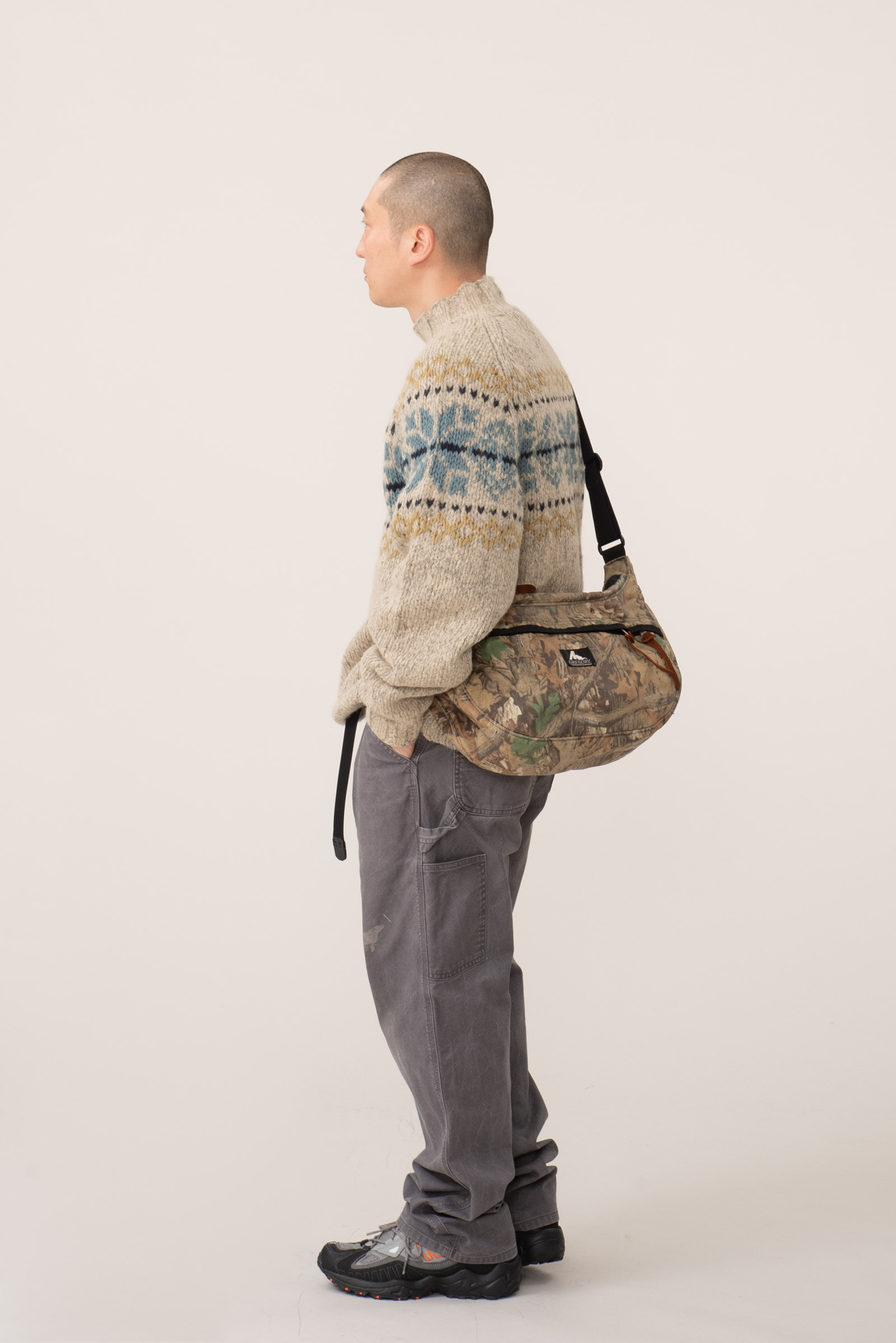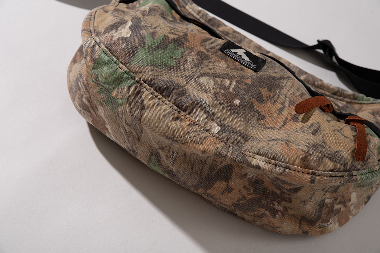 - 구형 그레고리의 리얼 트리 패턴 크로스백입니다. 리얼 트리 패턴의 팬츠와 재킷과 같이 매치하고 산 속에 있으면 그냥 클로킹이죠. 자연과 물아일체가 되는 것입니다.