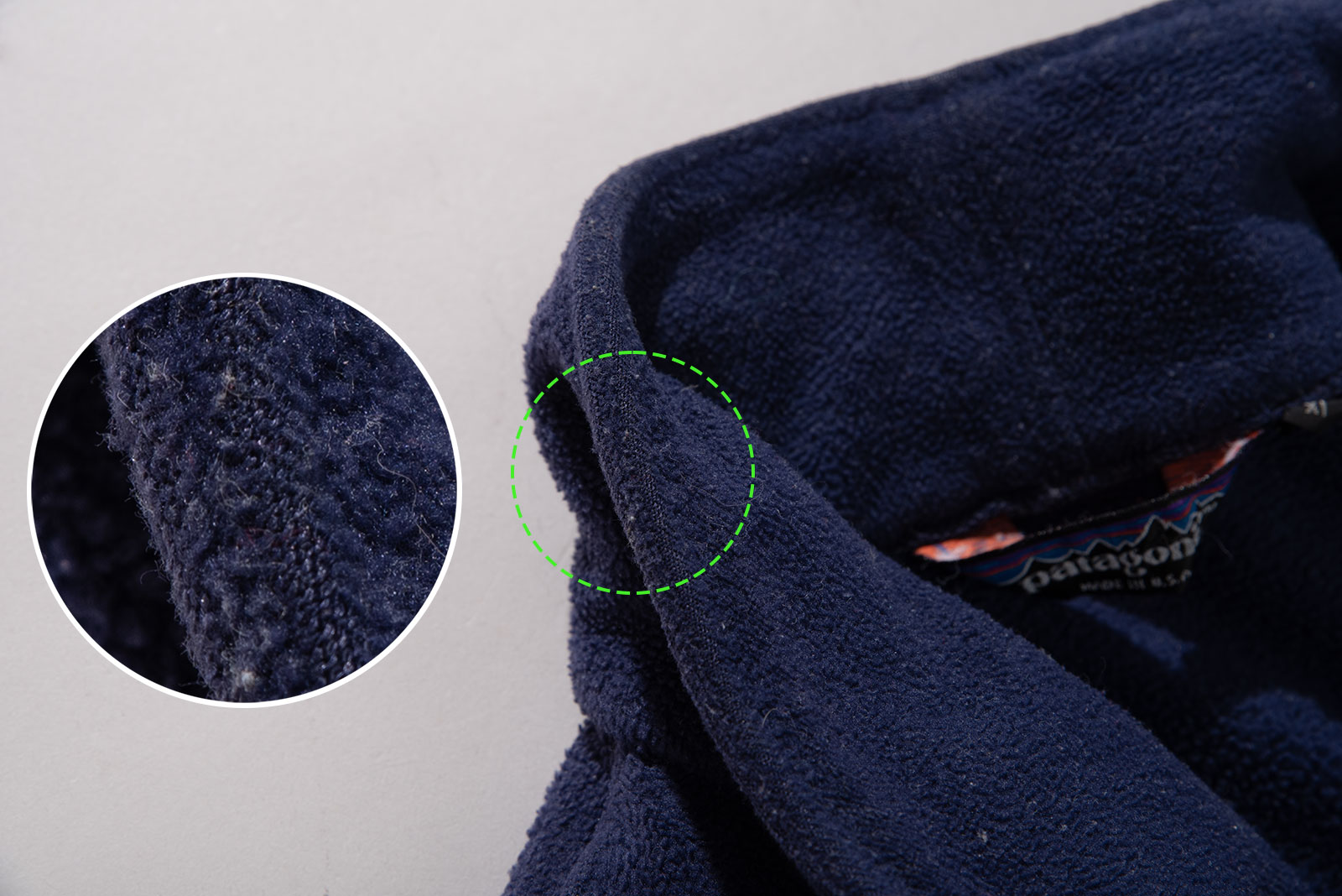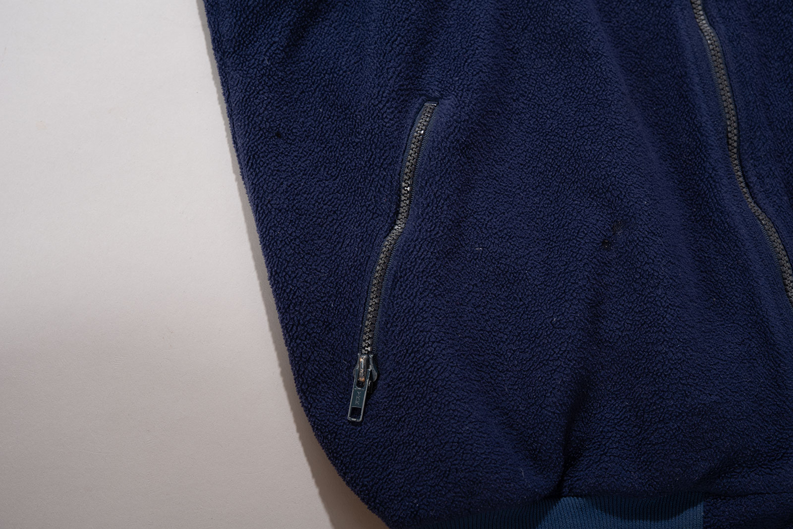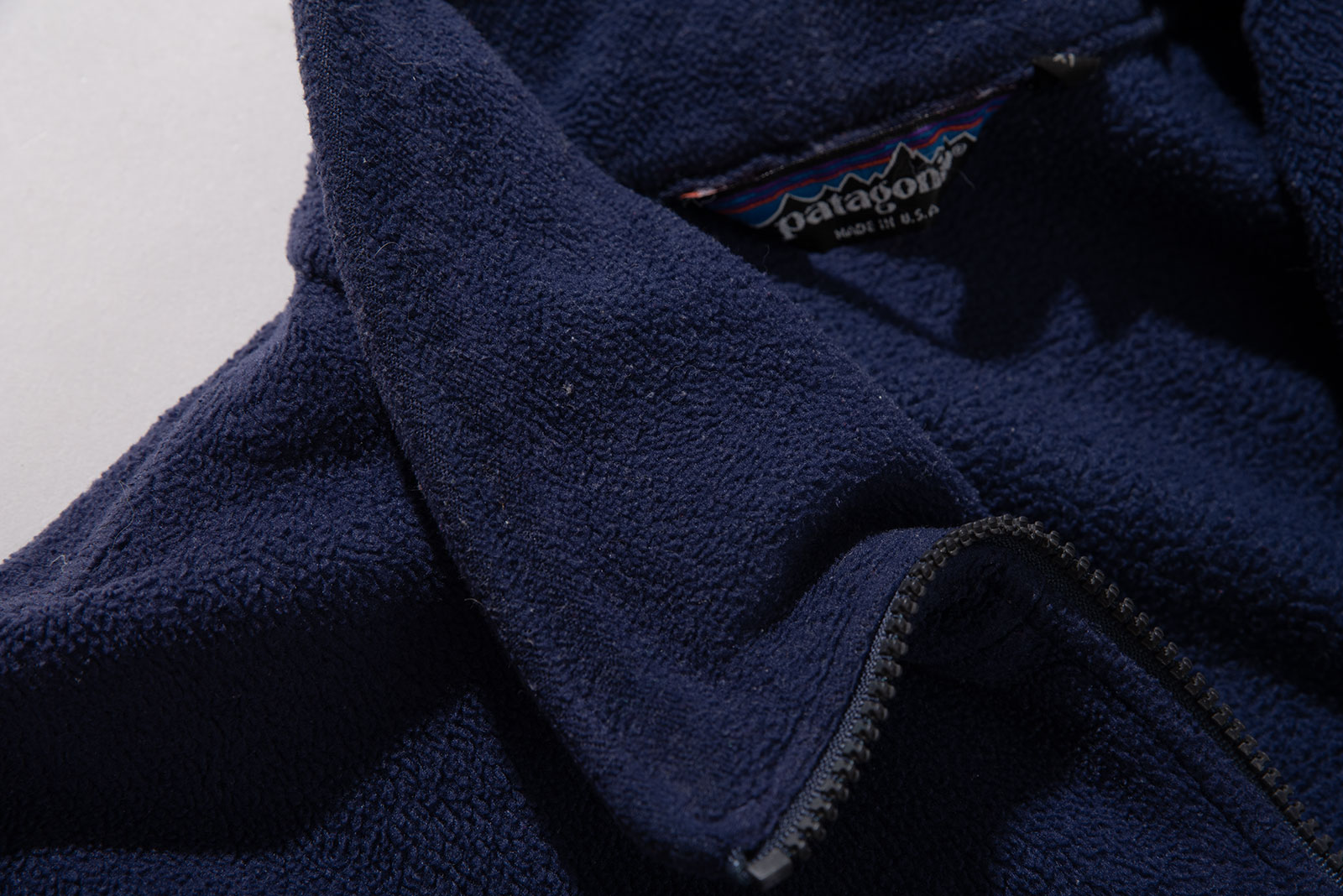 - 미국에서 제작 된 90 년대 올드 파타고니아 플리스 집업 플리스입니다. 웨어러블하게 활용하기 좋은 어두운 네이비 톤의 원톤 바디로 컨디션은 사진으로 확인 할 수 있듯, 사용감이 무진장많습니다. ykk 지퍼 고리 소매 쪽 파손과 소매 시보리와 주머니 안감 찢어짐과 전반적인 원단 경화 등, 빈티지에 대한 이해가 충분하신 분에게 추천드립니다.