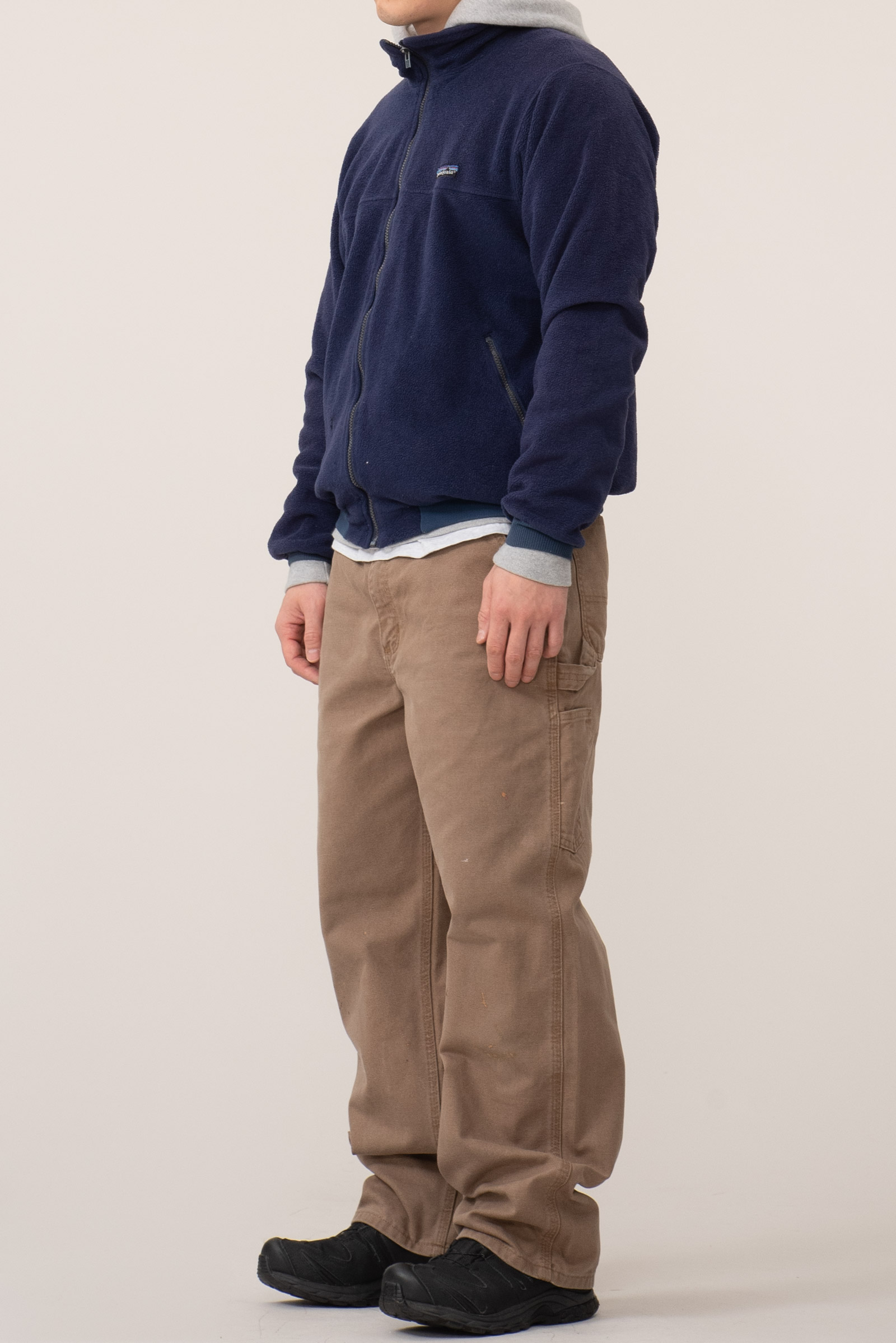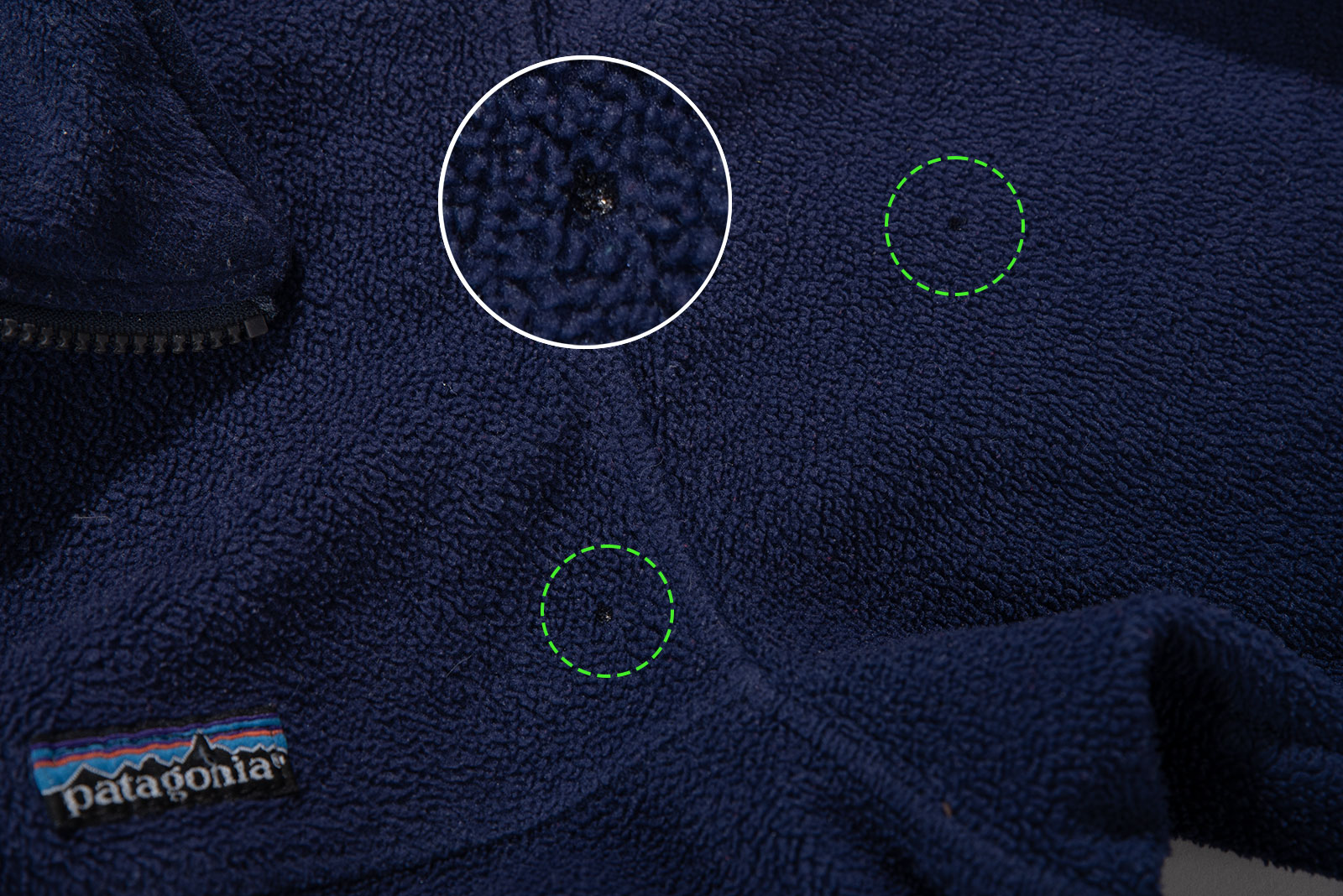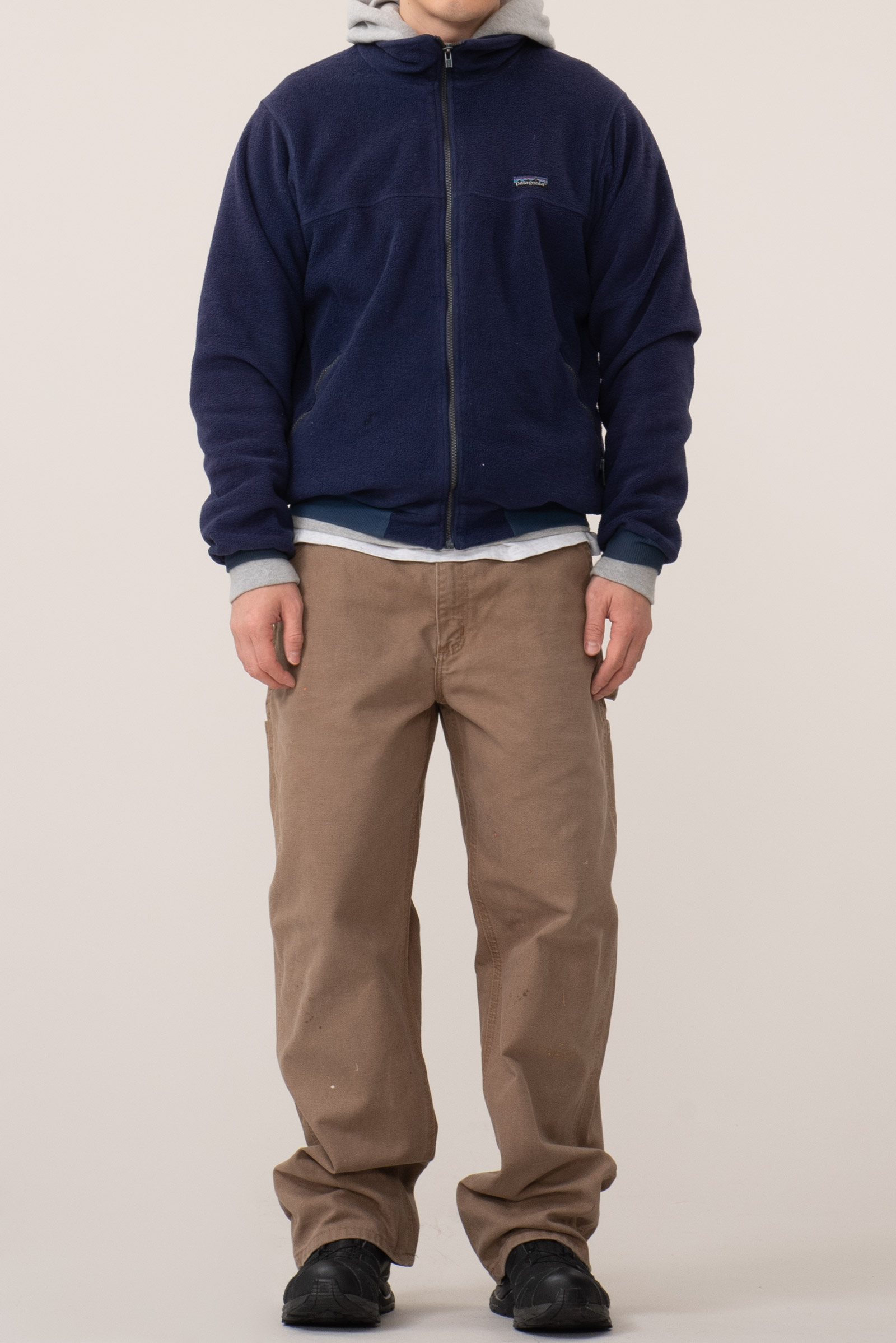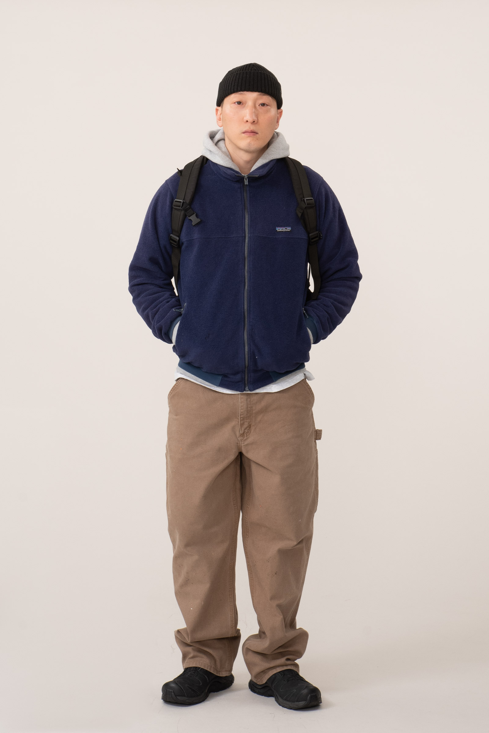 - 미국에서 제작 된 90 년대 올드 파타고니아 플리스 집업 플리스입니다. 웨어러블하게 활용하기 좋은 어두운 네이비 톤의 원톤 바디로 컨디션은 사진으로 확인 할 수 있듯, 사용감이 무진장많습니다. ykk 지퍼 고리 소매 쪽 파손과 소매 시보리와 주머니 안감 찢어짐과 전반적인 원단 경화 등, 빈티지에 대한 이해가 충분하신 분에게 추천드립니다.