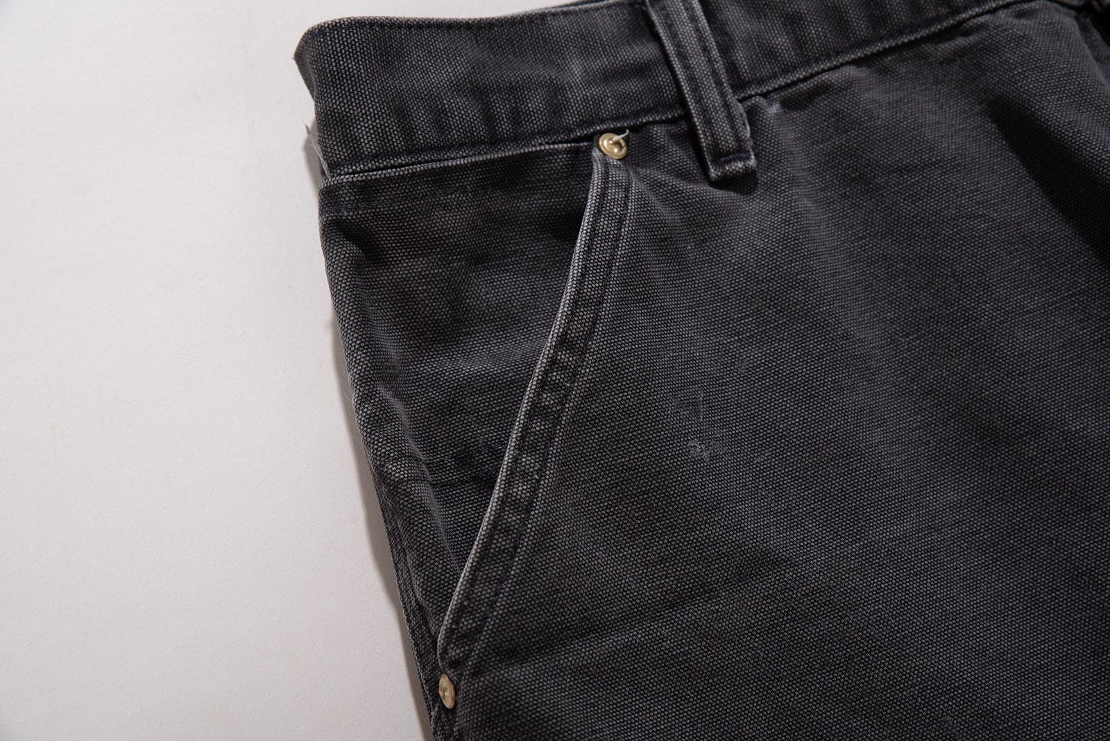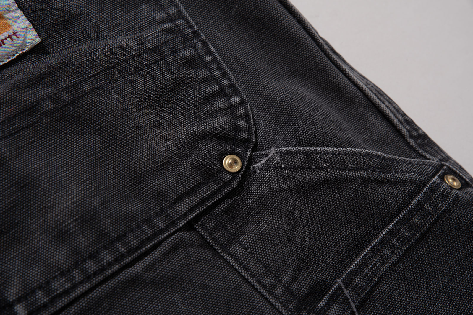 - 칼하트 대표 카펜터 B11의 원형이 되는 80s 덕 캔버스 팬츠입니다. 빈티지 더블니에서 볼 수 있는 가장자리 마감으로 리벳 장식이 된 제품으로, 카펜터에선 쉽게 볼 수 없는 제품이기도 하지요.