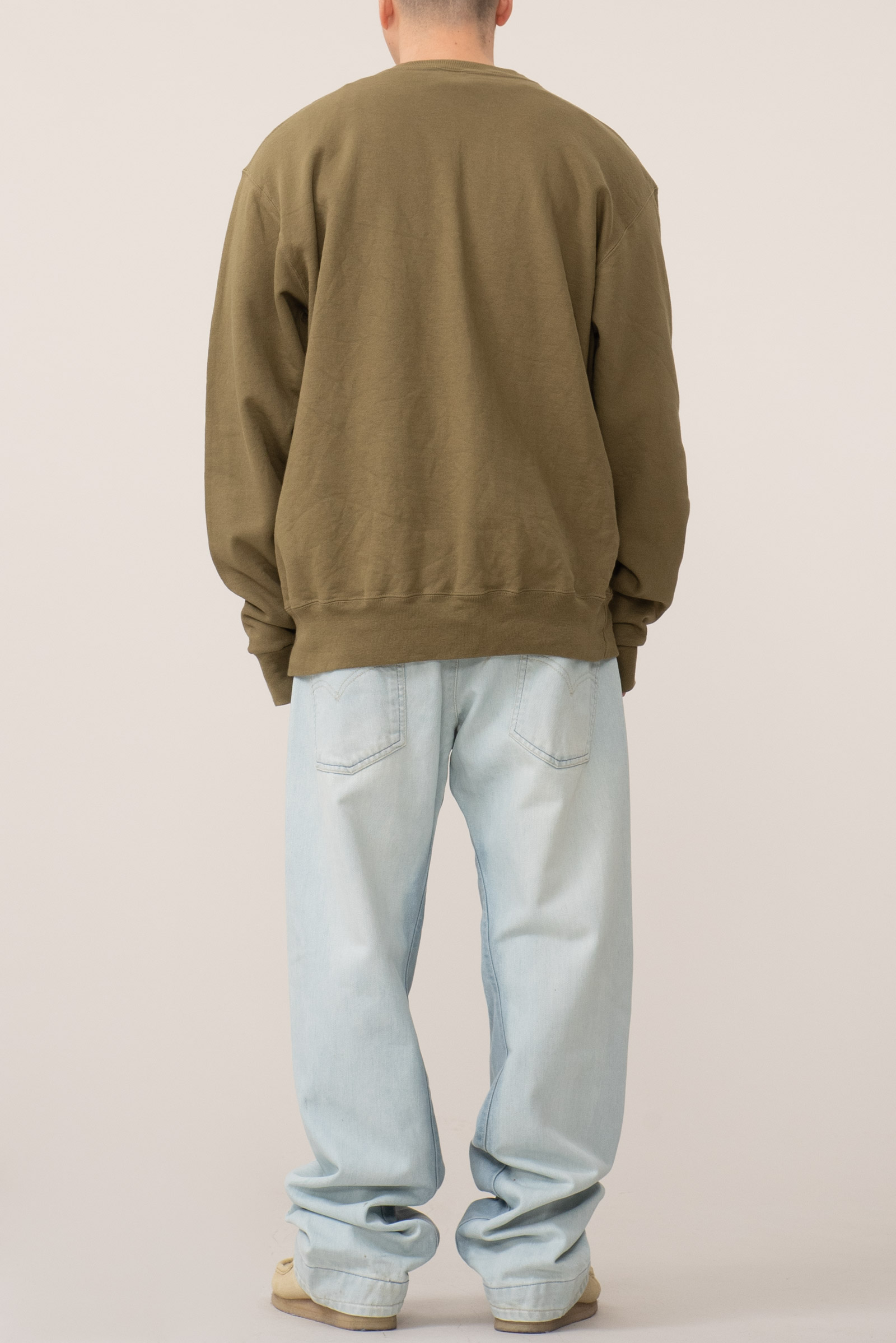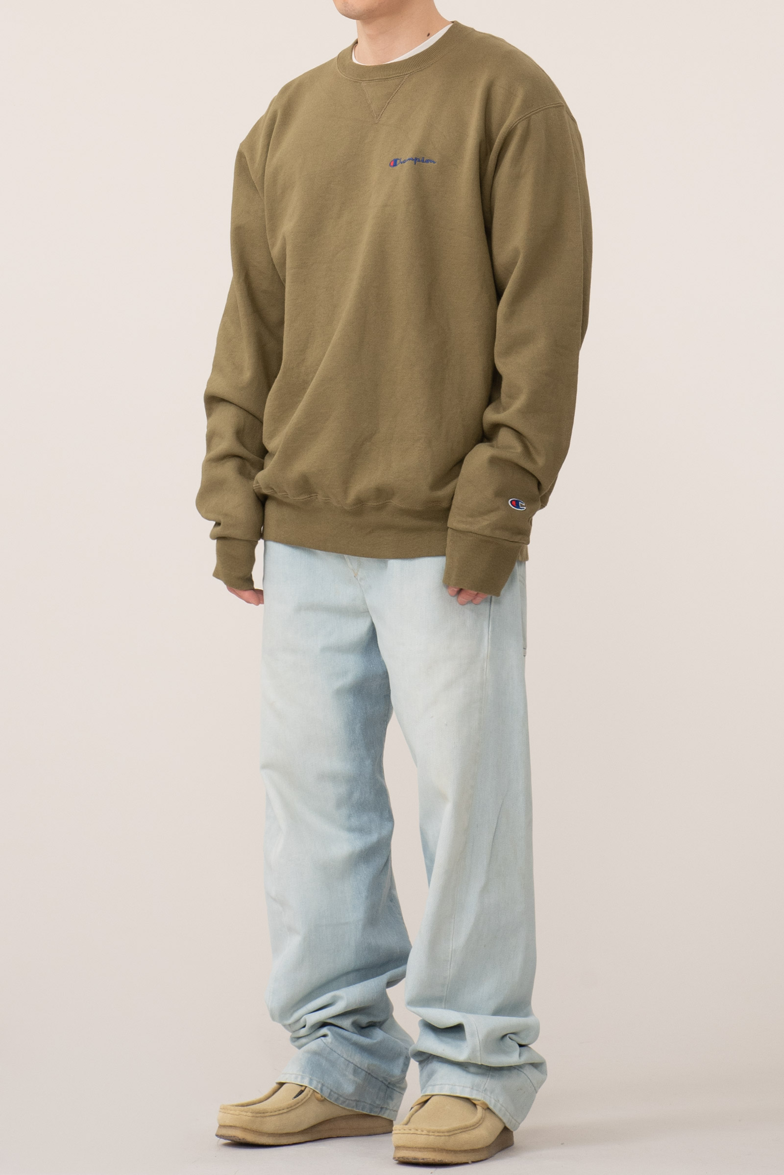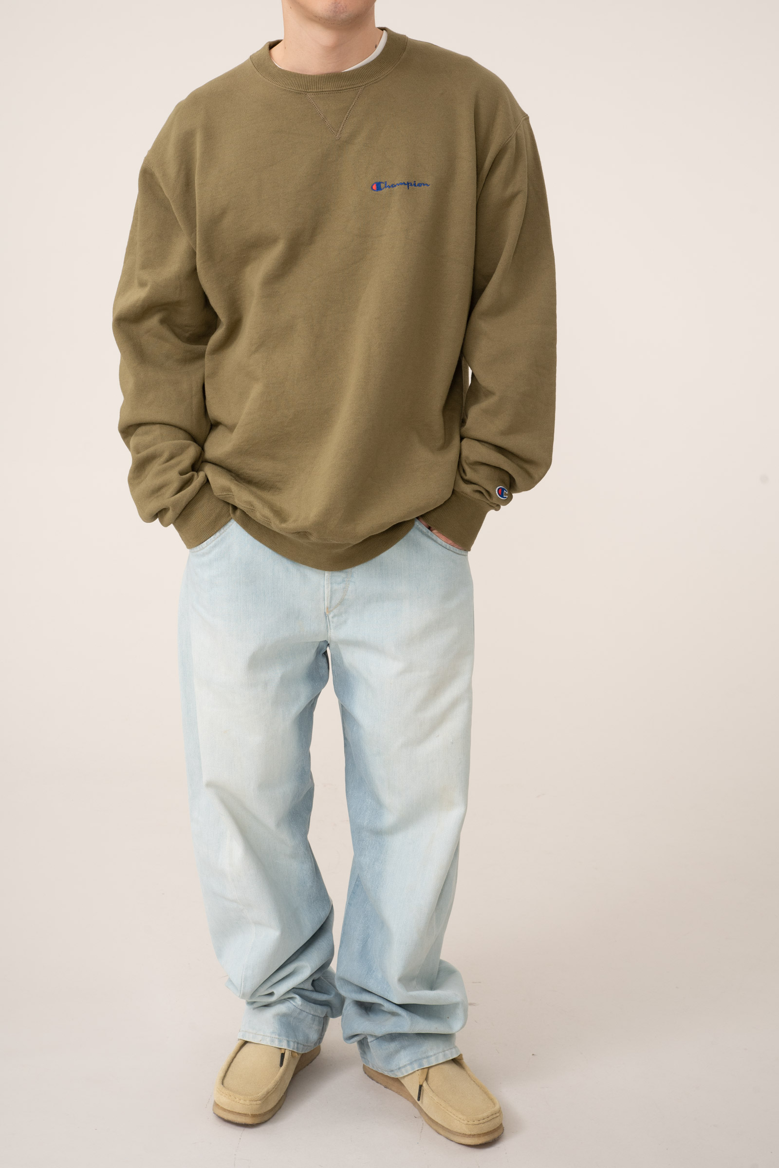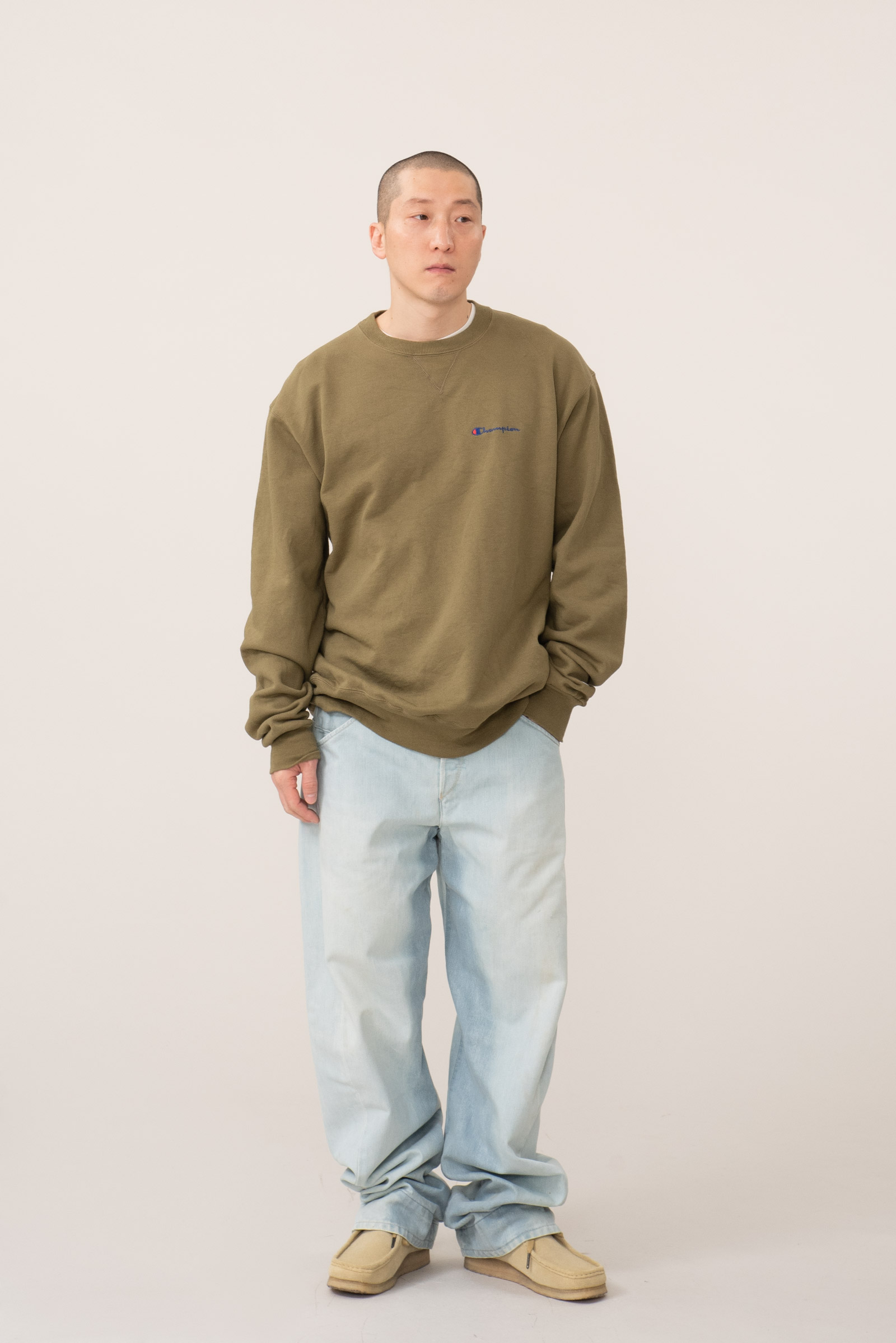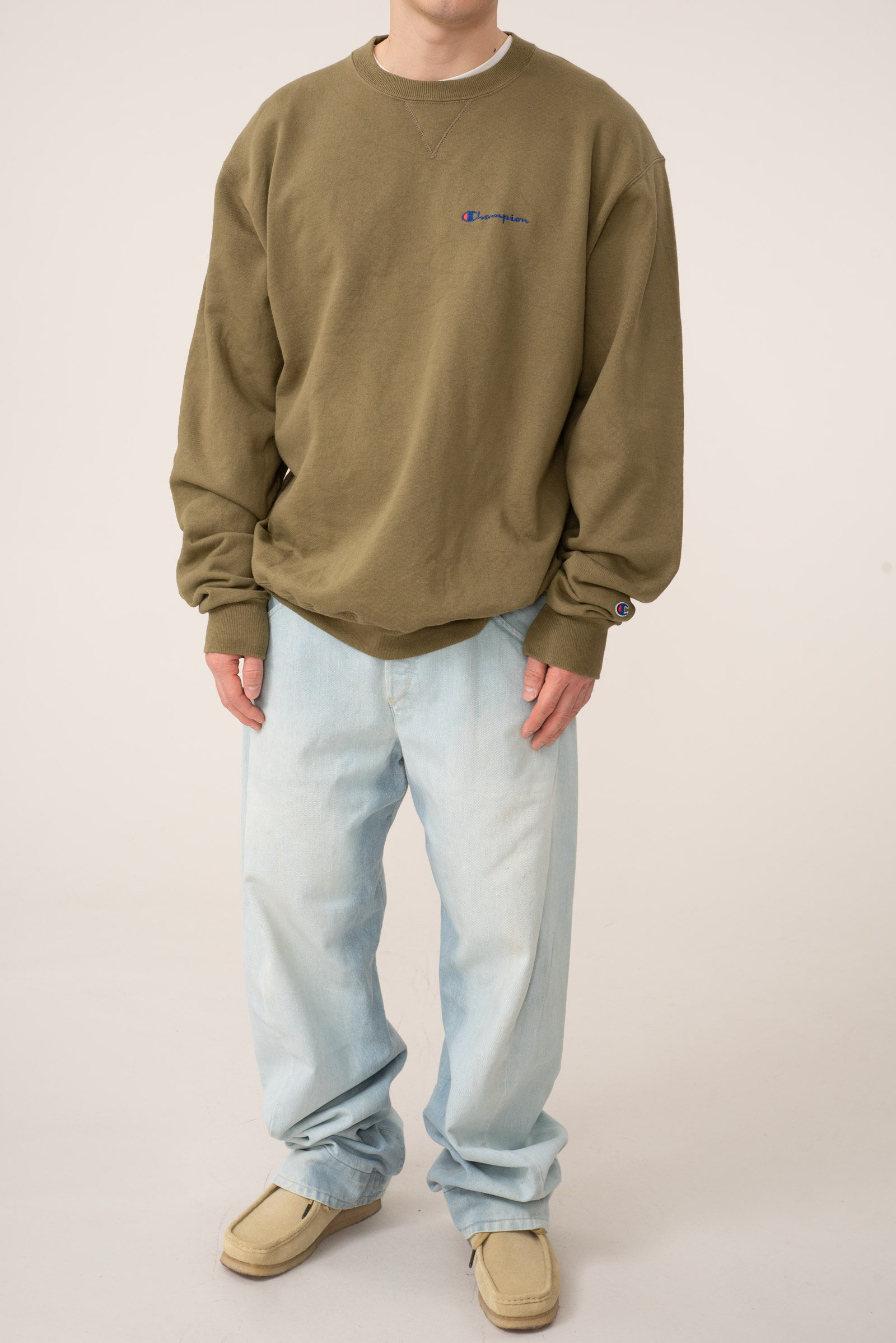 - 카키색의 90s 챔피온 맨투맨입니다. 기모 안감이 있어 가을 겨울 입기에 참 좋겠습니다. 도톰하고 묵직하니 힘있는 원단에 올드한 실루엣이라 박력있게 핏 잘 나옵니다.