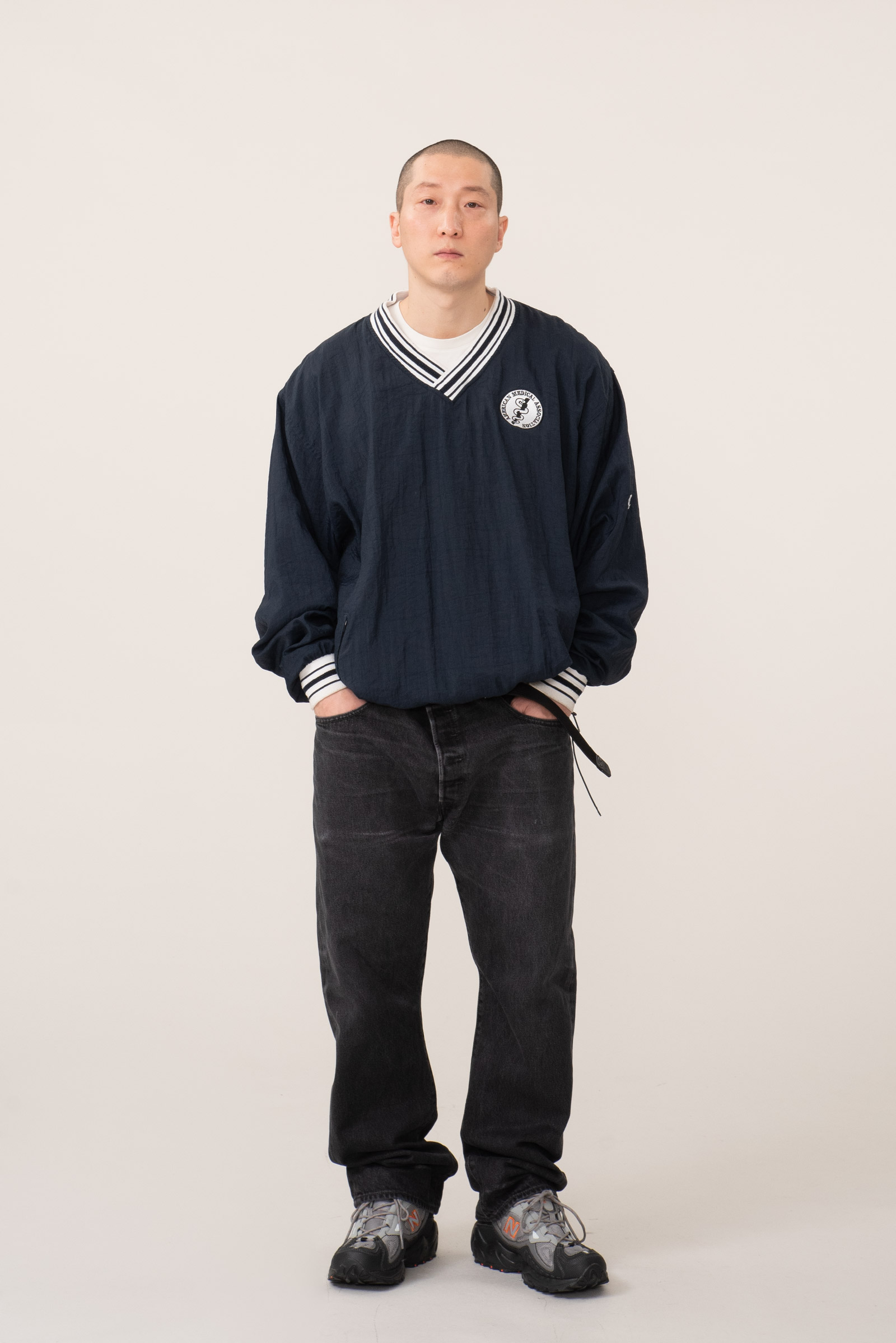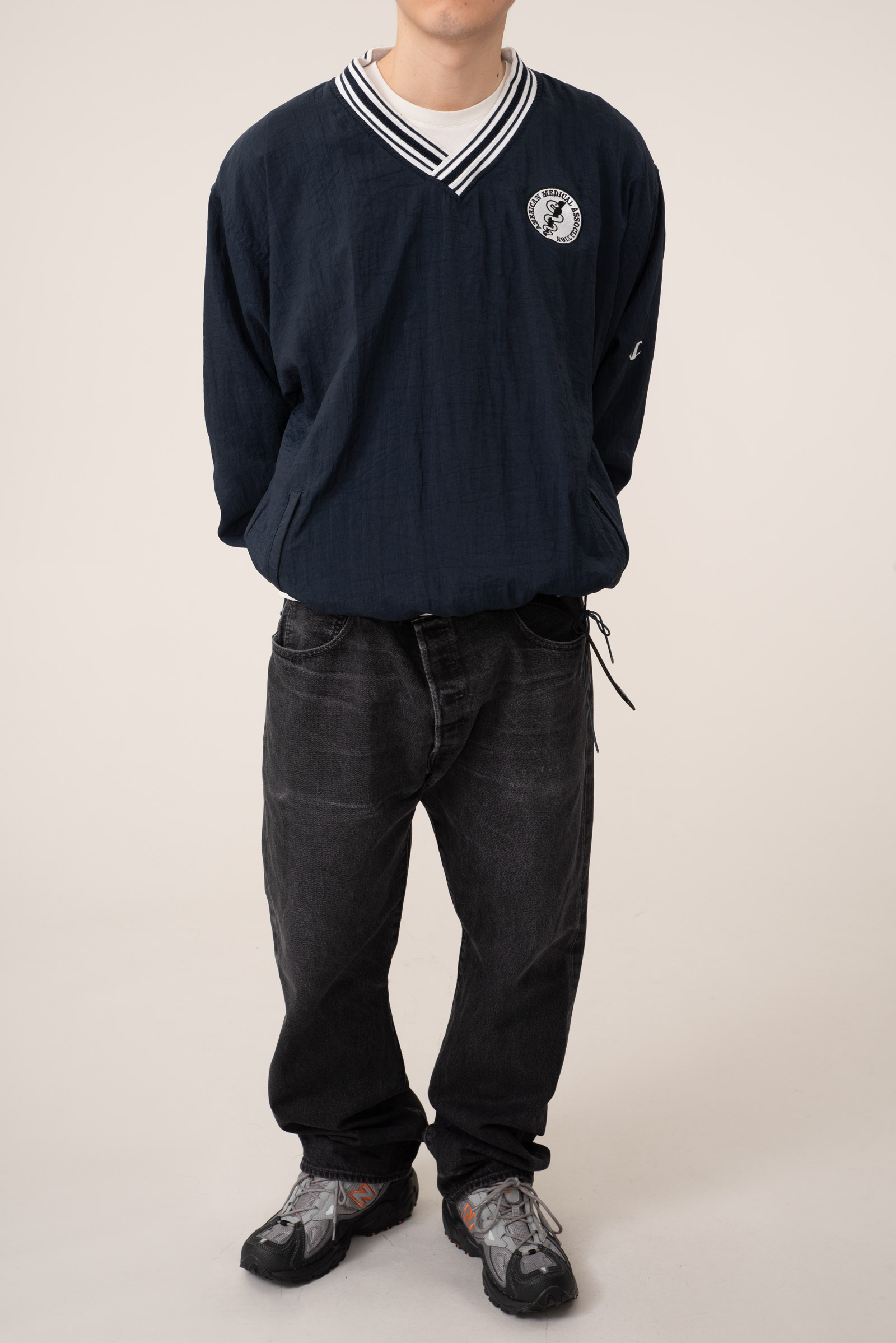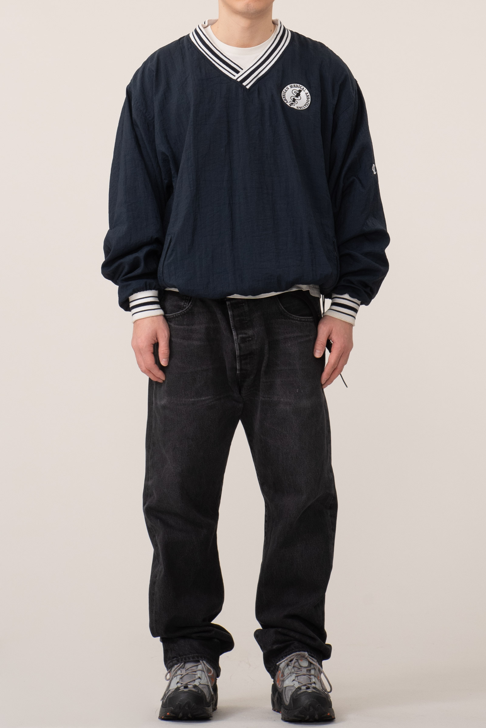 - 한국에서 생산 된 90s 챔피온 나일론 웜업입니다. 코튼 안감 마감 된 올드한 디자인으로, 루즈핏으로 걸치기 좋은 오버 사이즈로 입고 되었습니다.
