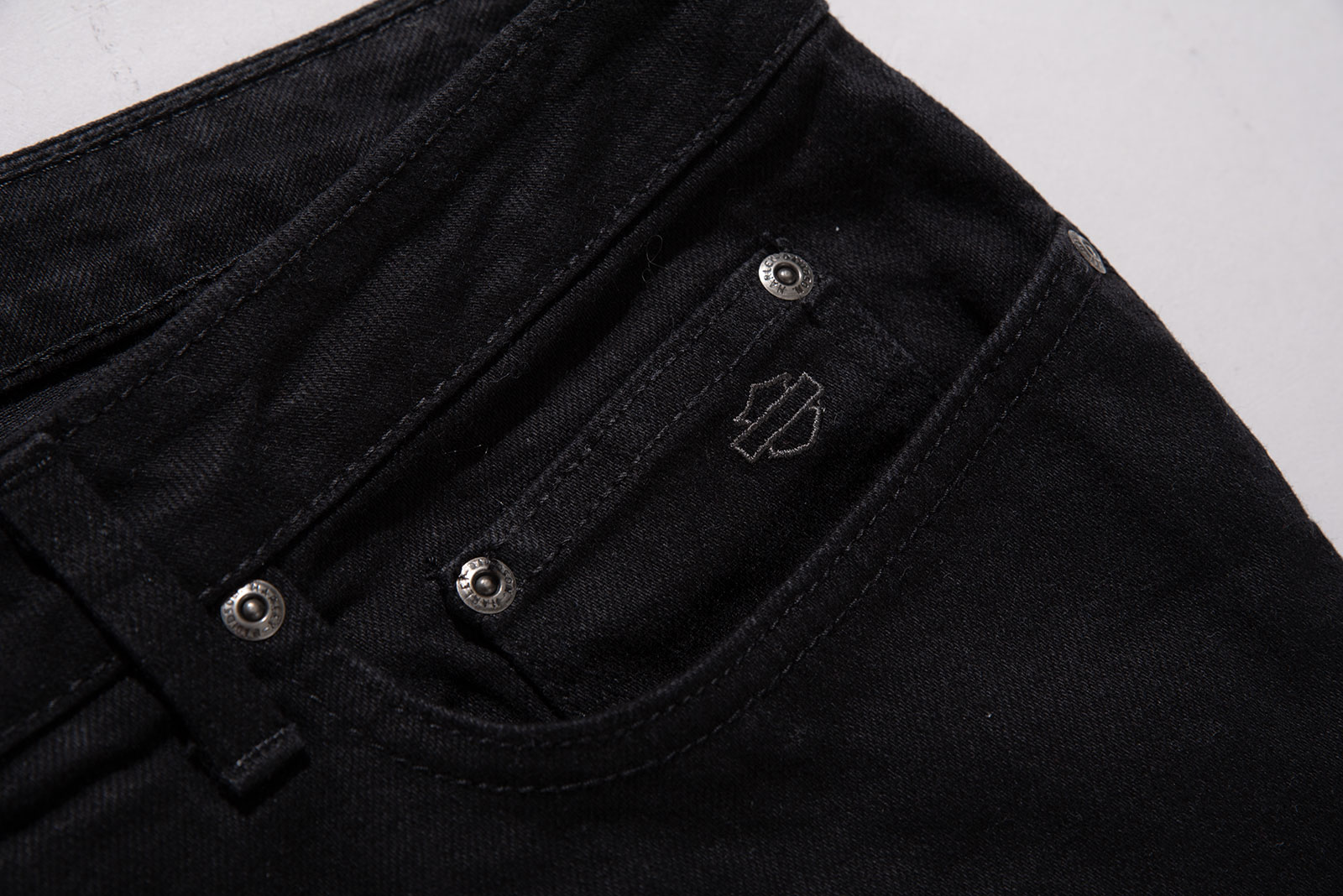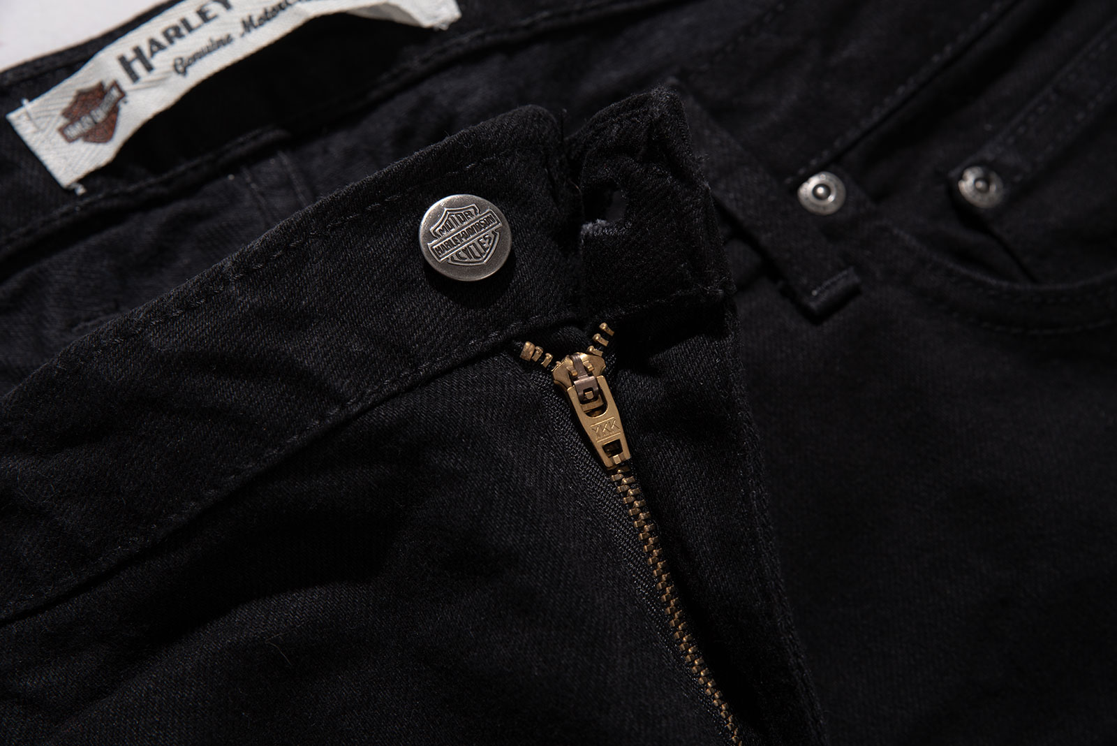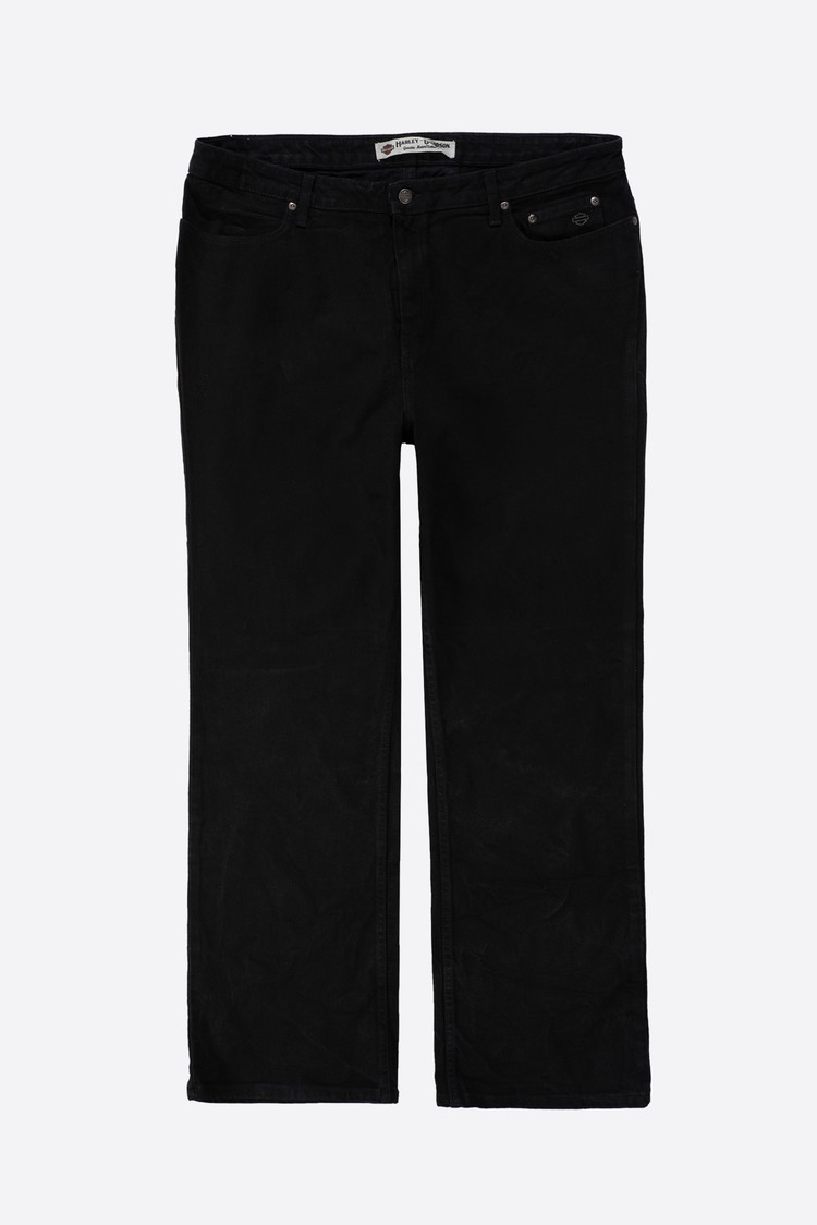 - 캐나다 제 할리 데이비슨 부츠컷 팬츠입니다. 두툼한 능직물이 돋보이는 흑청 제품으로, 멋지게 페이딩을 만들어 나갈 수 있는 깔끔한 컨디션으로 입고 되었습니다.